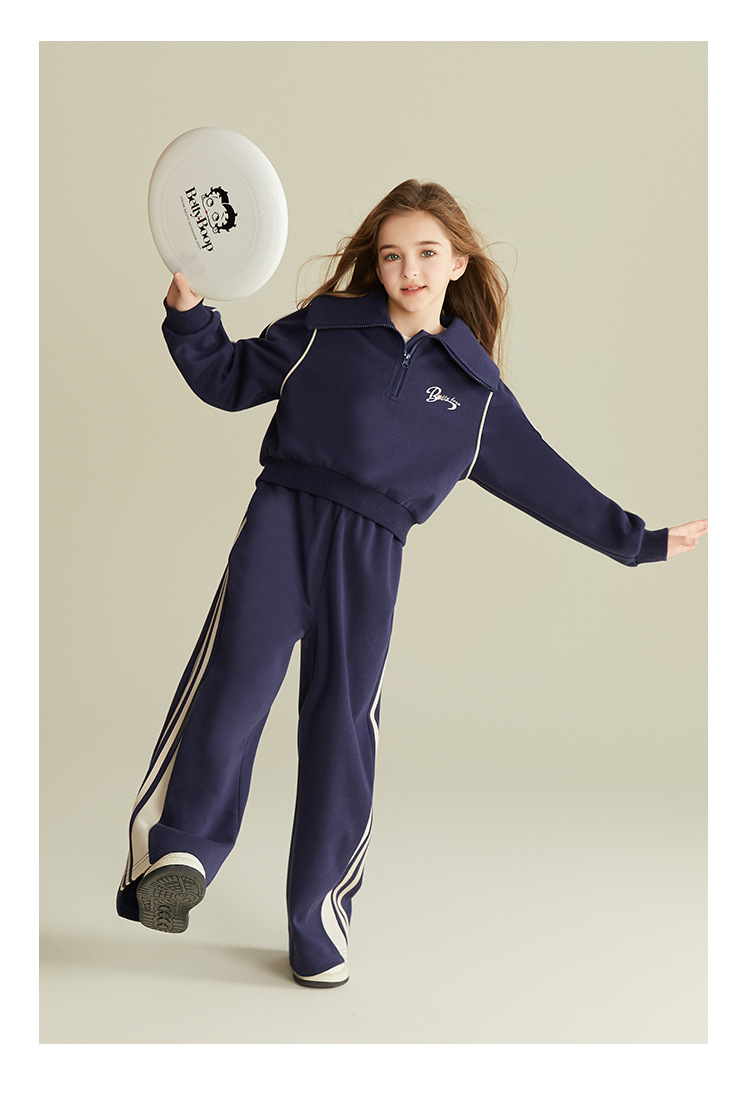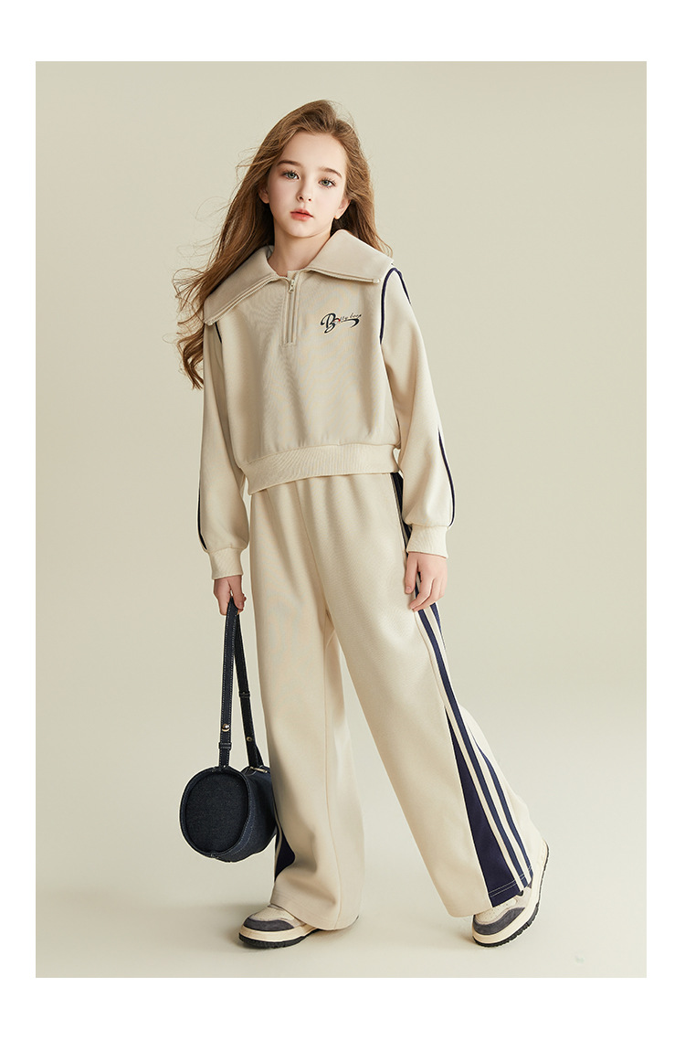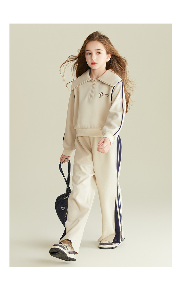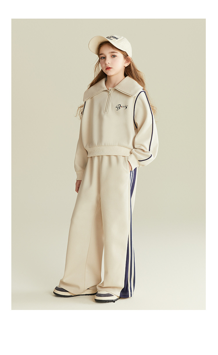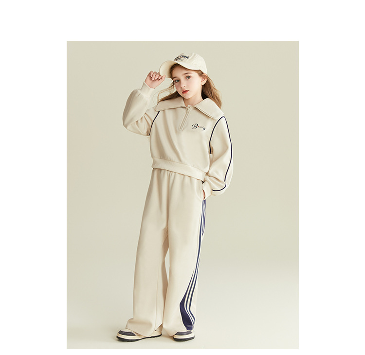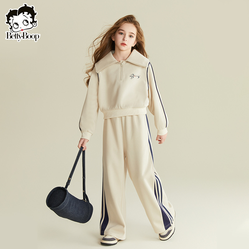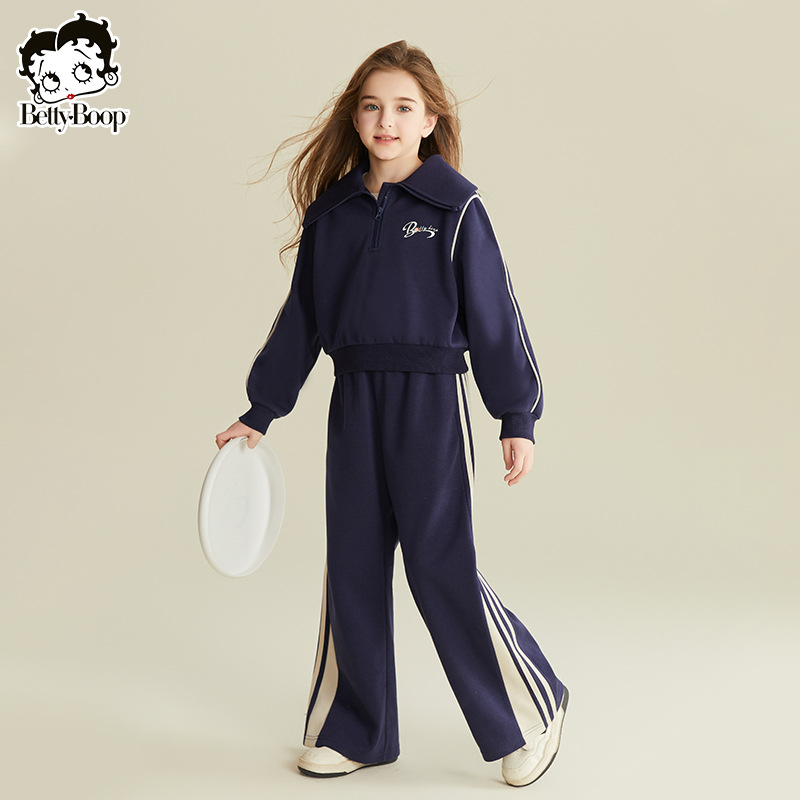 베티 걸스의 봄과 가을 옷깃 운동복 바지 2 조각 세트 2025 중 · 대형 어린이를위한 레저 어린이 스포츠 세트