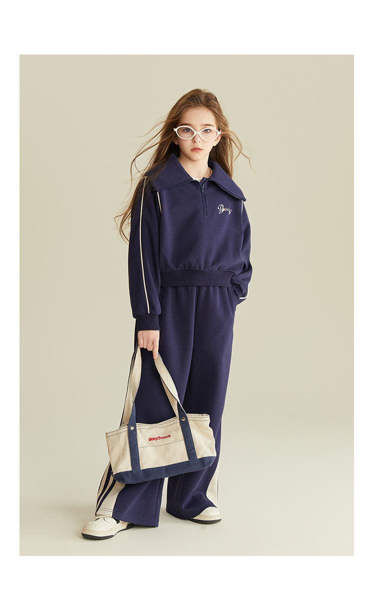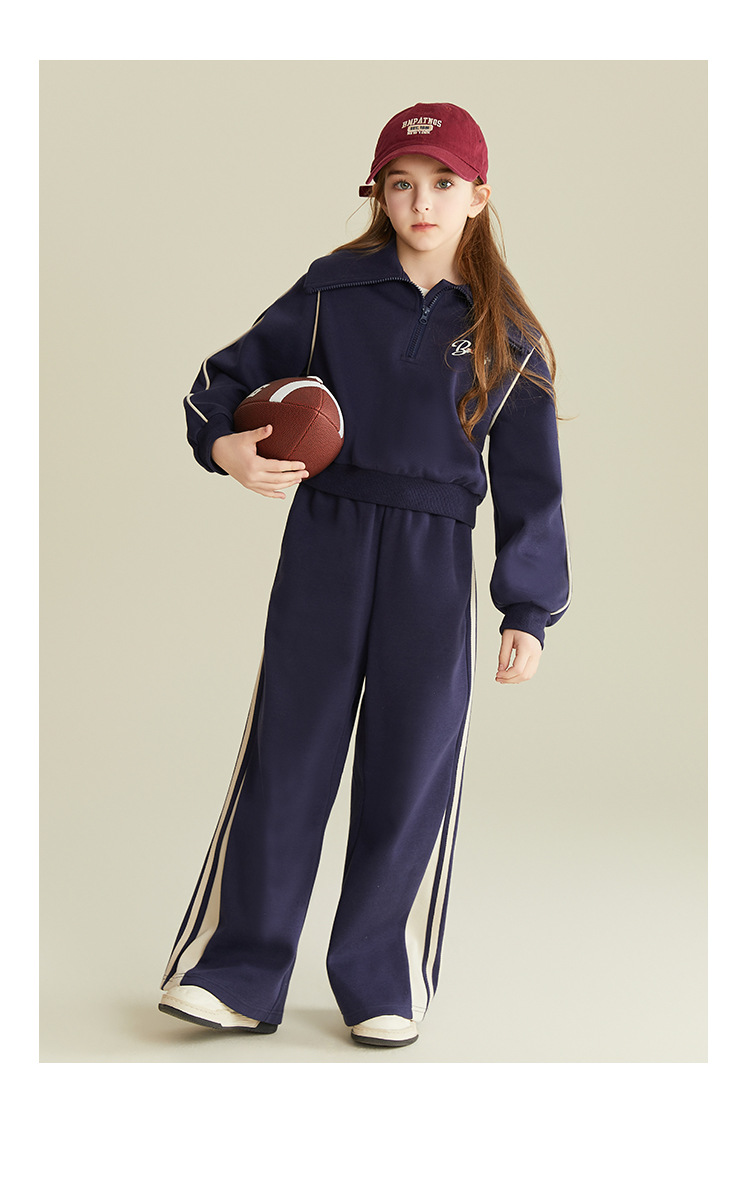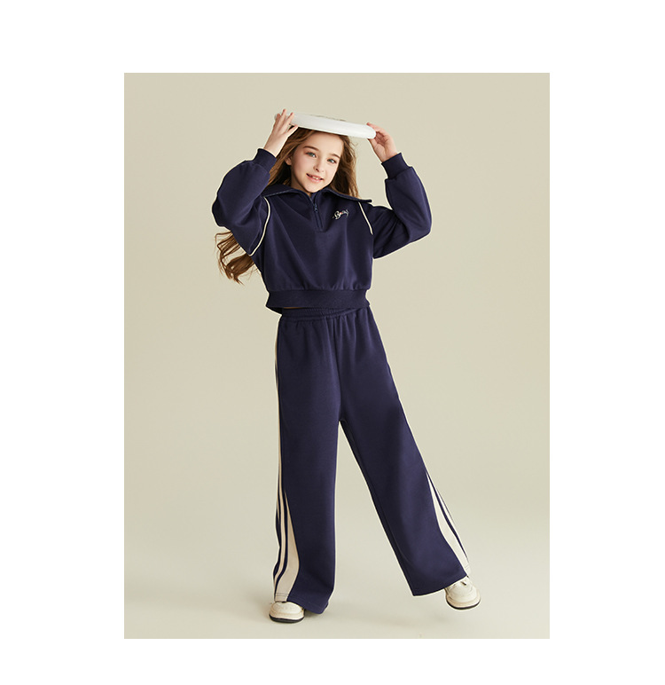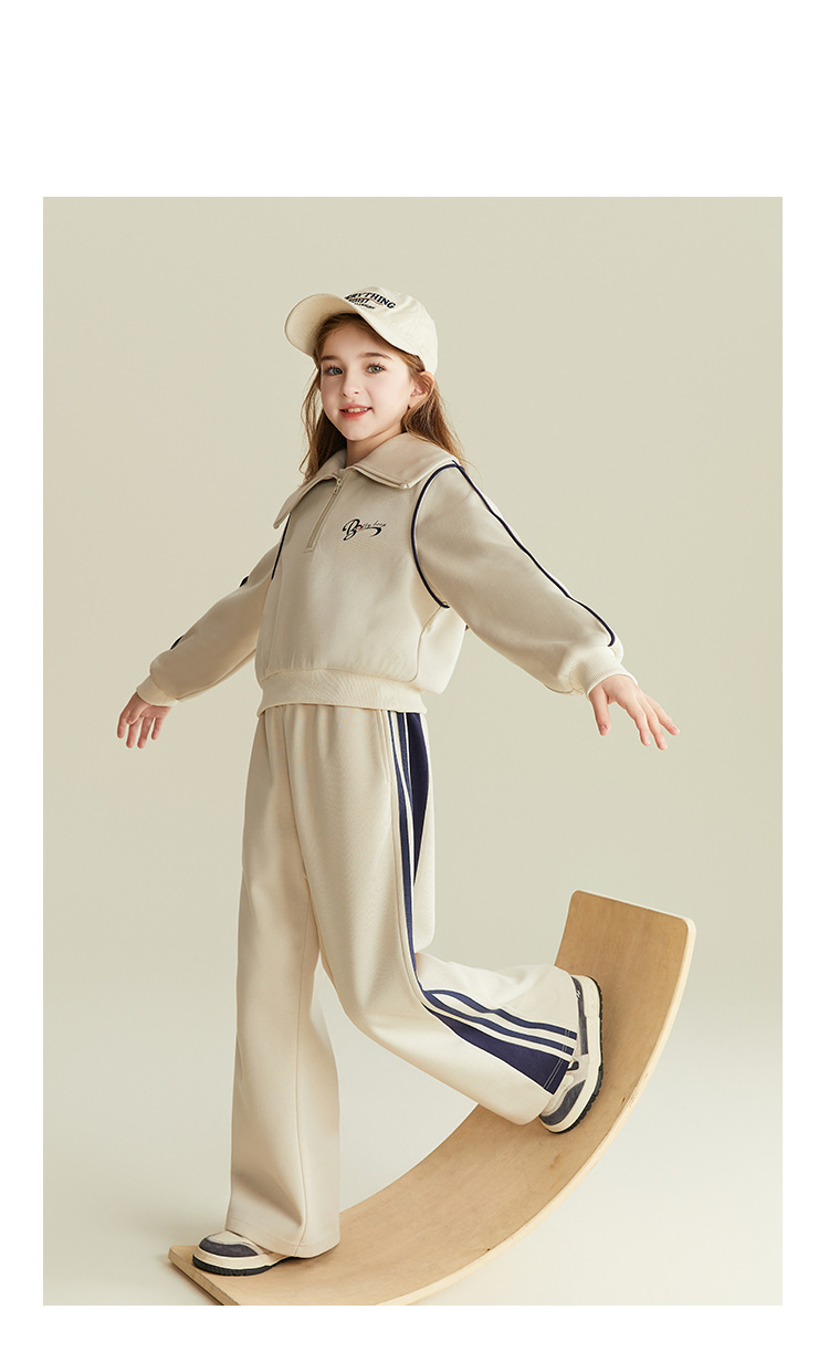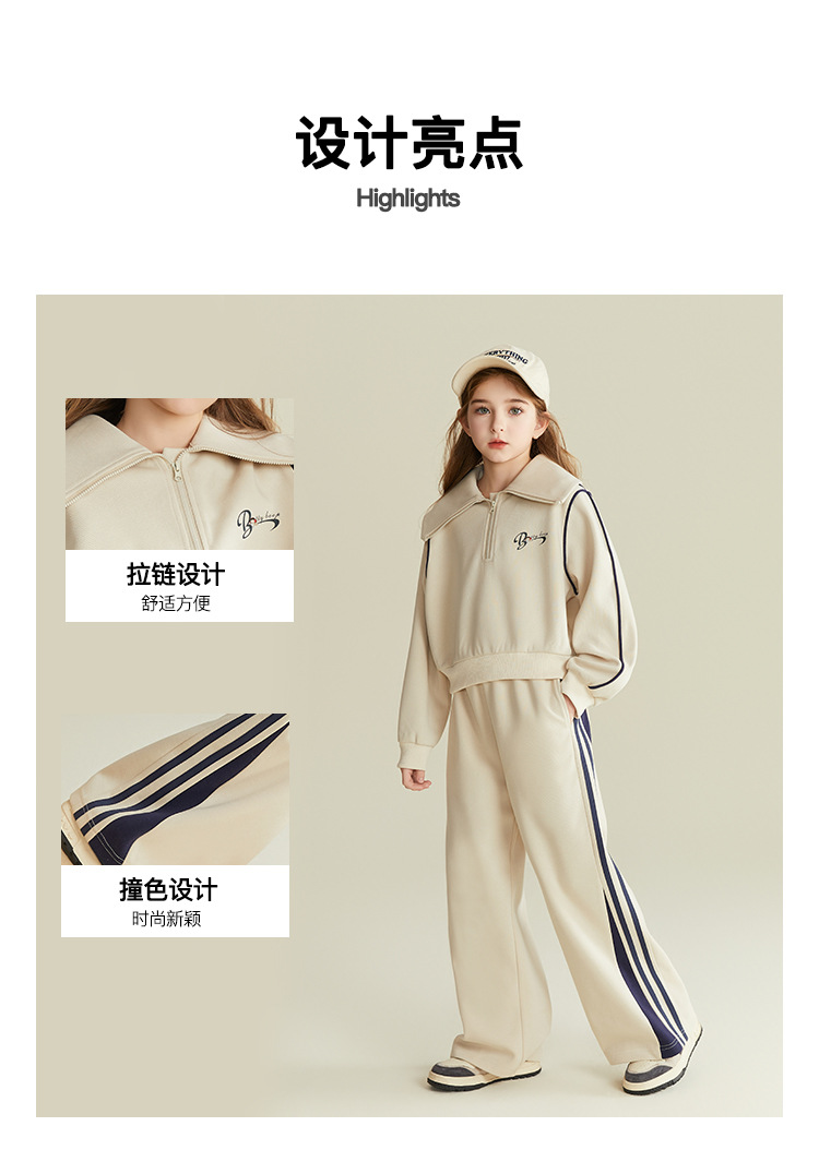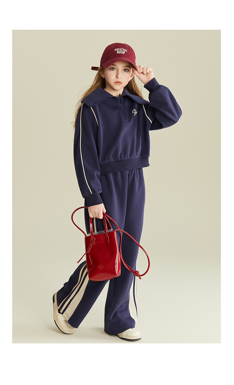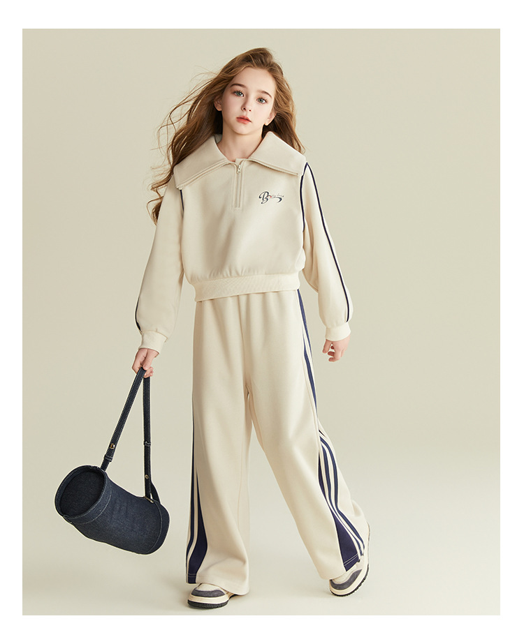 베티 걸스의 봄과 가을 옷깃 운동복 바지 2 조각 세트 2025 중 · 대형 어린이를위한 레저 어린이 스포츠 세트