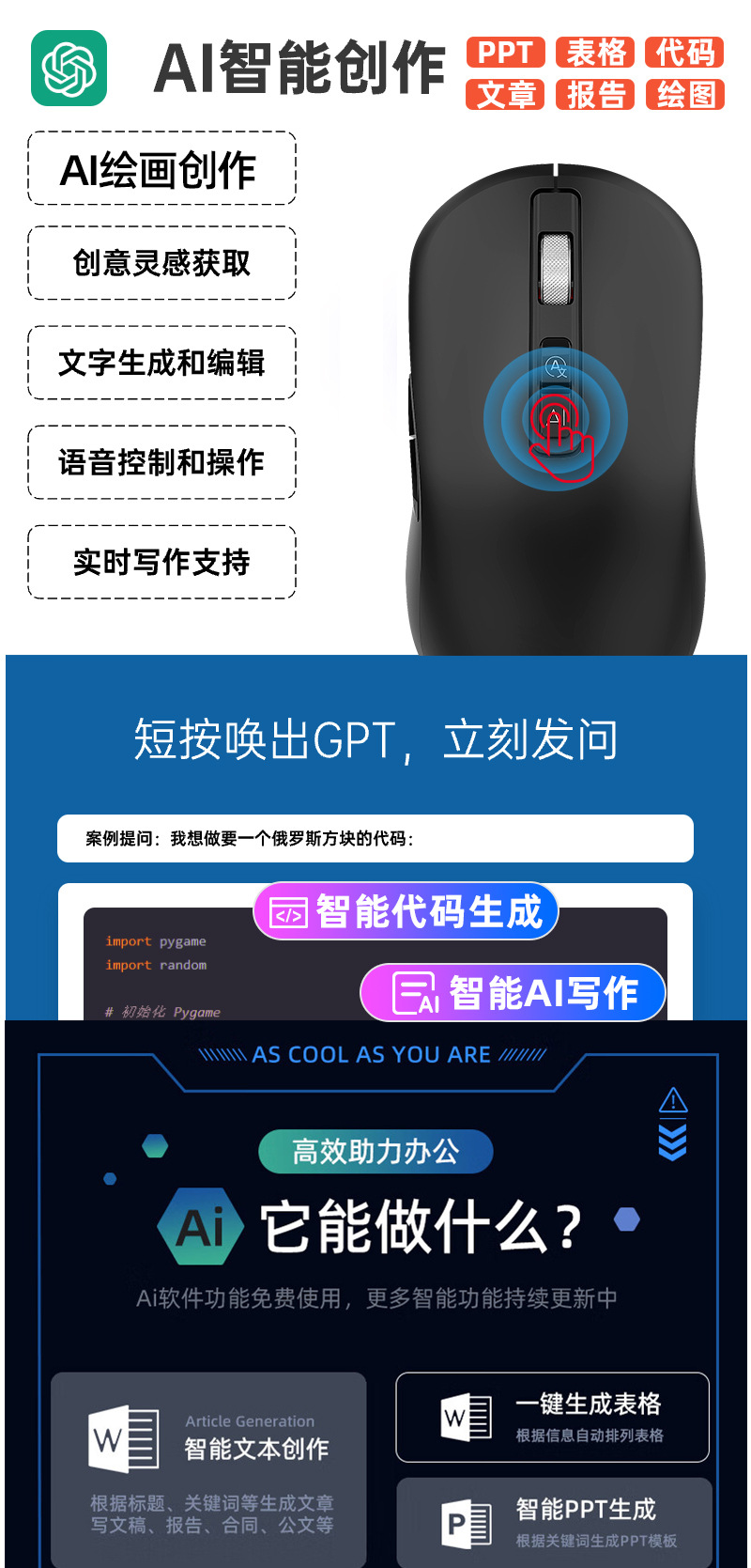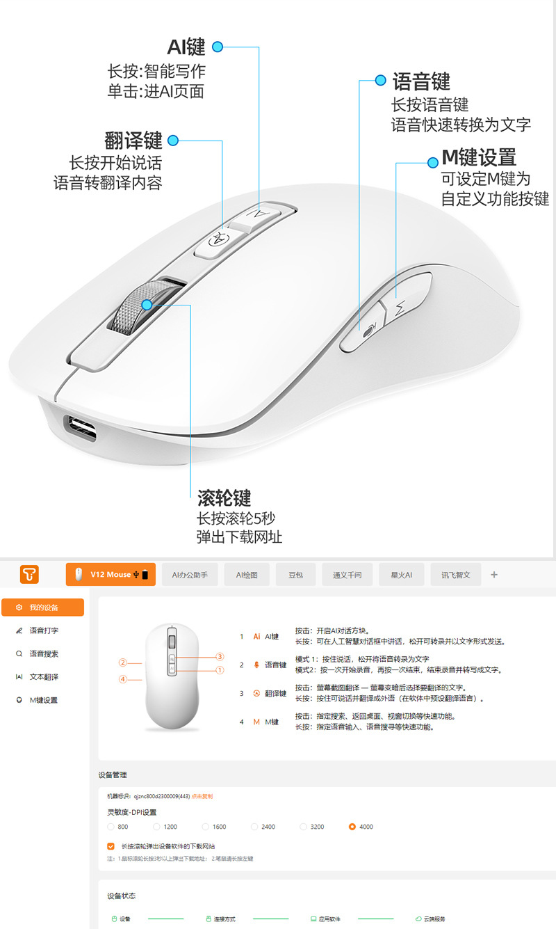 공장 재고 AI 블루투스 스마트 음성 마우스 텍스트 다중 국가 번역 aideepseek 쓰기 작성