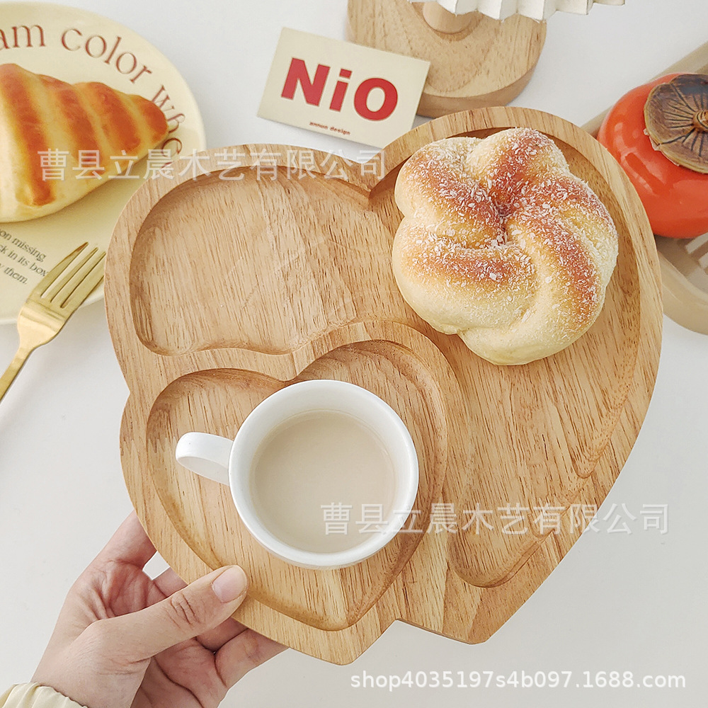 나무로 만든 이중 하트 모양 창의적 트레이 과일 접시 차 트레이 간식 보관 트레이 고급 원목 하트 접시 식사 접시스토어 가기