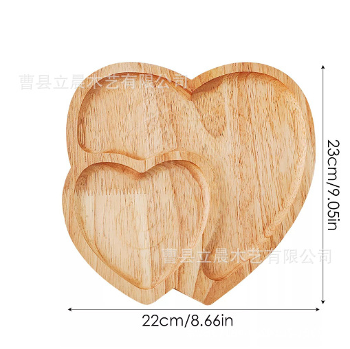 나무로 만든 이중 하트 모양 창의적 트레이 과일 접시 차 트레이 간식 보관 트레이 고급 원목 하트 접시 식사 접시