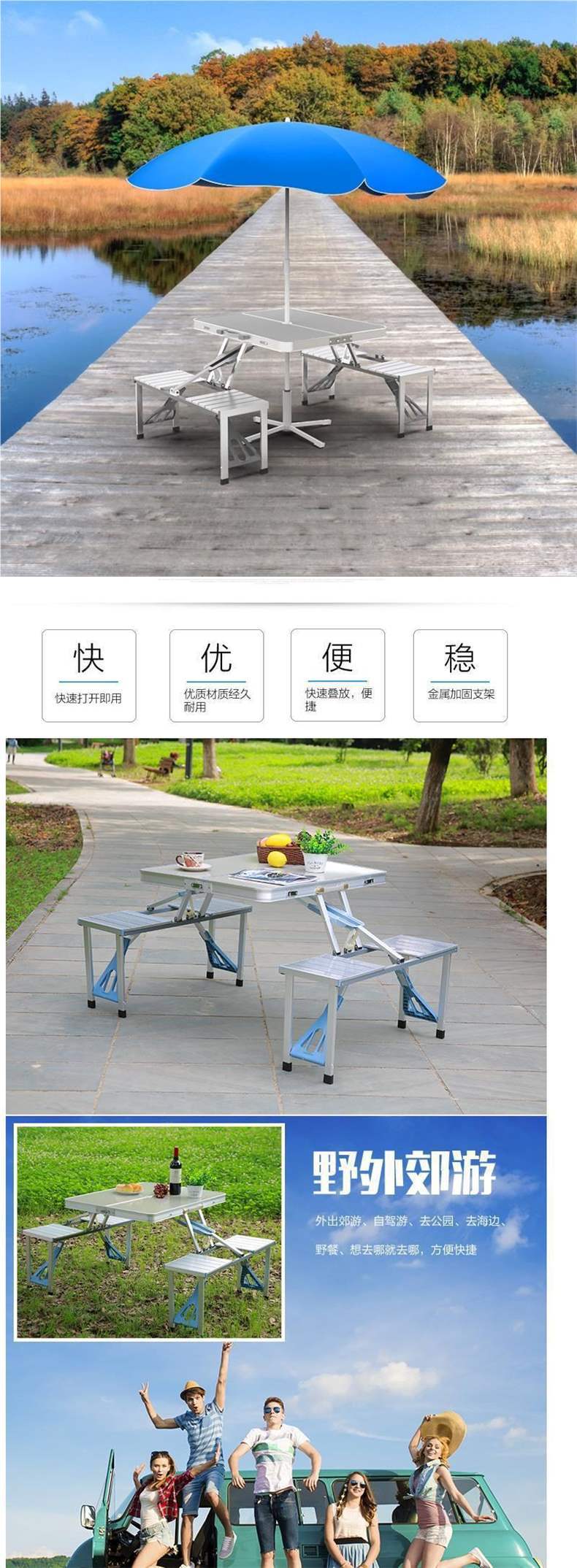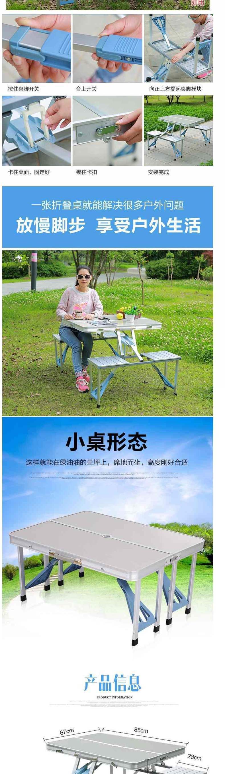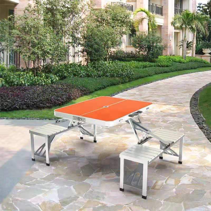 야외 접이식 테이블과 의자 휴대용 마구간 테이블 알루미늄 합금 결합 된 피크닉 테이블 1 테이블 4 의자 세트 광고스토어 가기