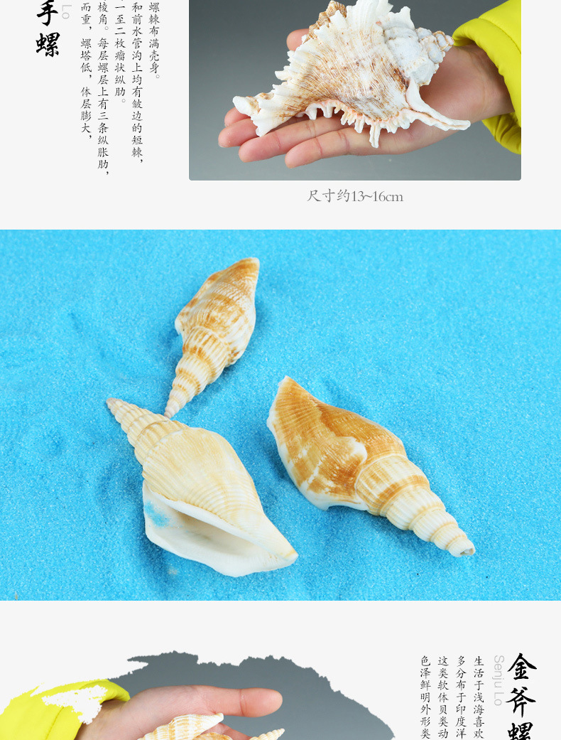 1、天然的海螺没有十全十美的,都会有小瑕疵,也会有少量破损,也不可能一模一样,毕竟是天然的。例如螺口边缘不齐整,虫眼小洞啥的,不作质量问题处理,不介意的可以拍下哦。谢谢亲的理解~~