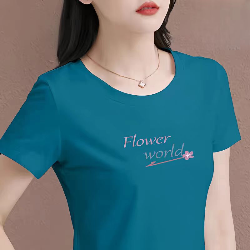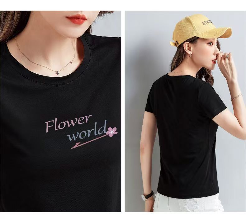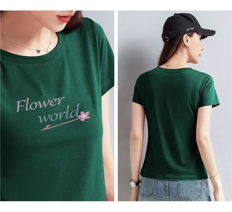 면 반소매 티셔츠 여성 서양식 탑 여름 신형 한국식 인스타그램 인기 시대 감소 슬림핏 슬리밍 반소매 티셔츠스토어 가기