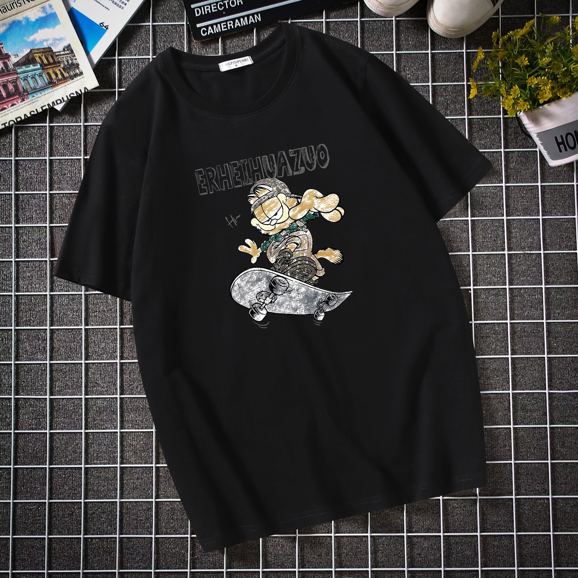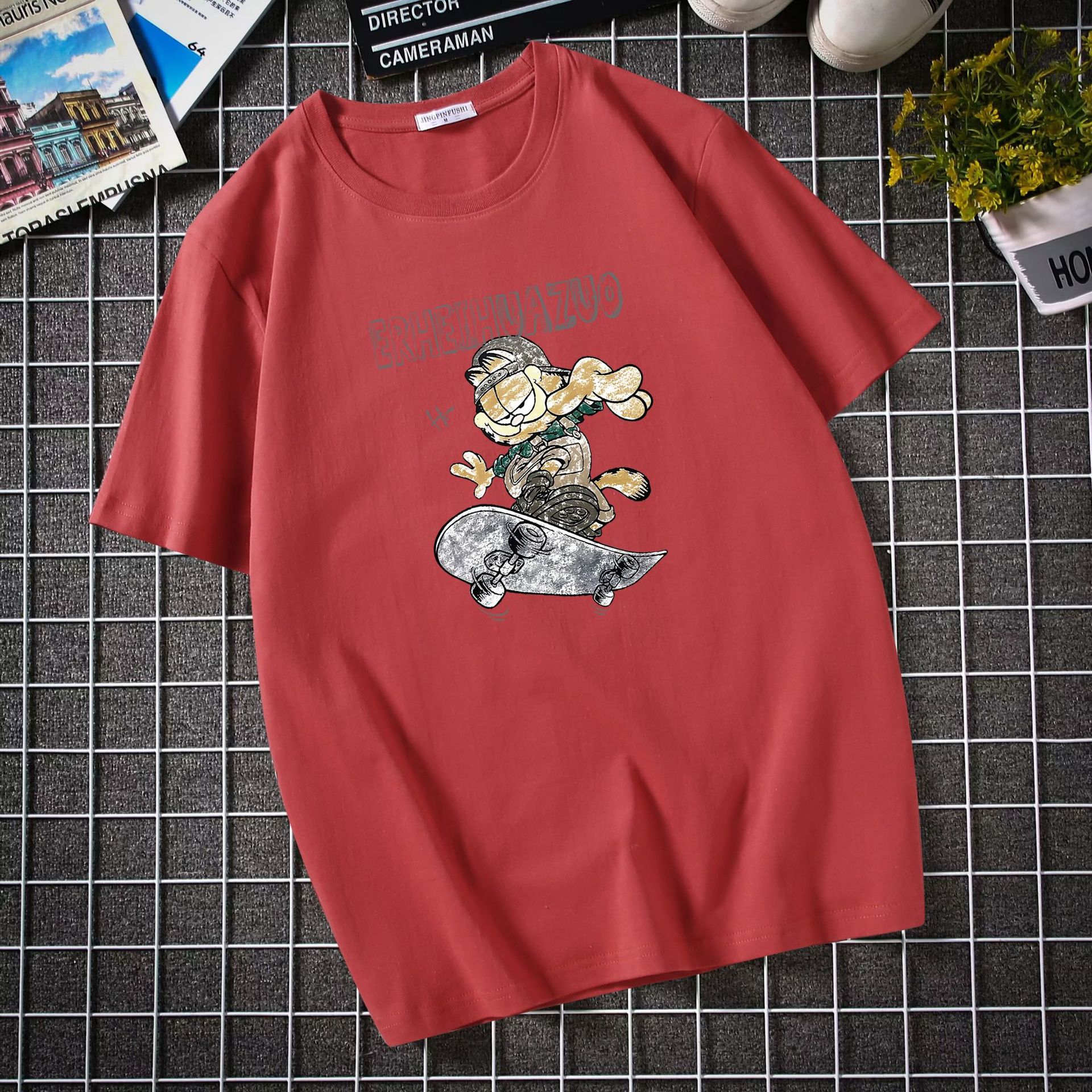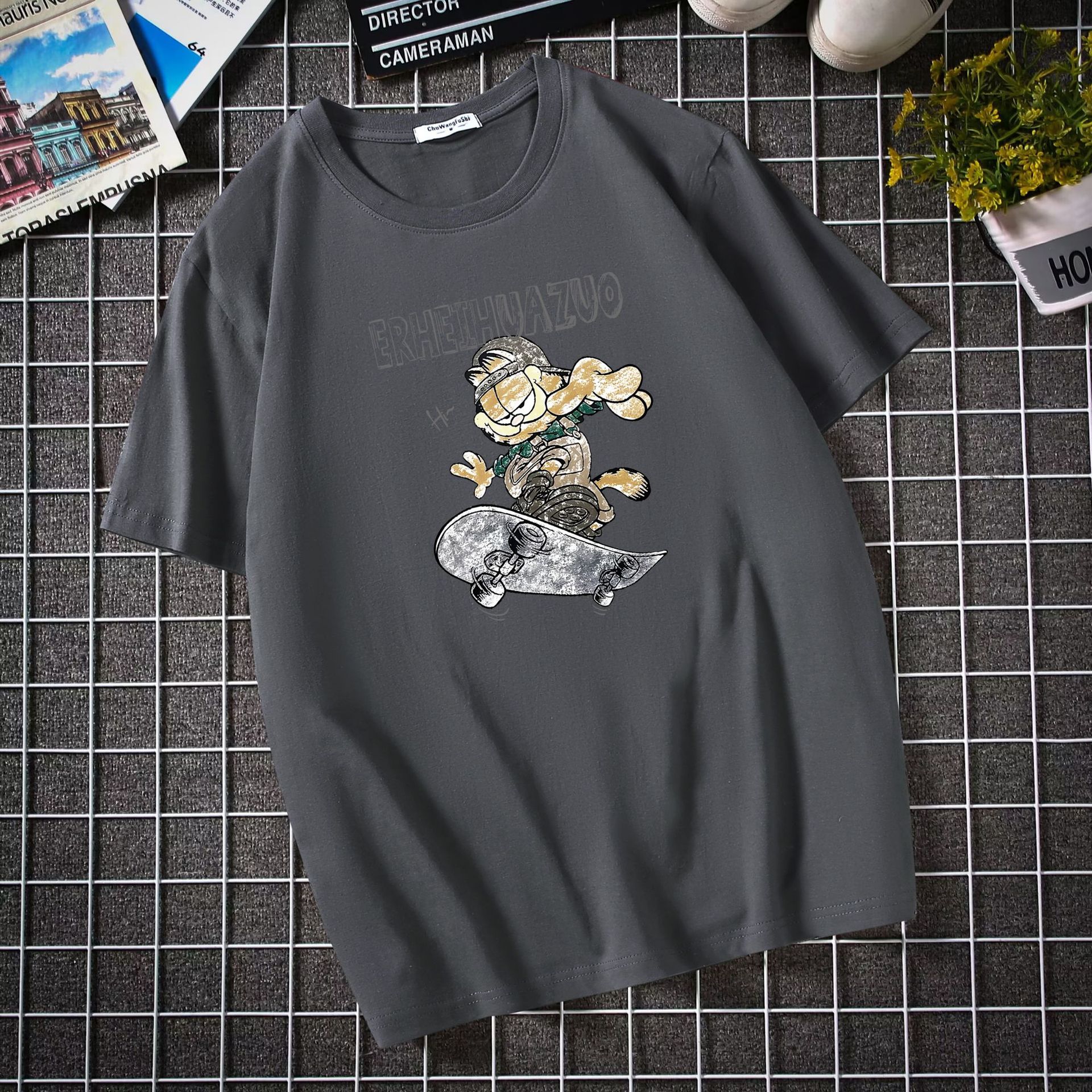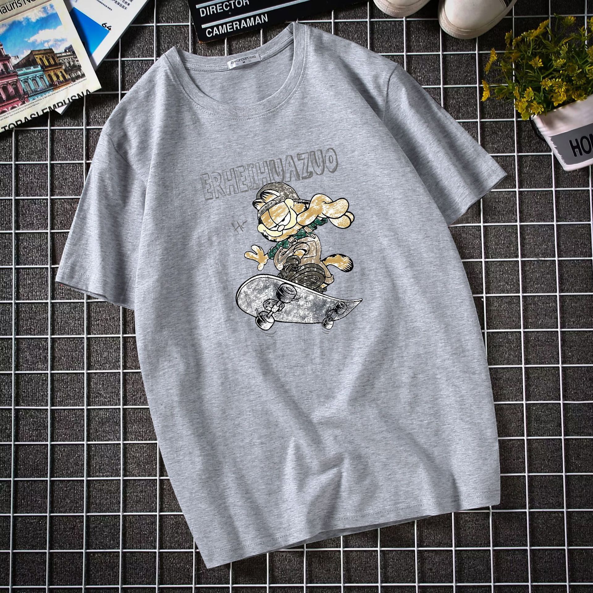 남자 반팔 티셔츠 한국 패션 브랜드 학생 둥근 목 느슨한 반소매 탑 뚱뚱한 플러스 사이즈스토어 가기