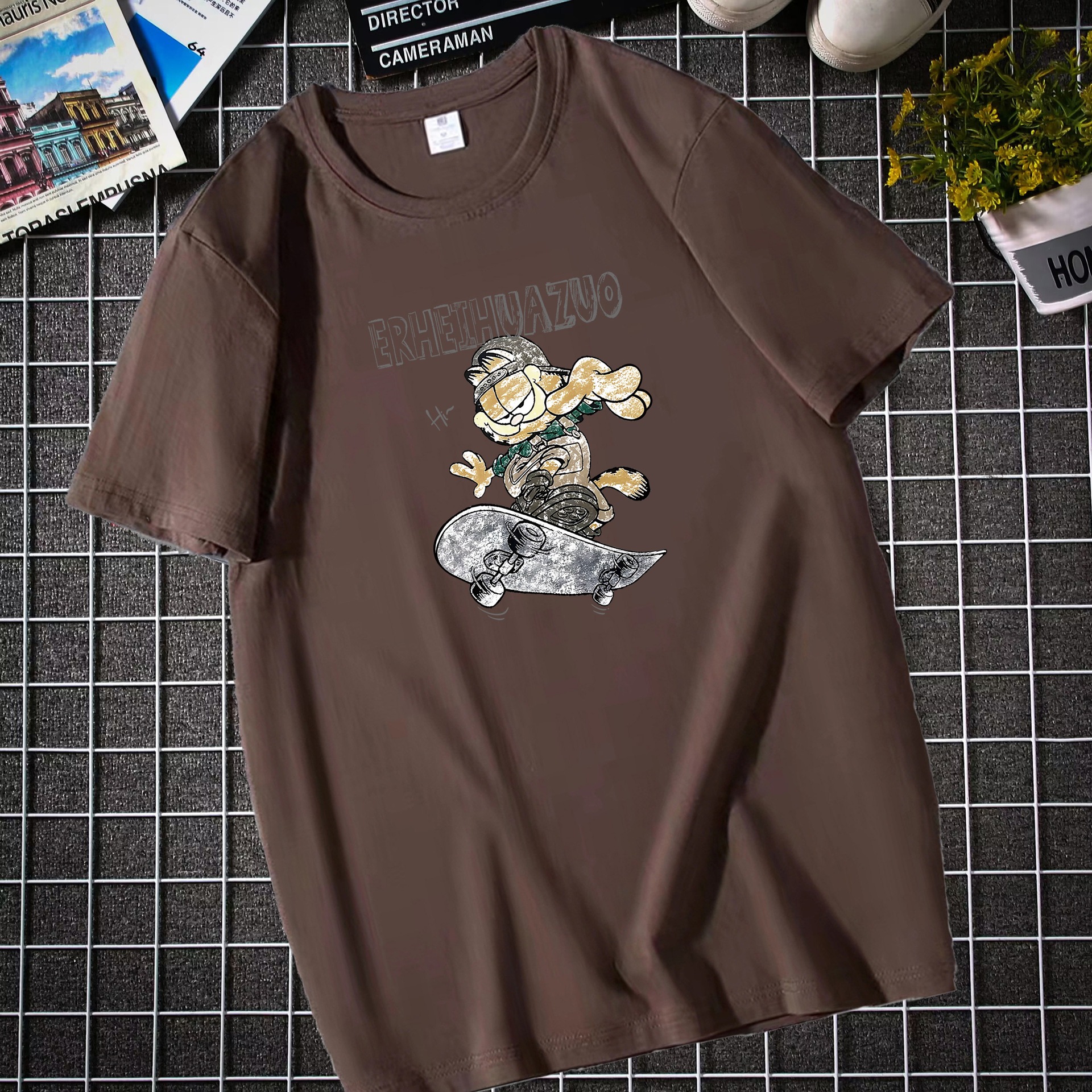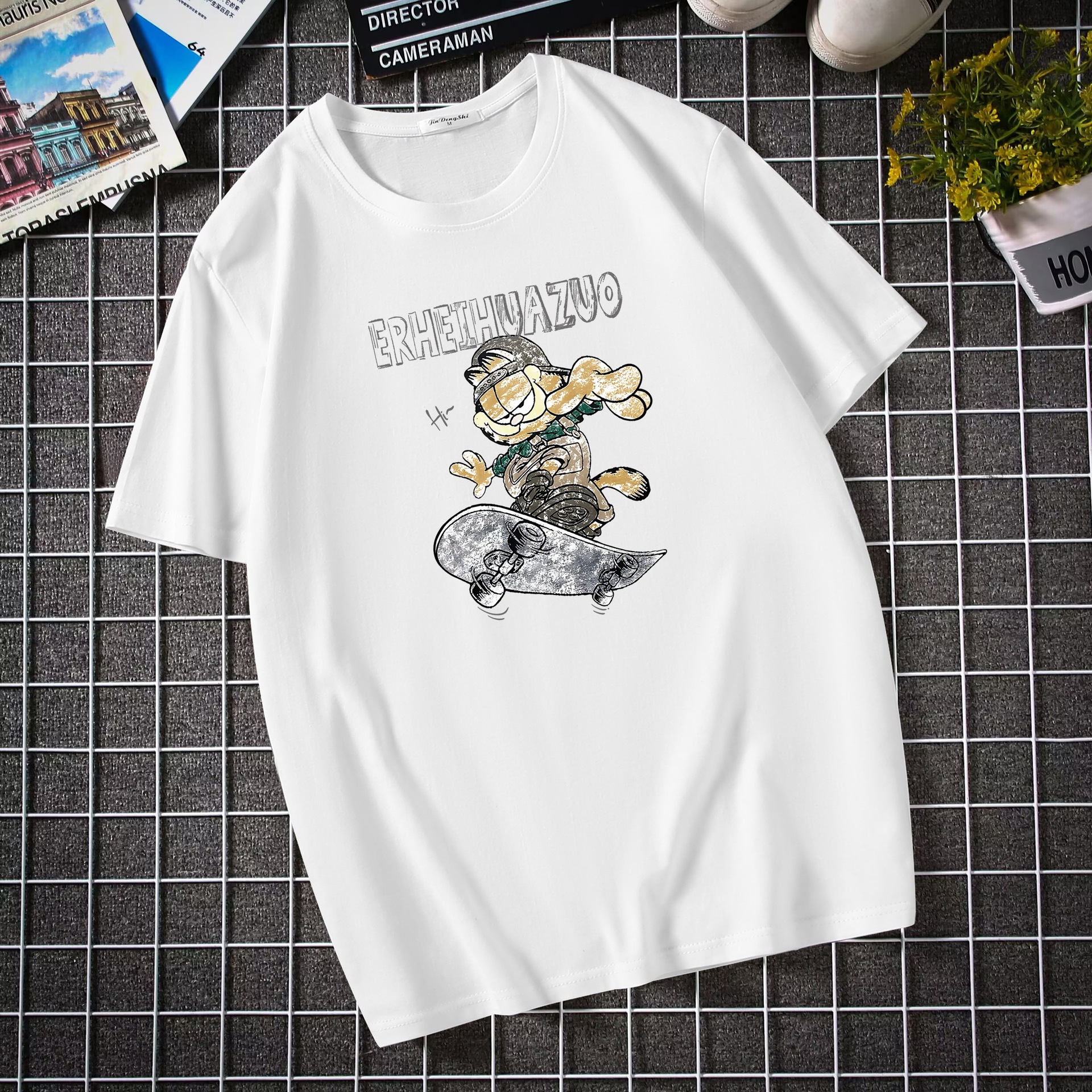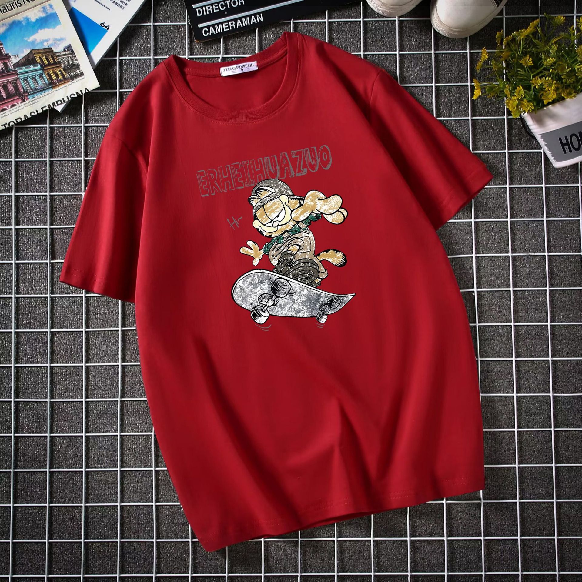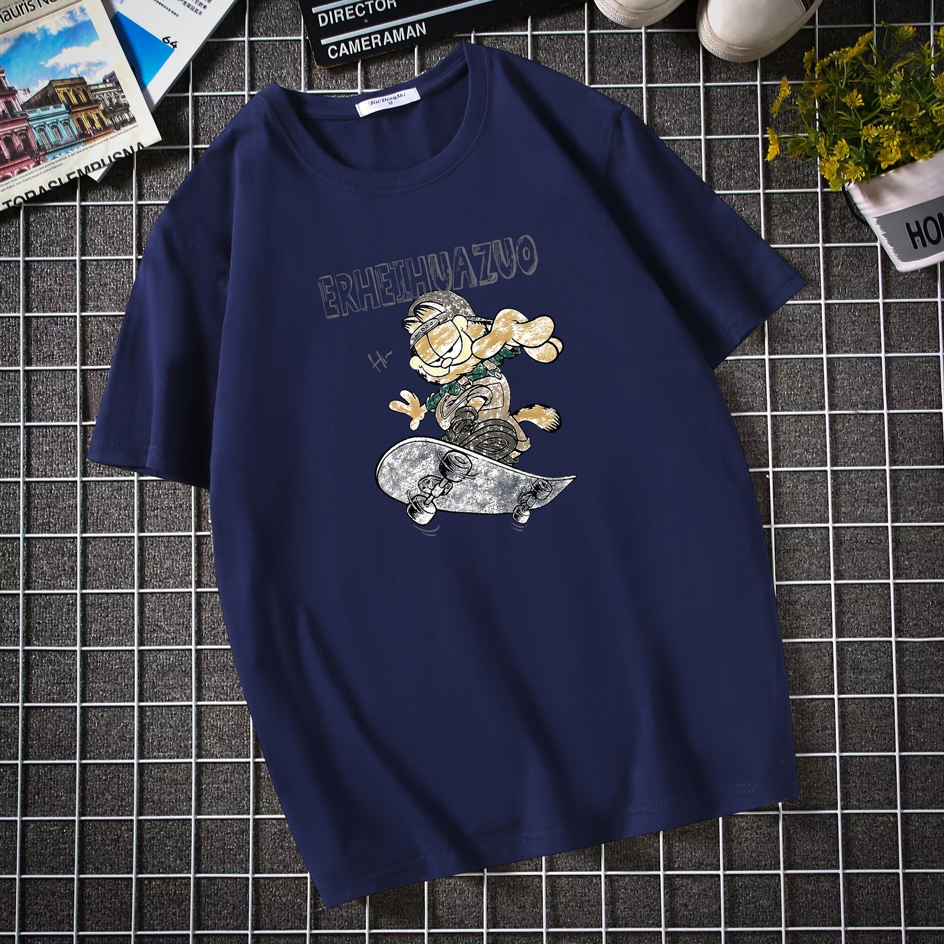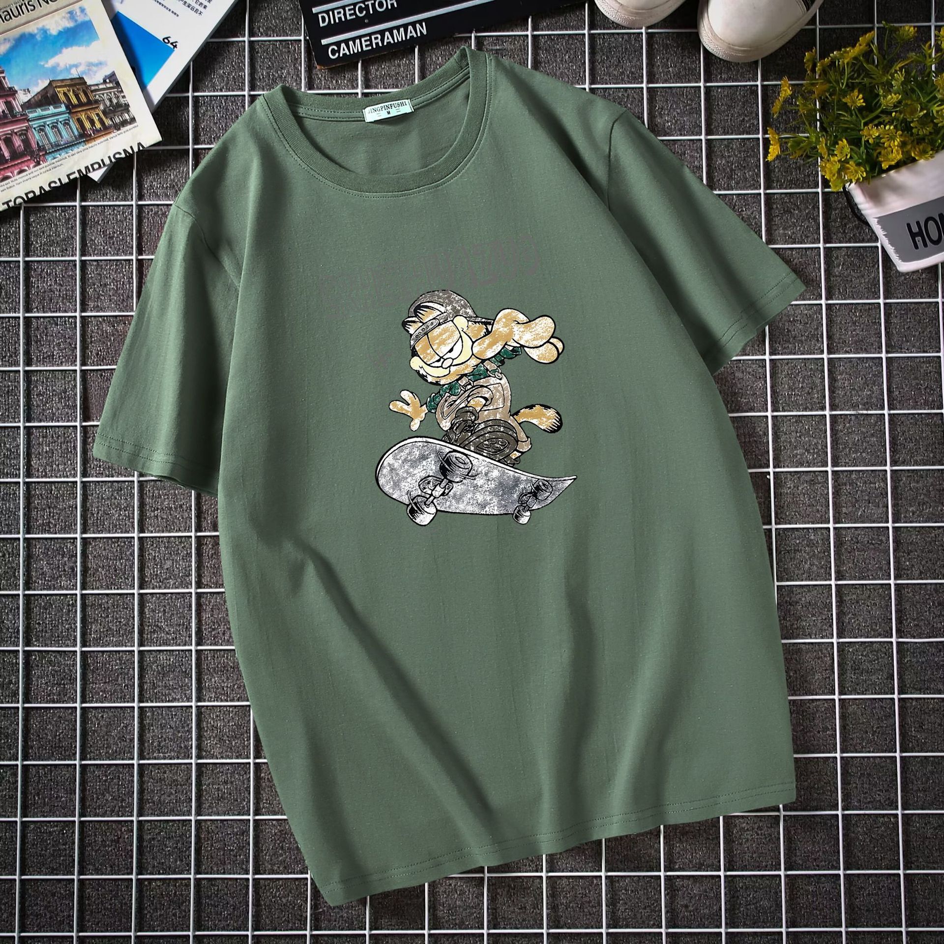 남자 반팔 티셔츠 한국 패션 브랜드 학생 둥근 목 느슨한 반소매 탑 뚱뚱한 플러스 사이즈스토어 가기