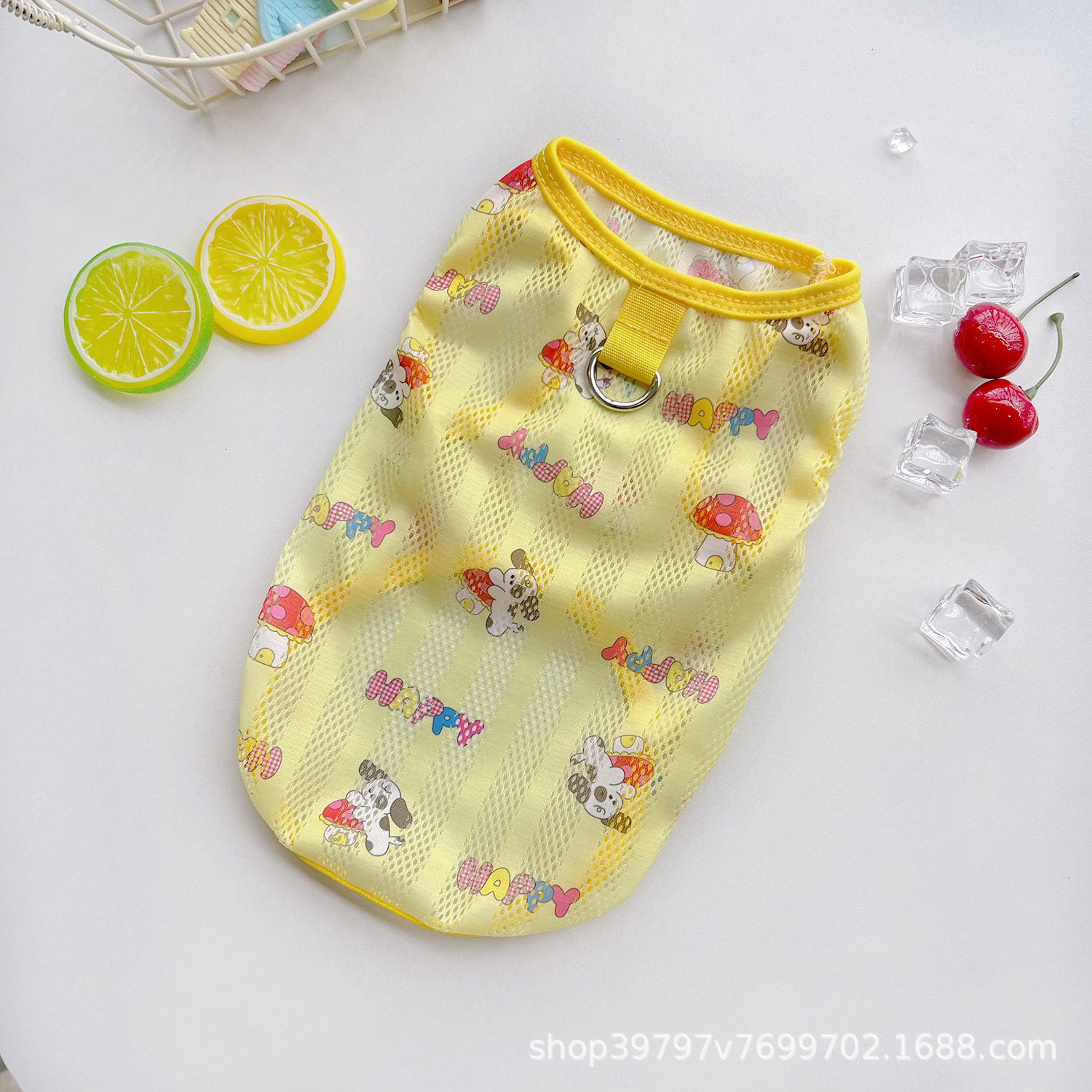 • 파인 그레인 메쉬 옐로우 해피 도그 통기성 메쉬 조끼