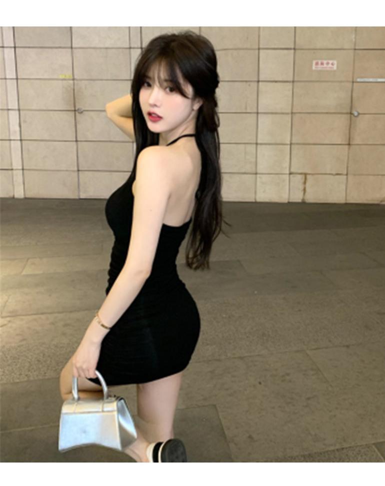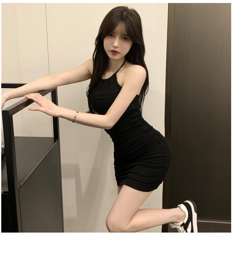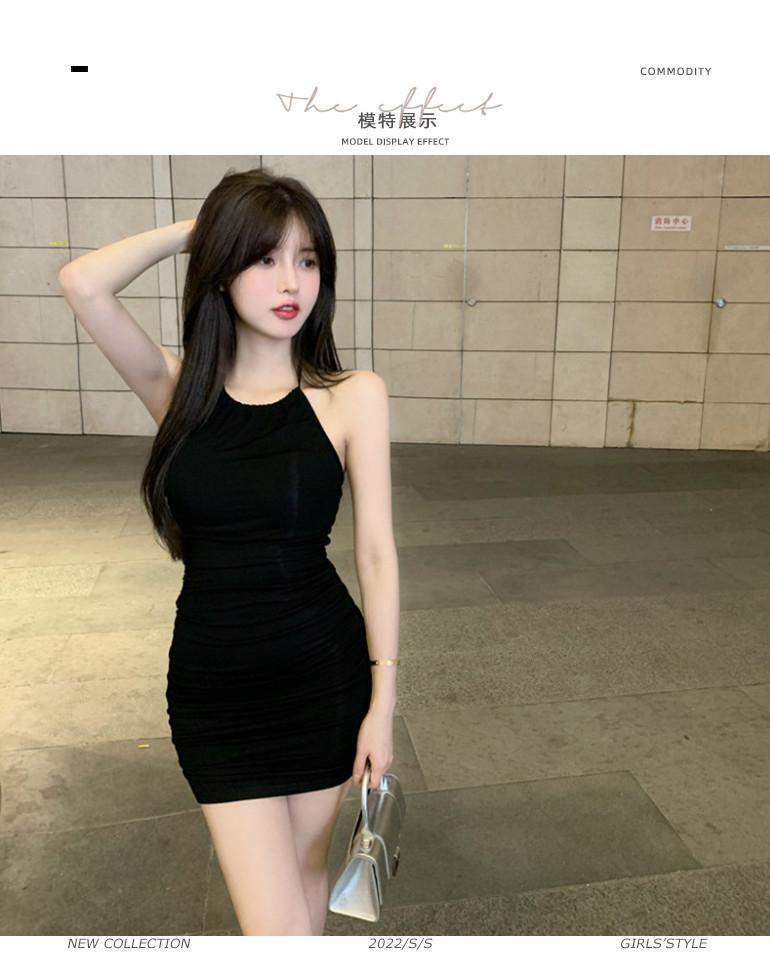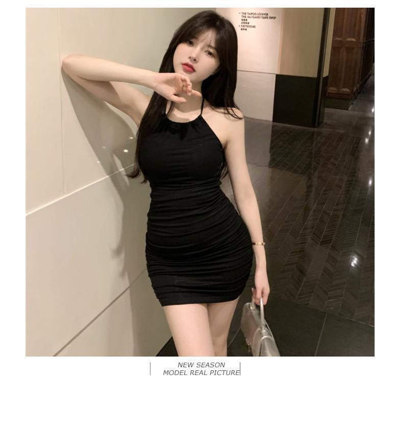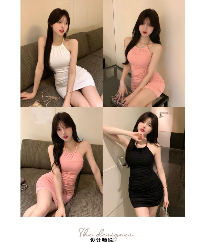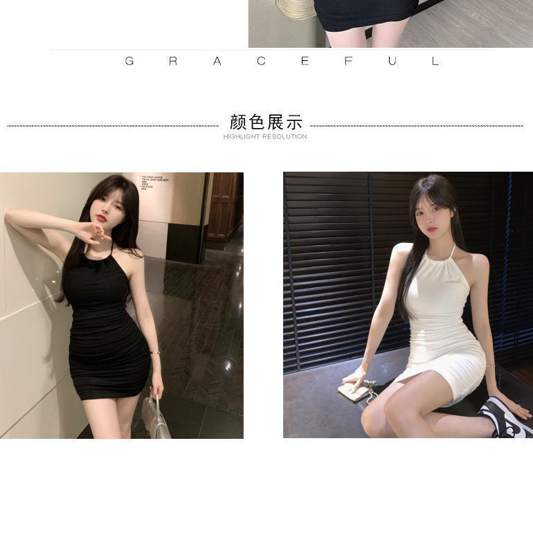 여름 슬림핏 엉덩이 슬링 원피스 여성의 꽉 허리 스트레치 고급 디자인 달콤한 뜨거운 소녀 목 베이스 스커트스토어 가기