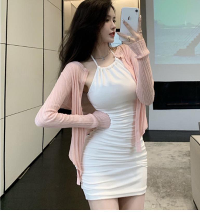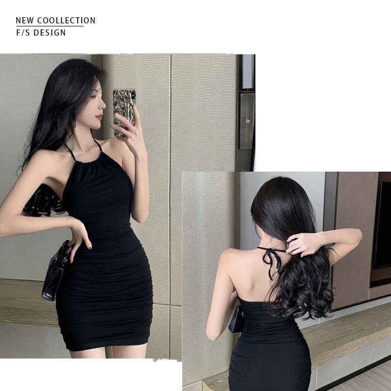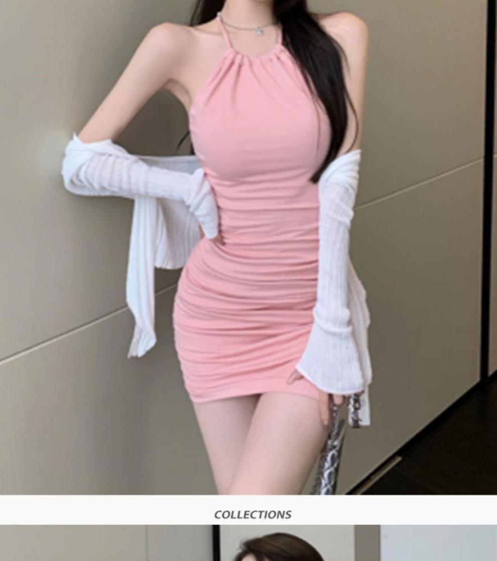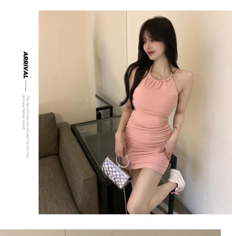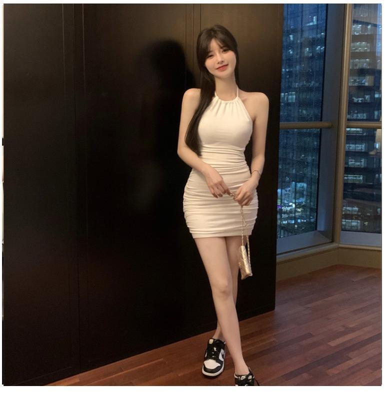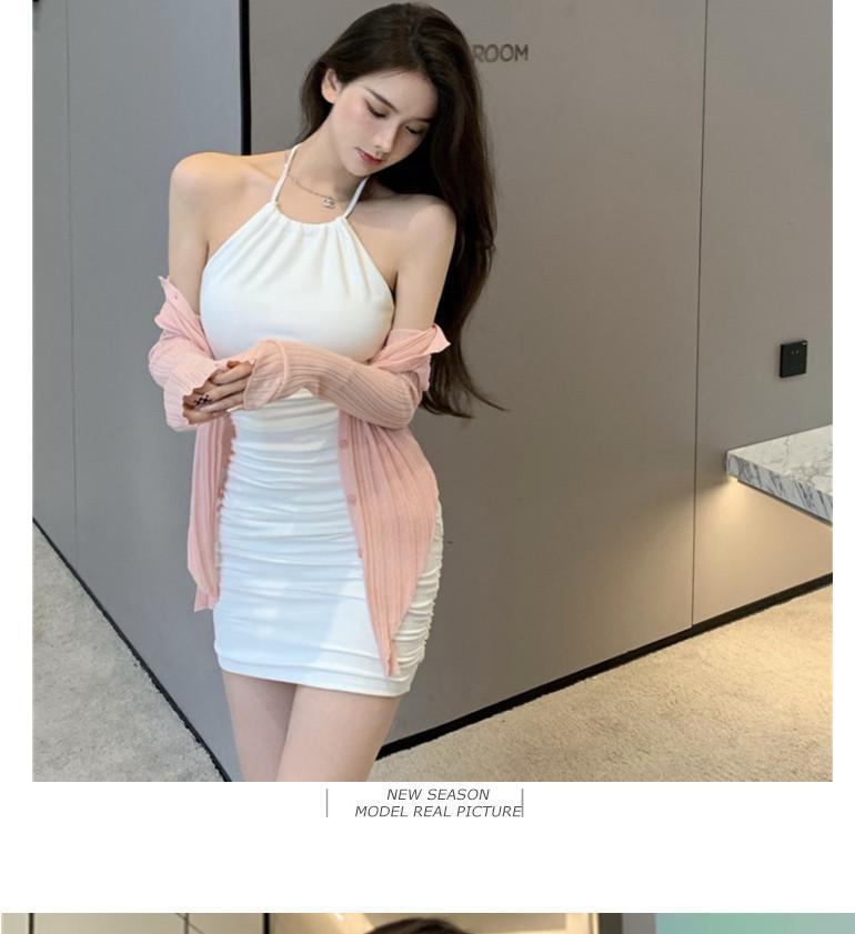 여름 슬림핏 엉덩이 슬링 원피스 여성의 꽉 허리 스트레치 고급 디자인 달콤한 뜨거운 소녀 목 베이스 스커트스토어 가기