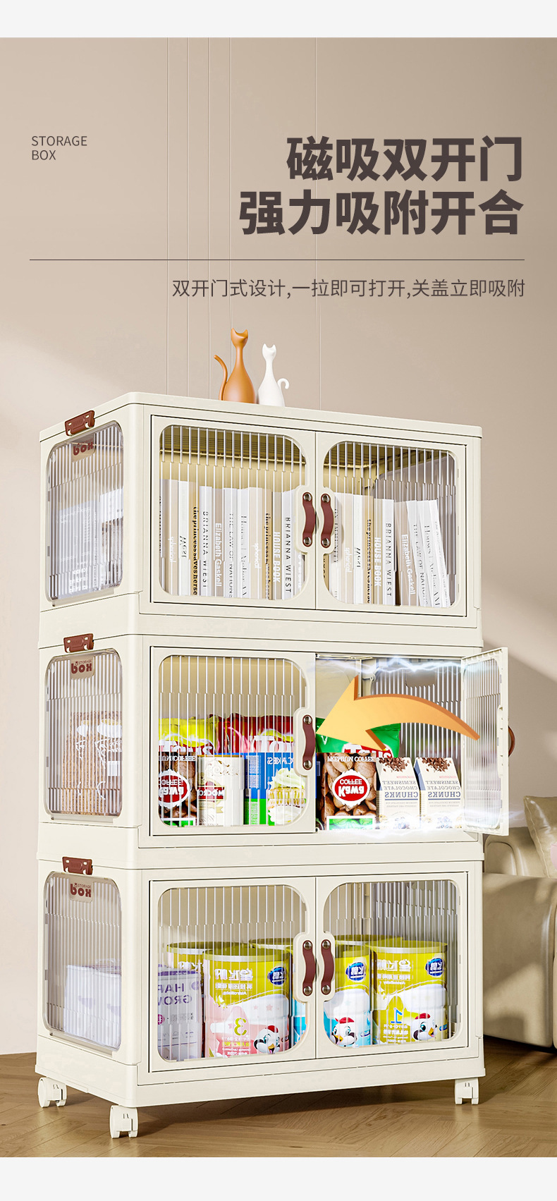 접이식 보관 캐비닛 설치없는 옷 간식 잡화 보관 캐비닛 플라스틱 다층 보관 캐비닛 침실 거실 보관스토어 가기