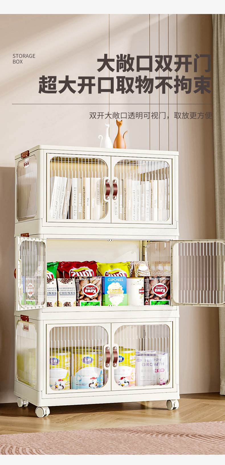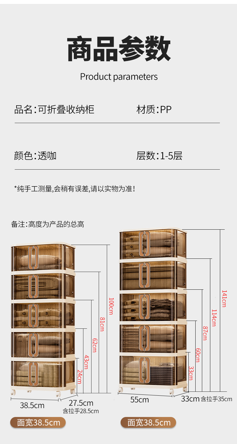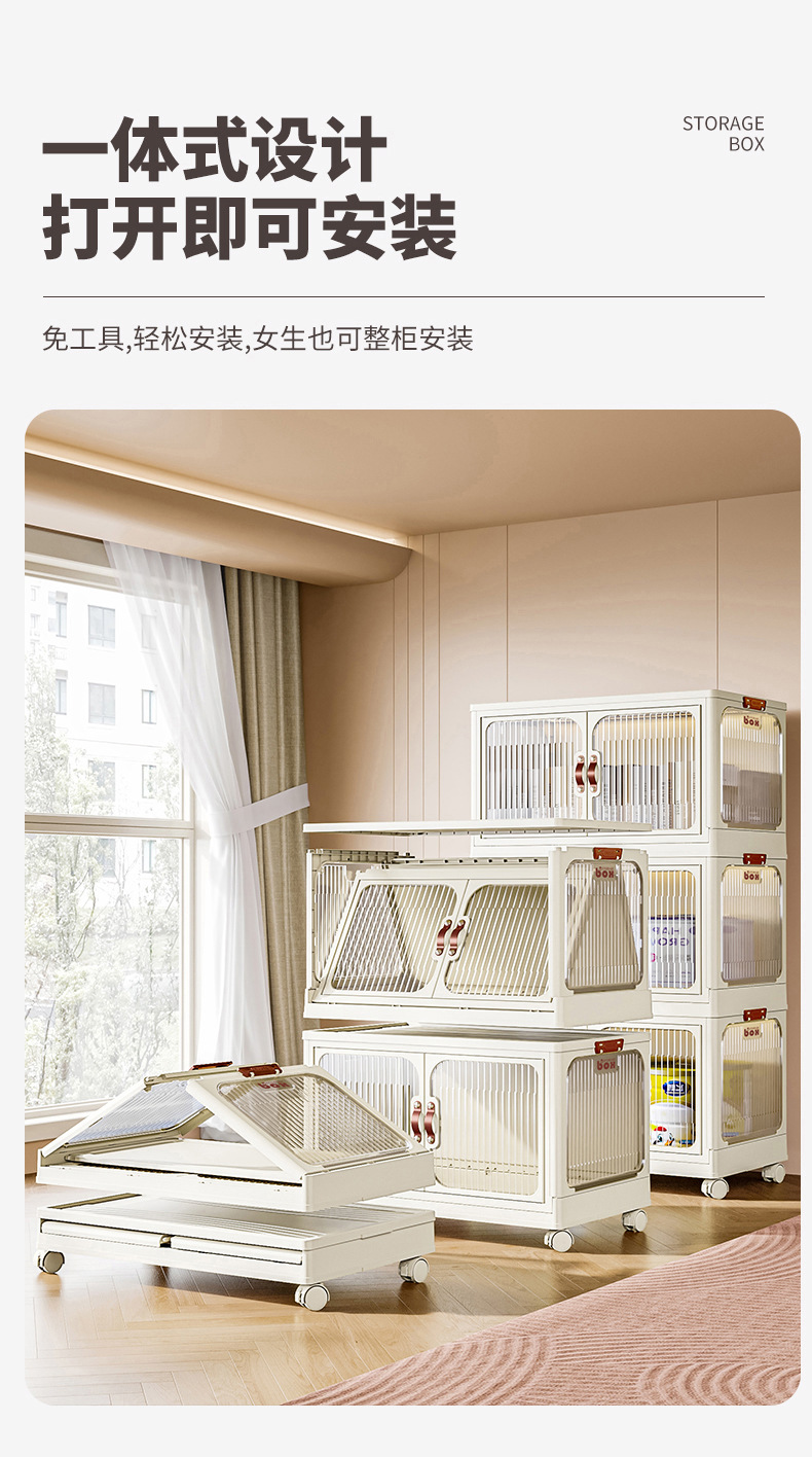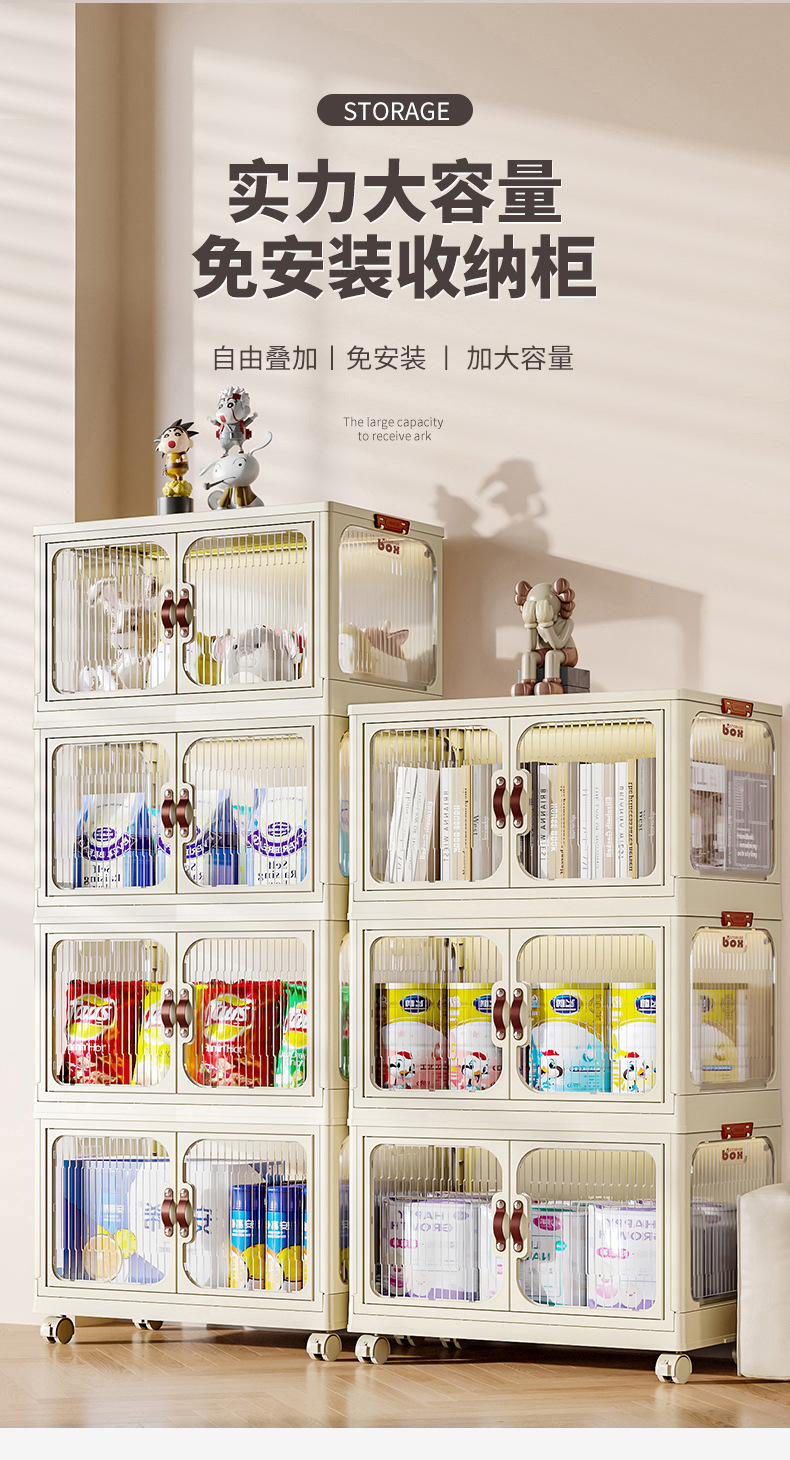 접이식 보관 캐비닛 설치없는 옷 간식 잡화 보관 캐비닛 플라스틱 다층 보관 캐비닛 침실 거실 보관