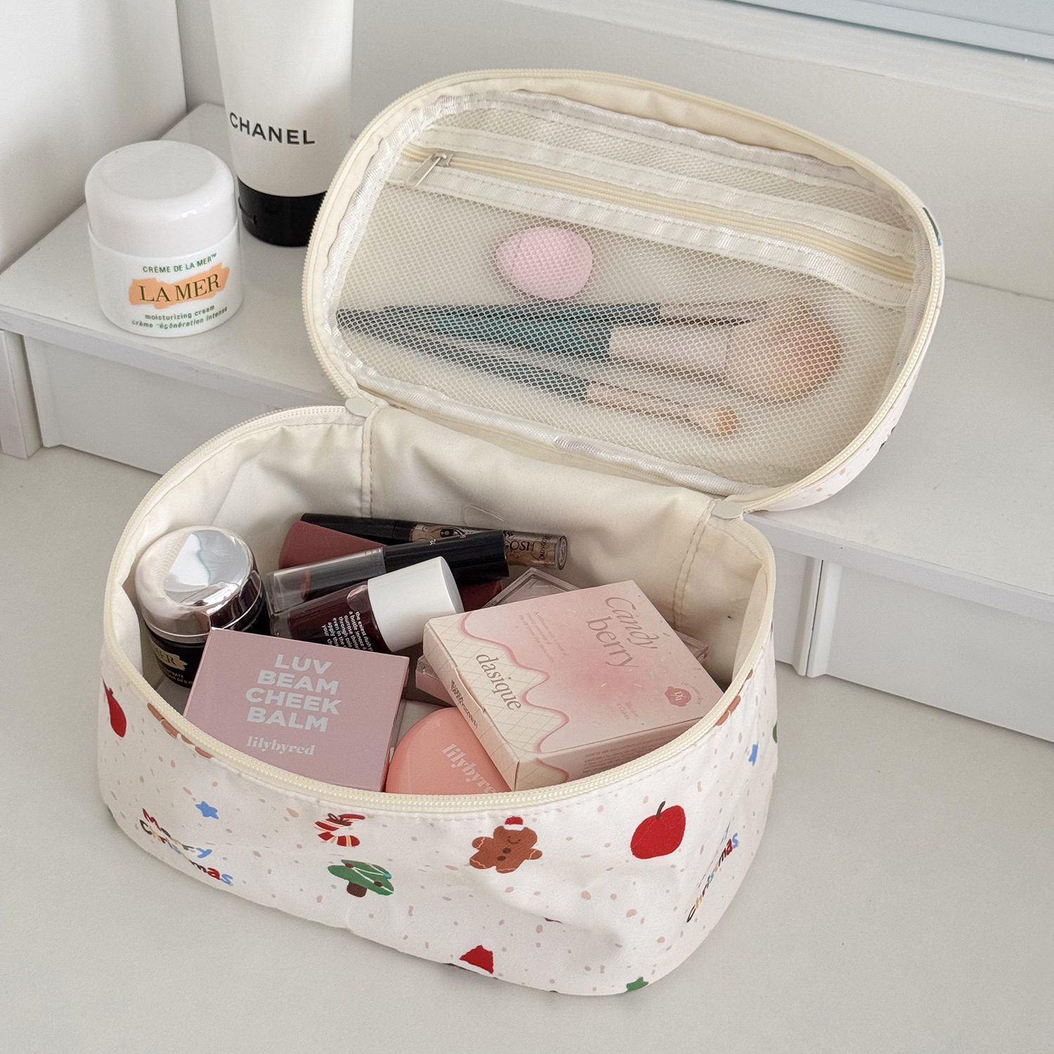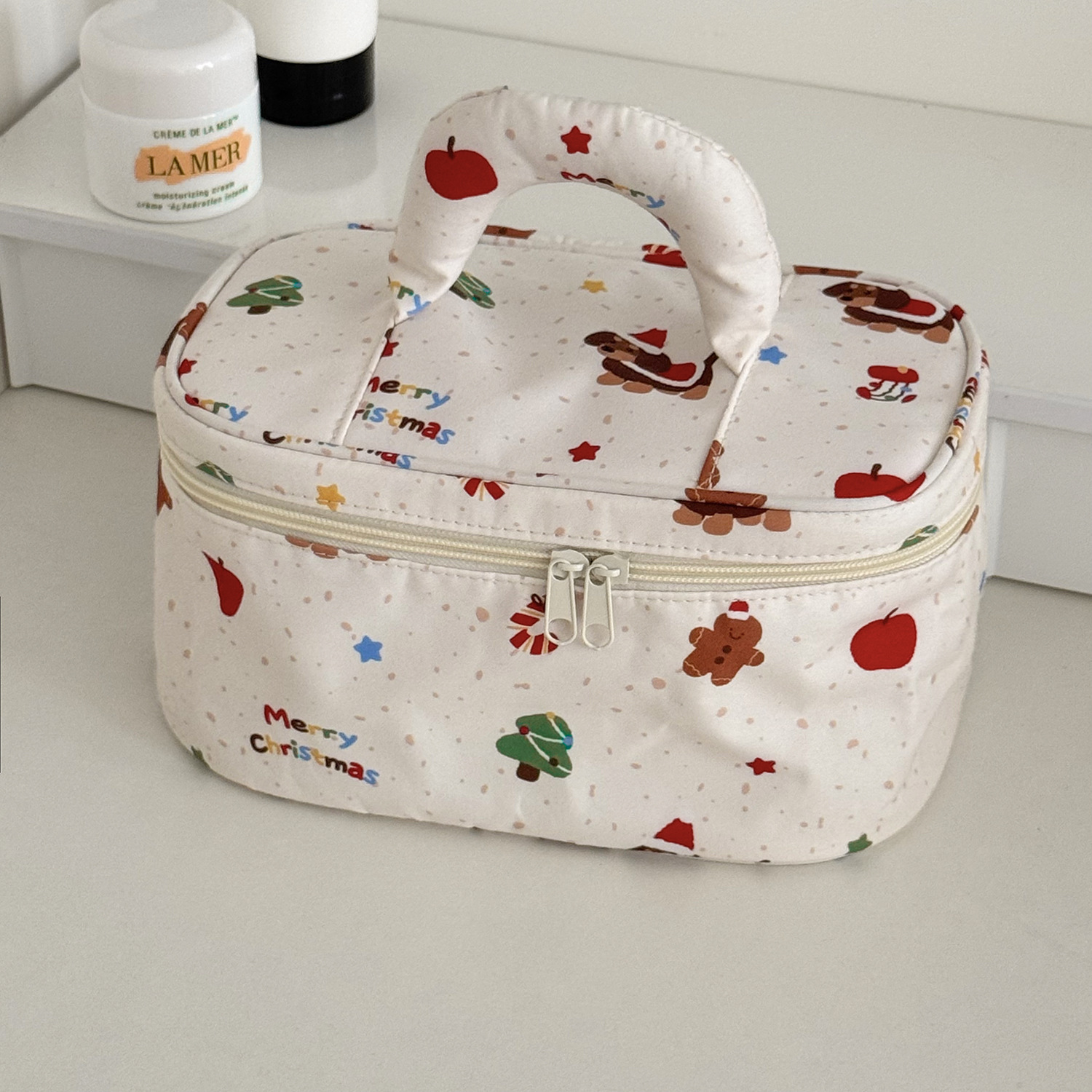 크리스마스 닥스훈트 화장품 가방, 휴대용 대용량 휴대용 수납 가방, 고급스러운 미용 가방스토어 가기
