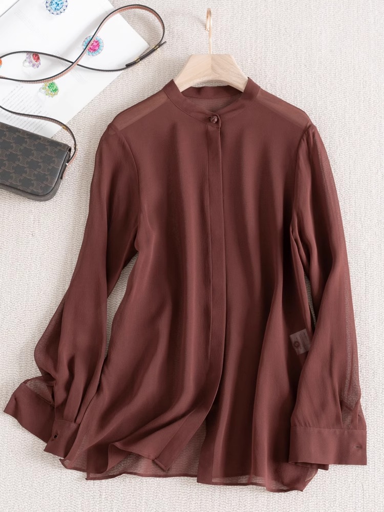 LP-8005 봄 프랑스 고급 럭셔리 벽돌 빨간 셔츠 세련된 아름다운 슈퍼 페어리 셔츠 텐셀 얇은