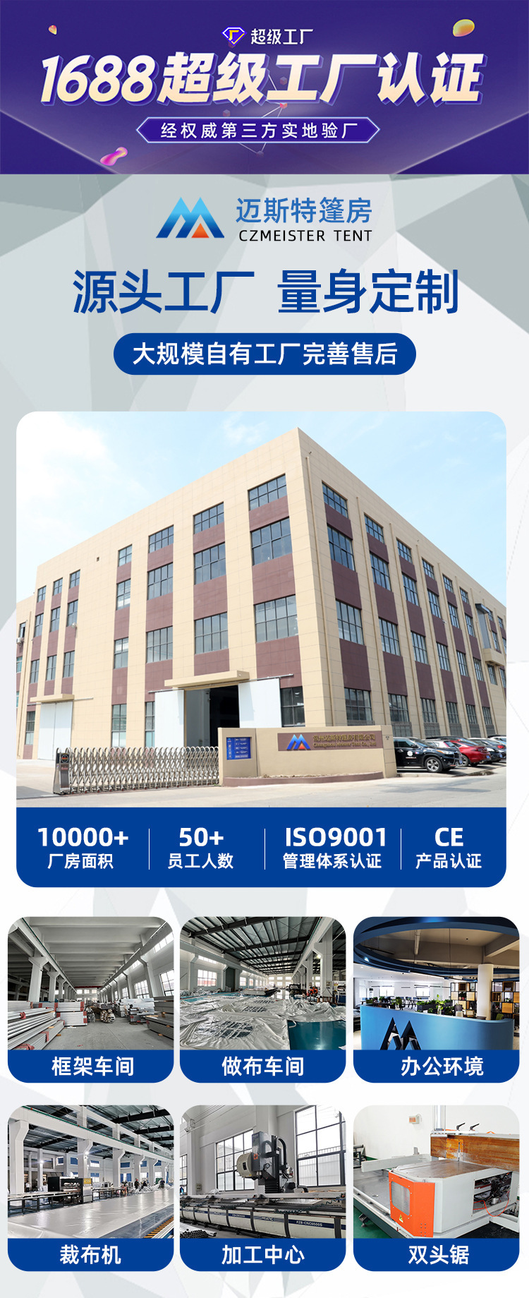 5、高度集成化: 篷房具有很多配件配套,安全实用