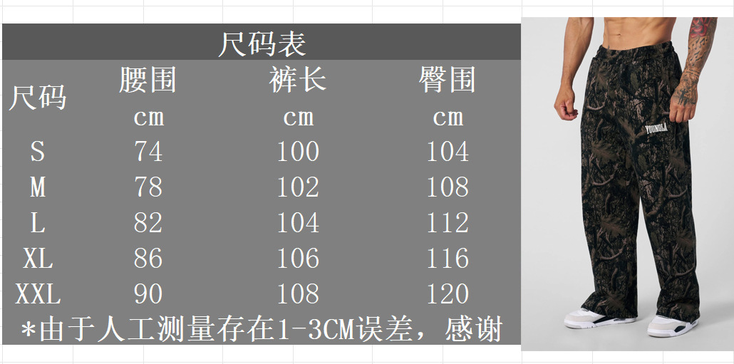 YOUNGLA 국경 미국 남자의 유행 캐주얼 바지 넓은 다리 위장 디지털 인쇄 느슨한 스포츠 바지스토어 가기