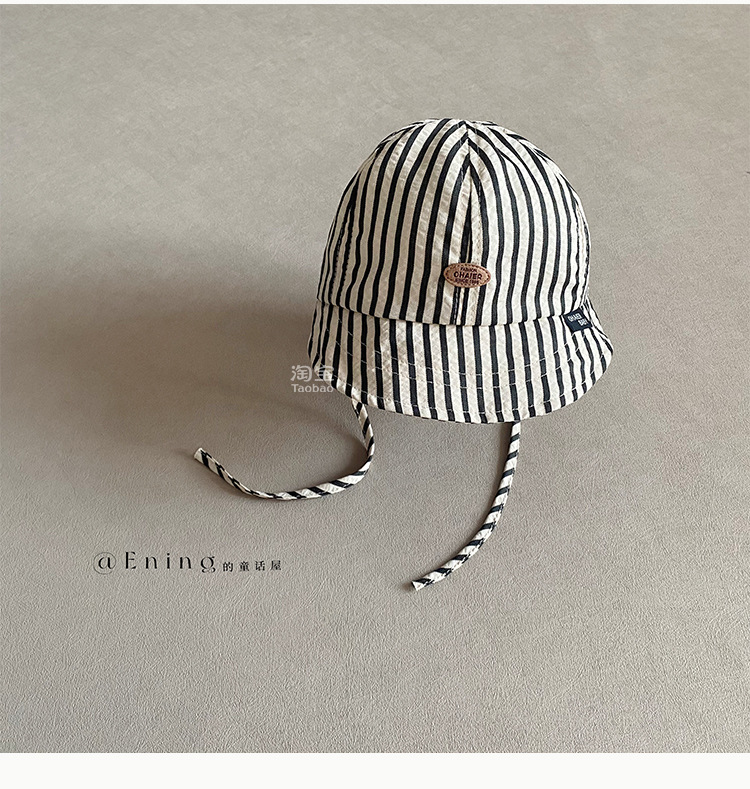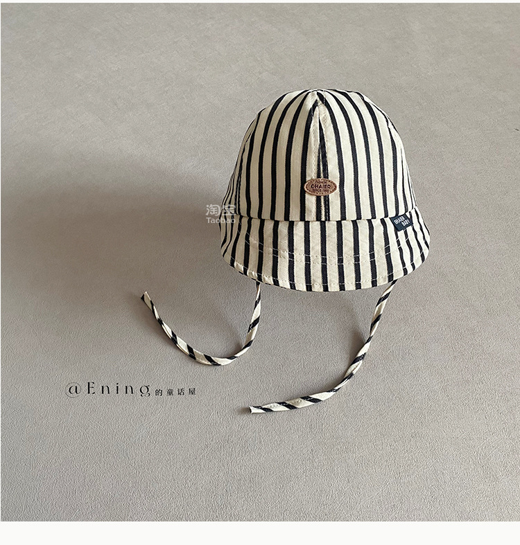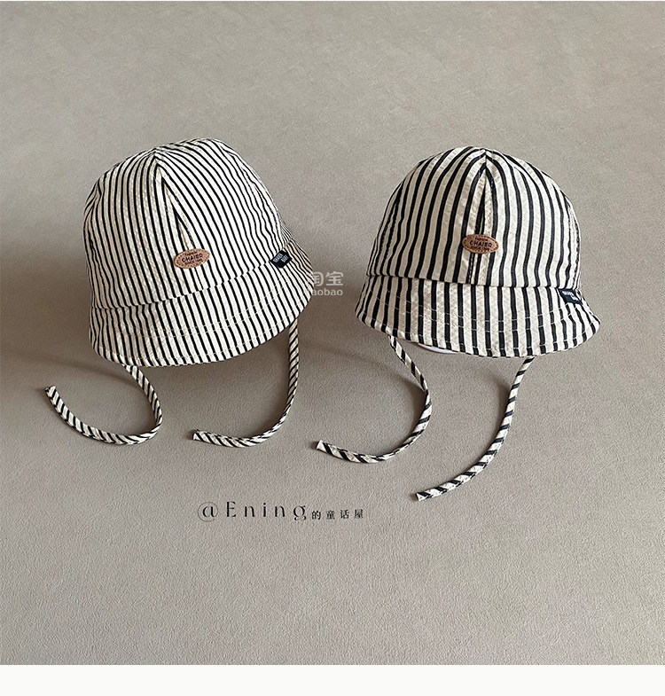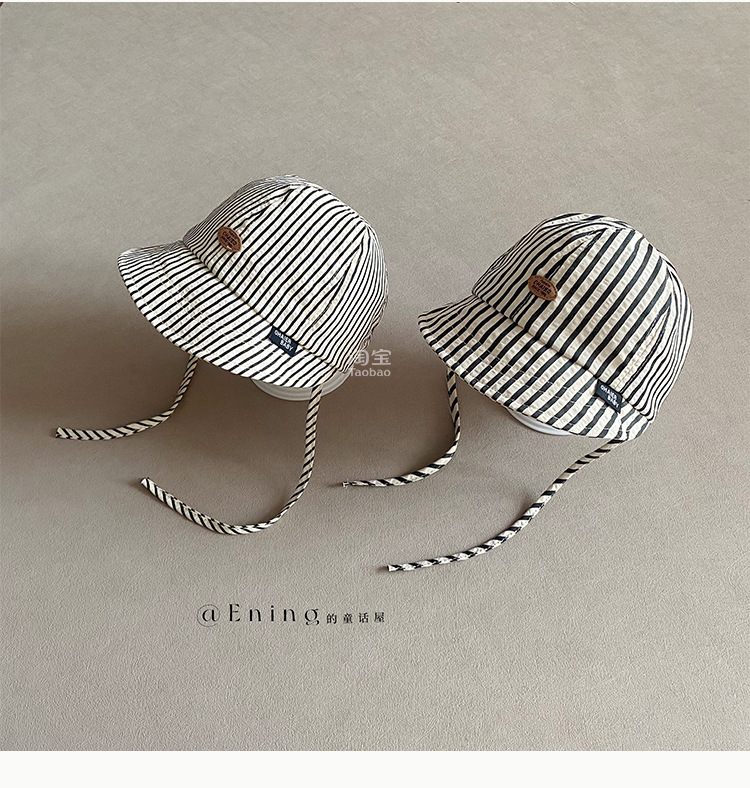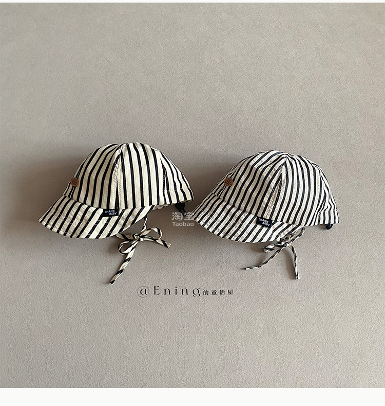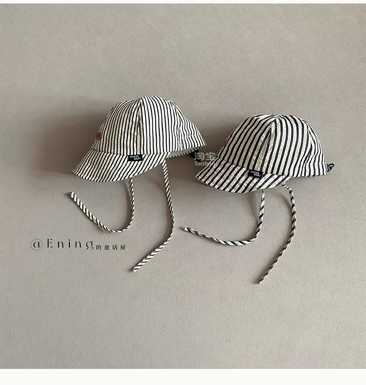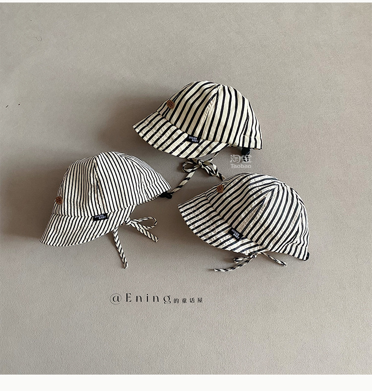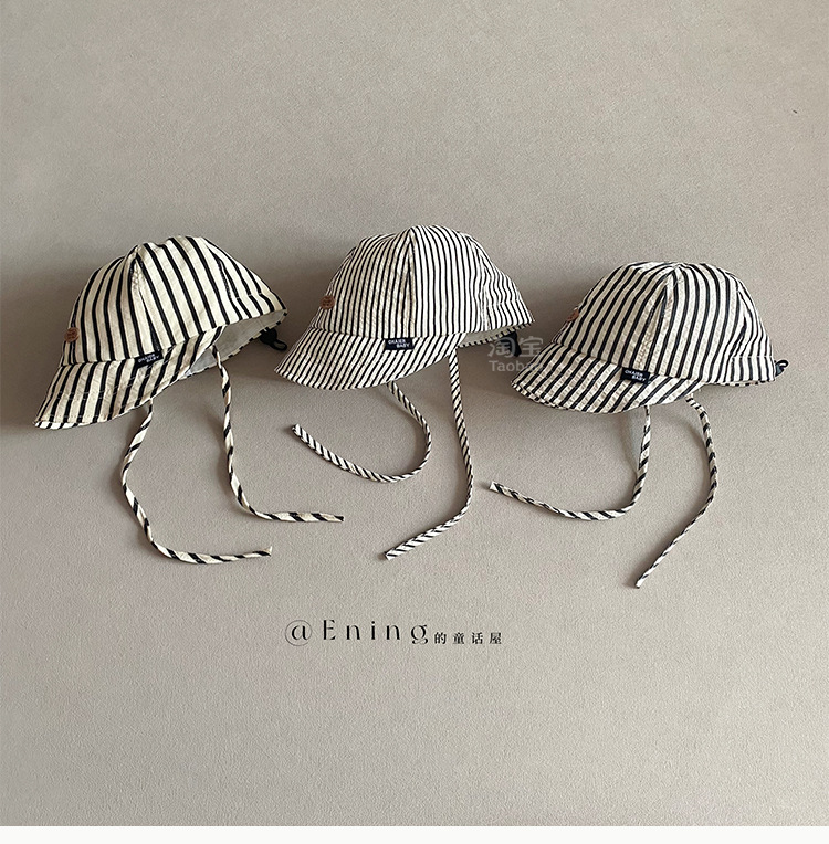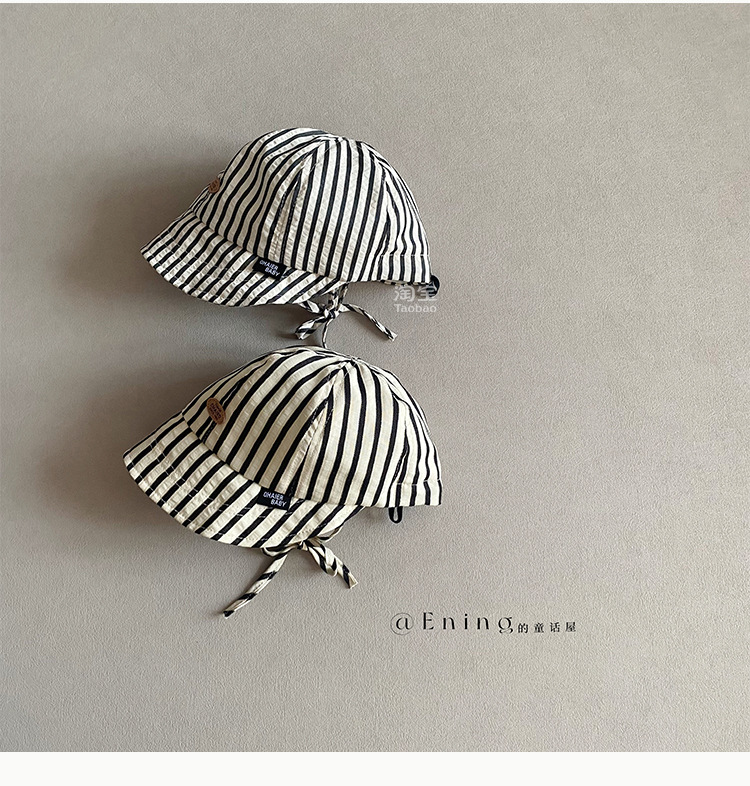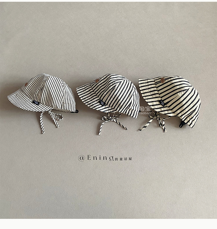2025 새로운 한국 아기 모자 봄과 가을 얇은 소년과 소녀 아기 어린이 큰 테두리 선 스크린 선 바이저 줄무늬 모자스토어 가기