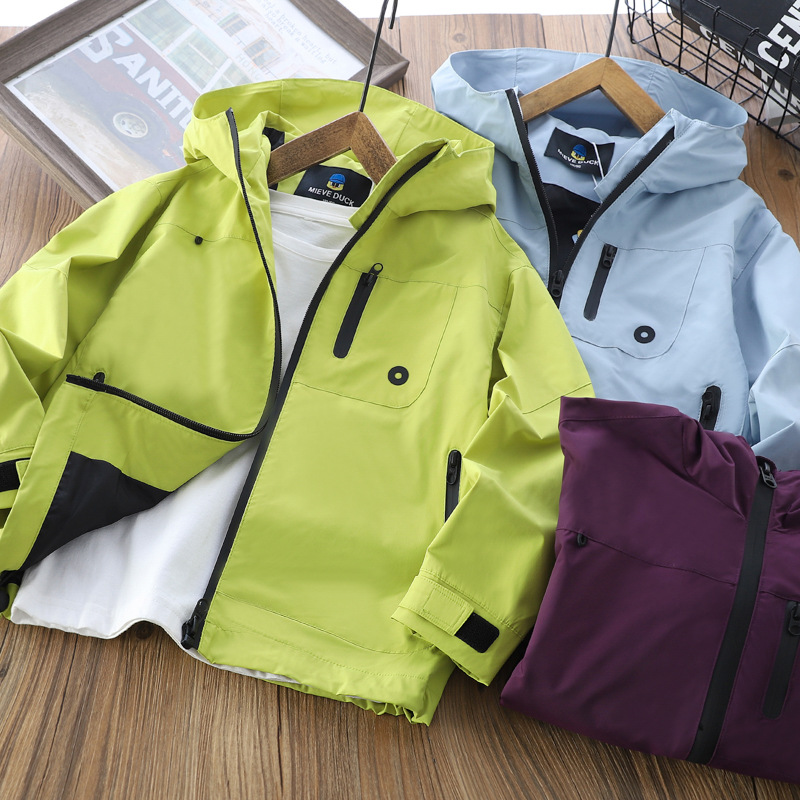 MIEVE DUCK 공장 직모 2025 봄 중대형 아동용 우븐 재킷 방풍 캐주얼 다용도스토어 가기