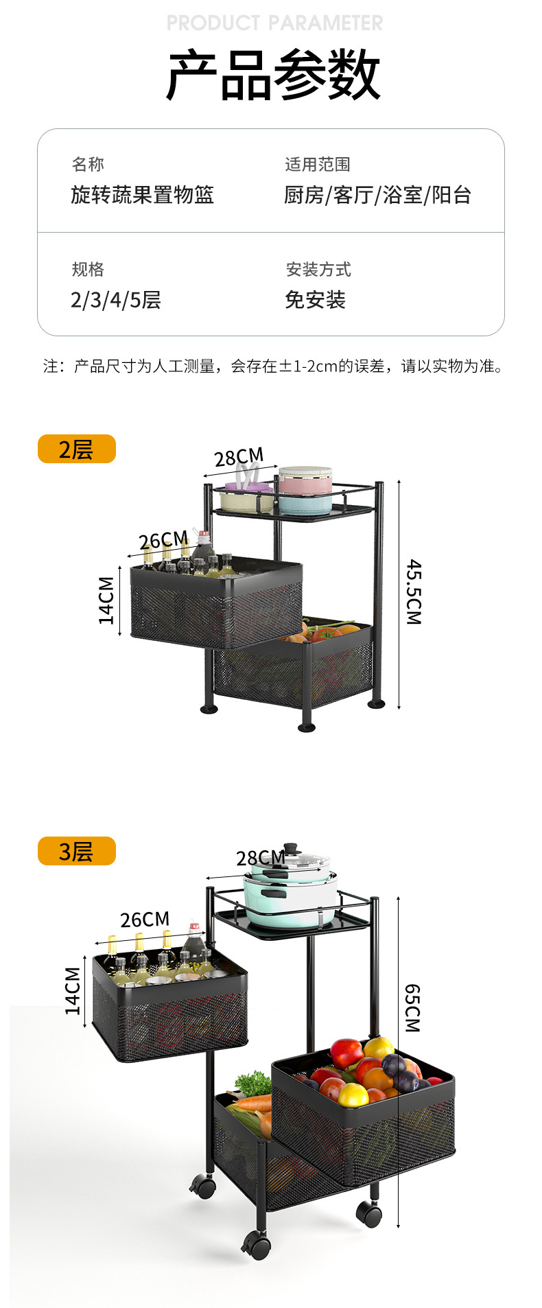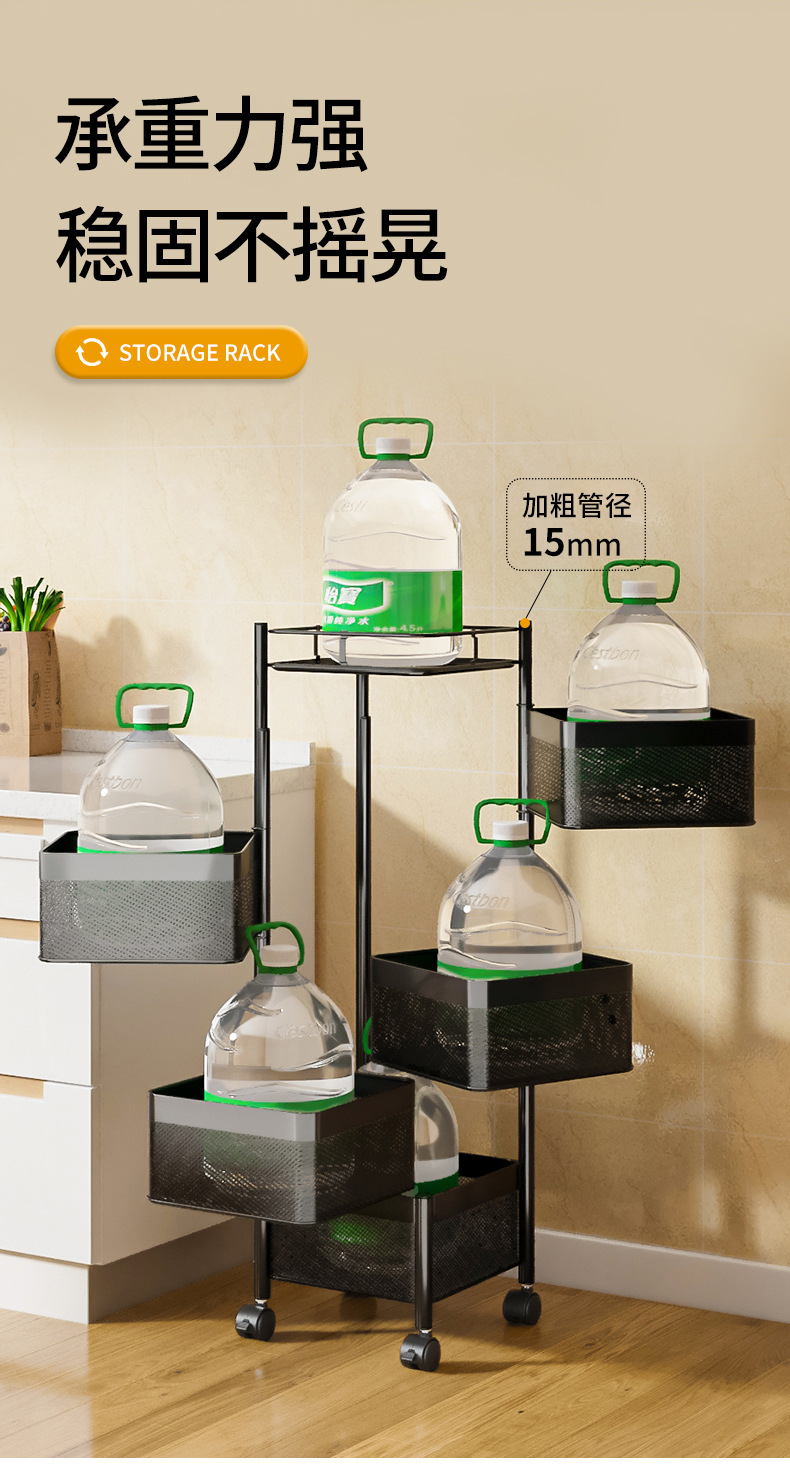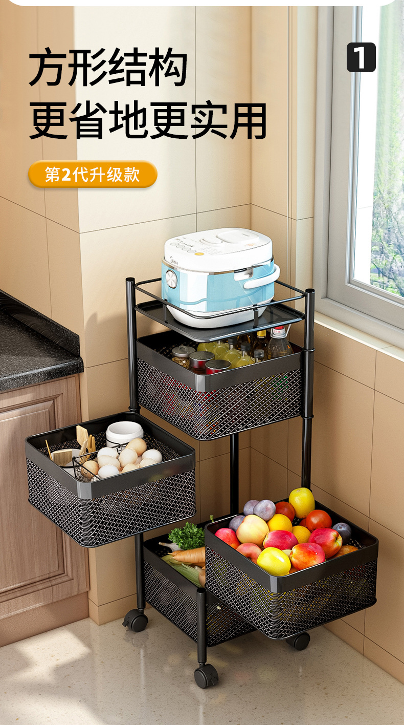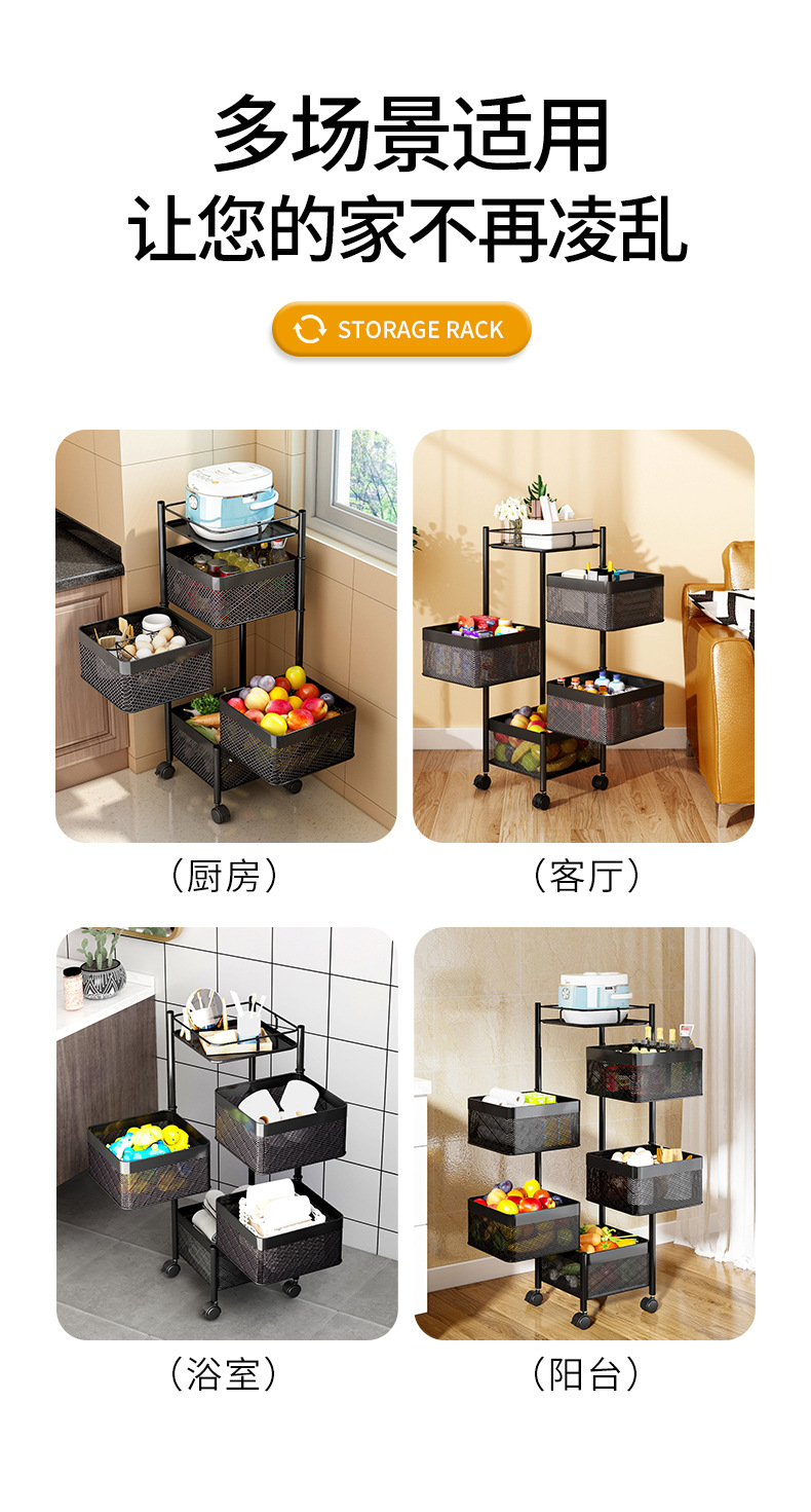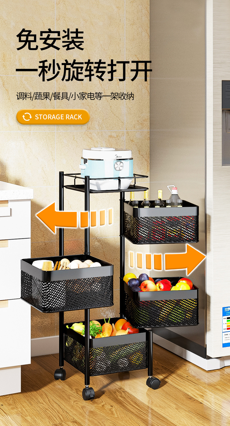 가정용 회전식 스토리지 랙 사각형 다층 바닥에서 천장까지 스낵 설치가 필요없는 휴대용 주방 이동식 스토리지 랙
