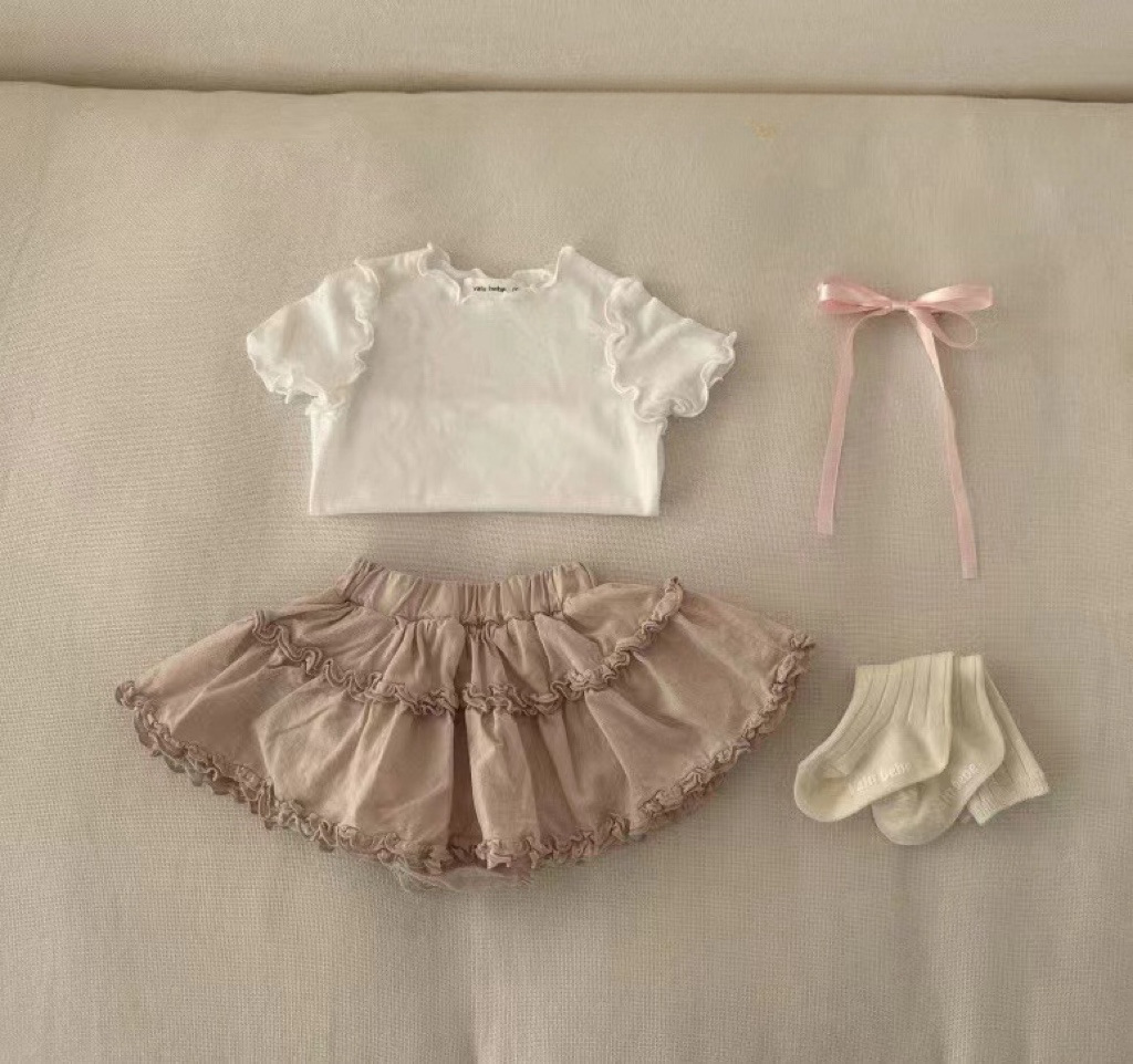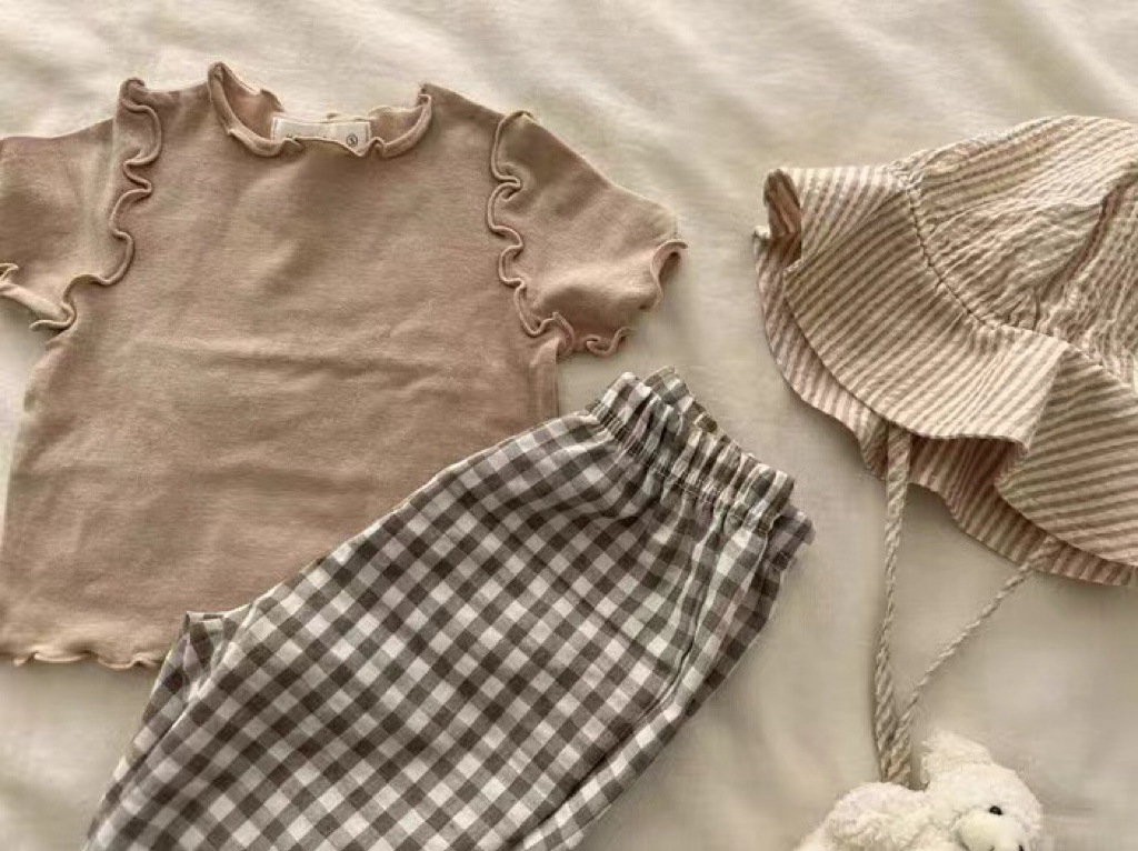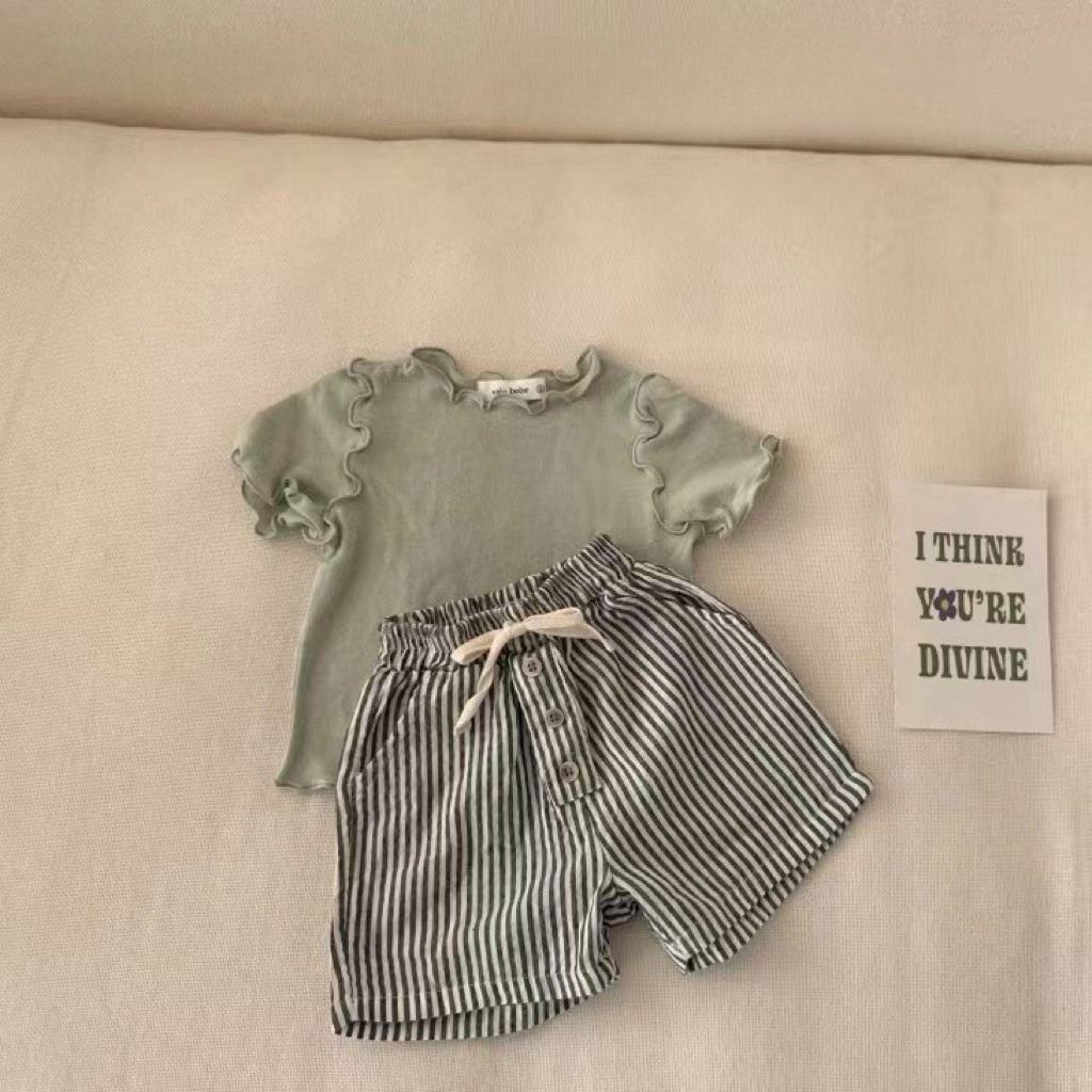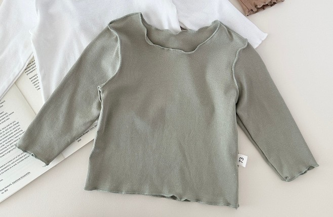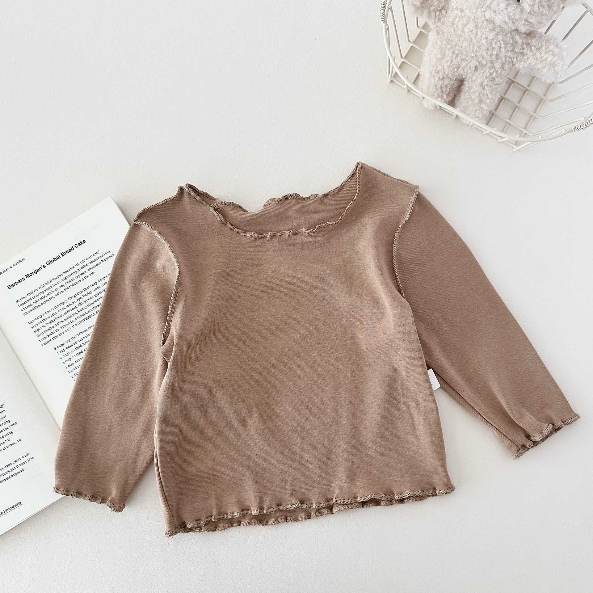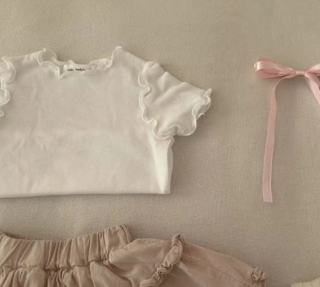 한국식 아기의 얇은 면 부드러운 반팔 티셔츠 여성 아기의 여름 귀 테두리 올 매치베이스 셔츠 솔리드 컬러 탑