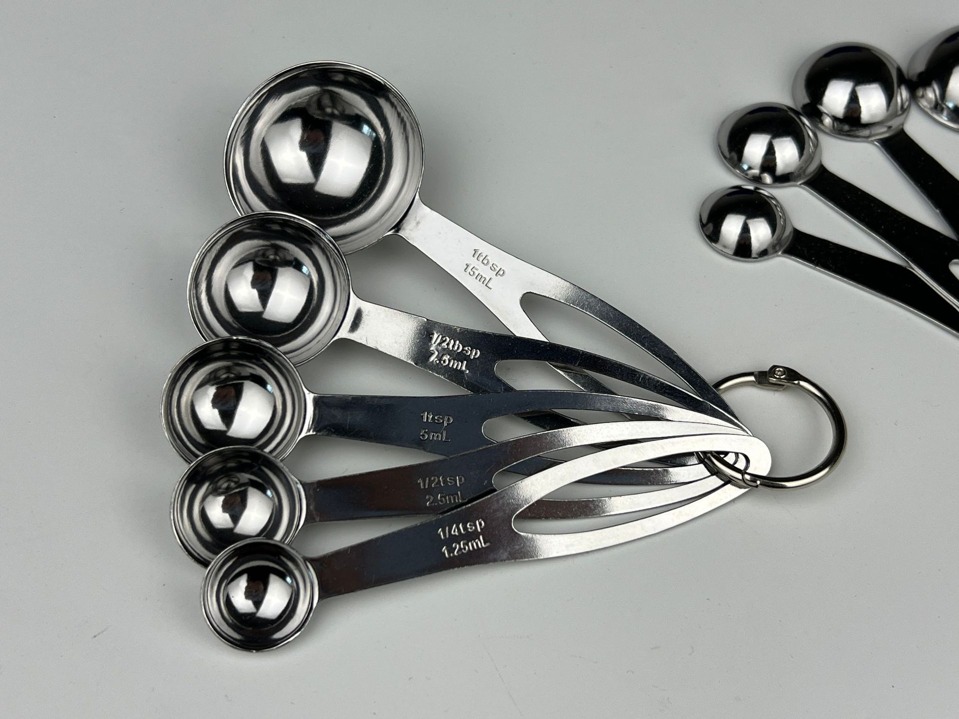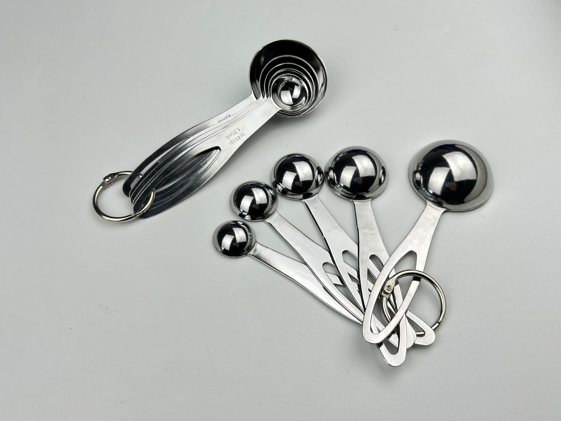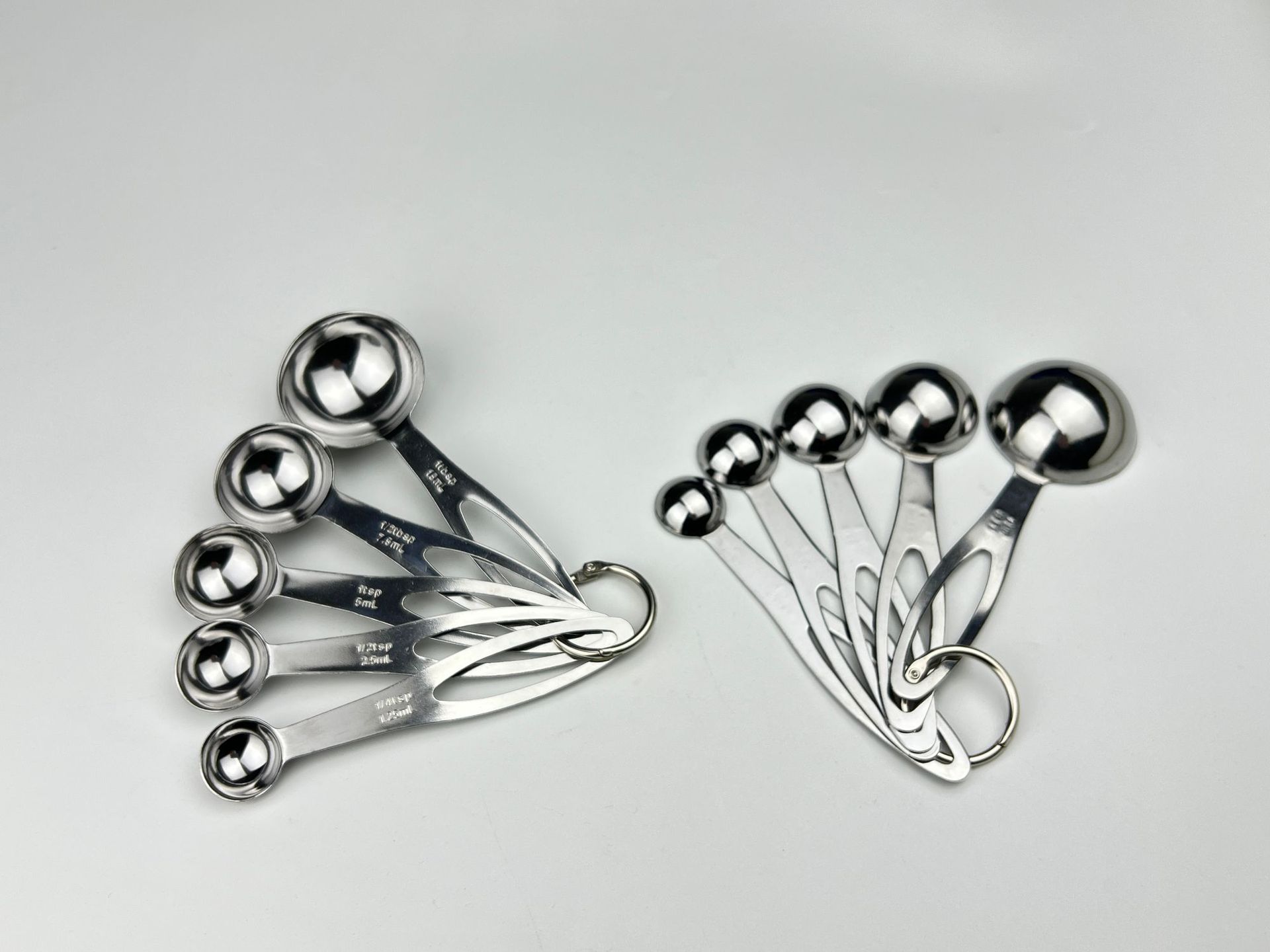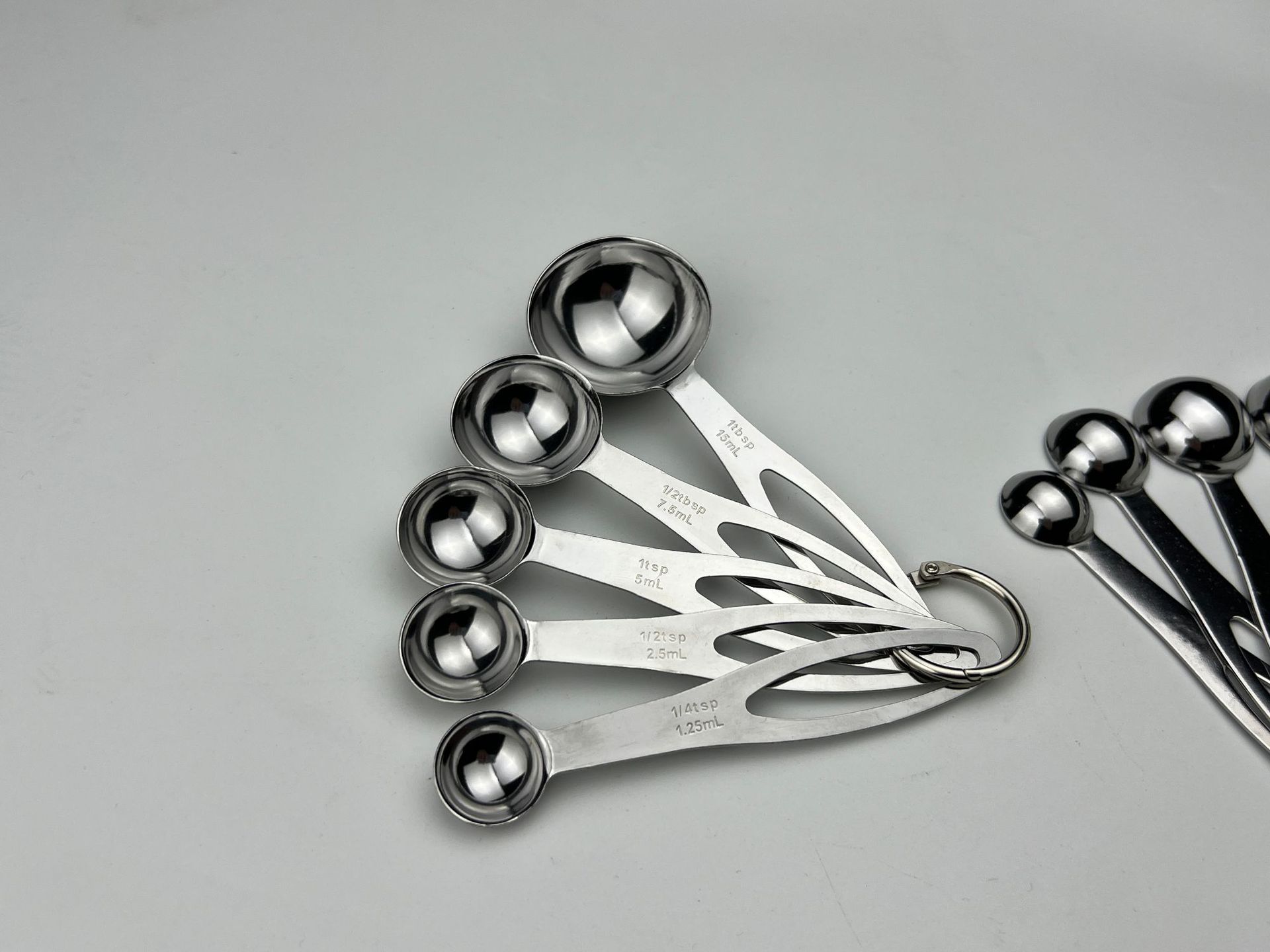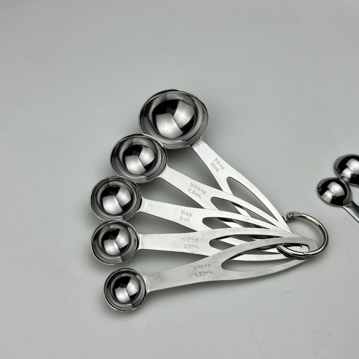 스테인레스 스틸 측정 숟가락 5 개 세트 측정 숟가락 베이킹 세트 도매 주방 재고 중공 손잡이 규모스토어 가기