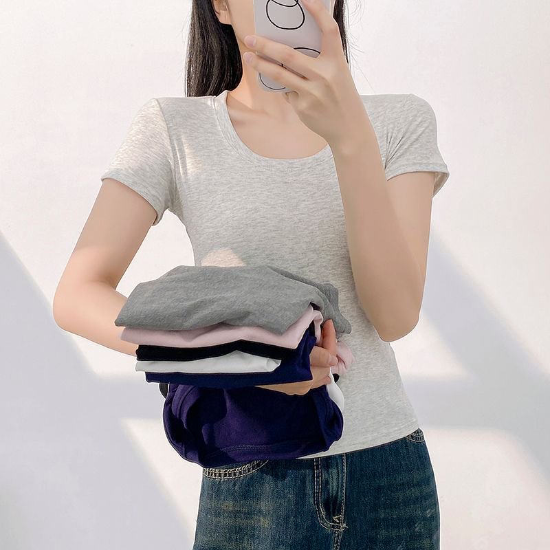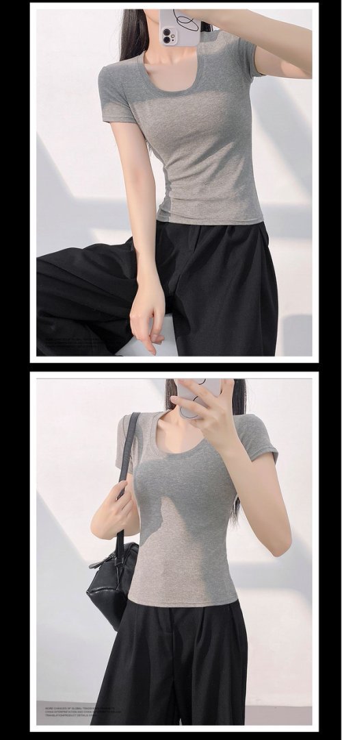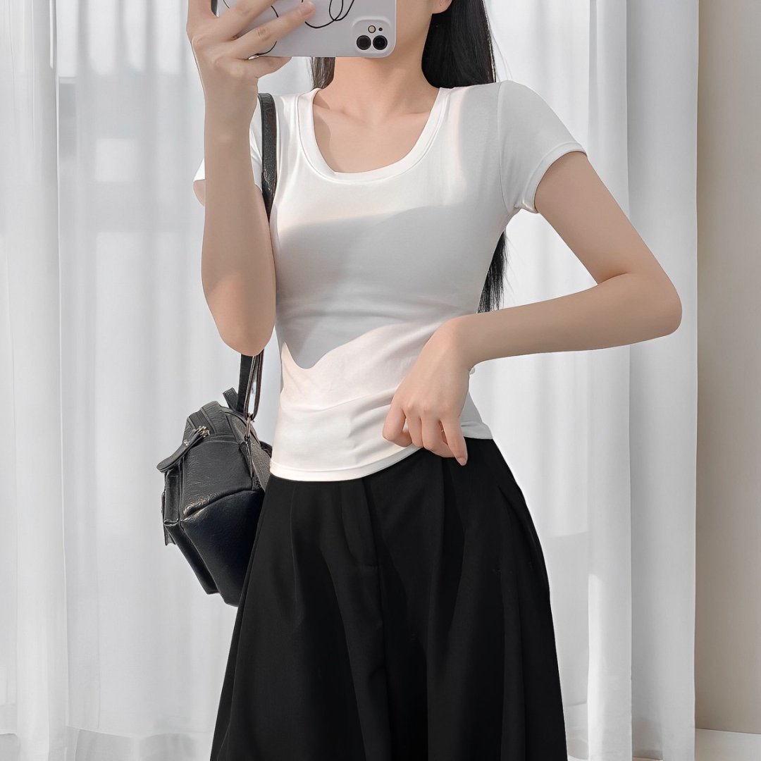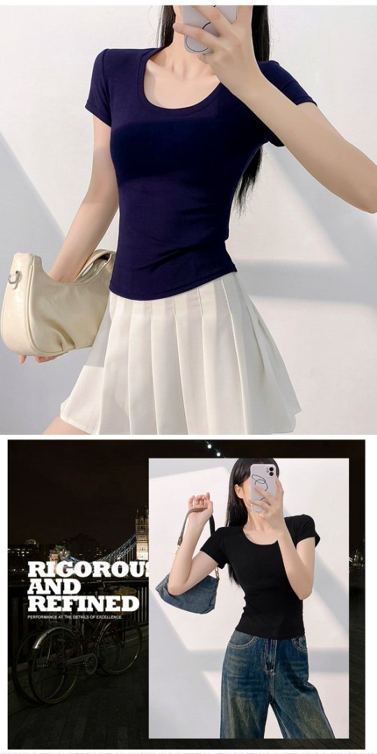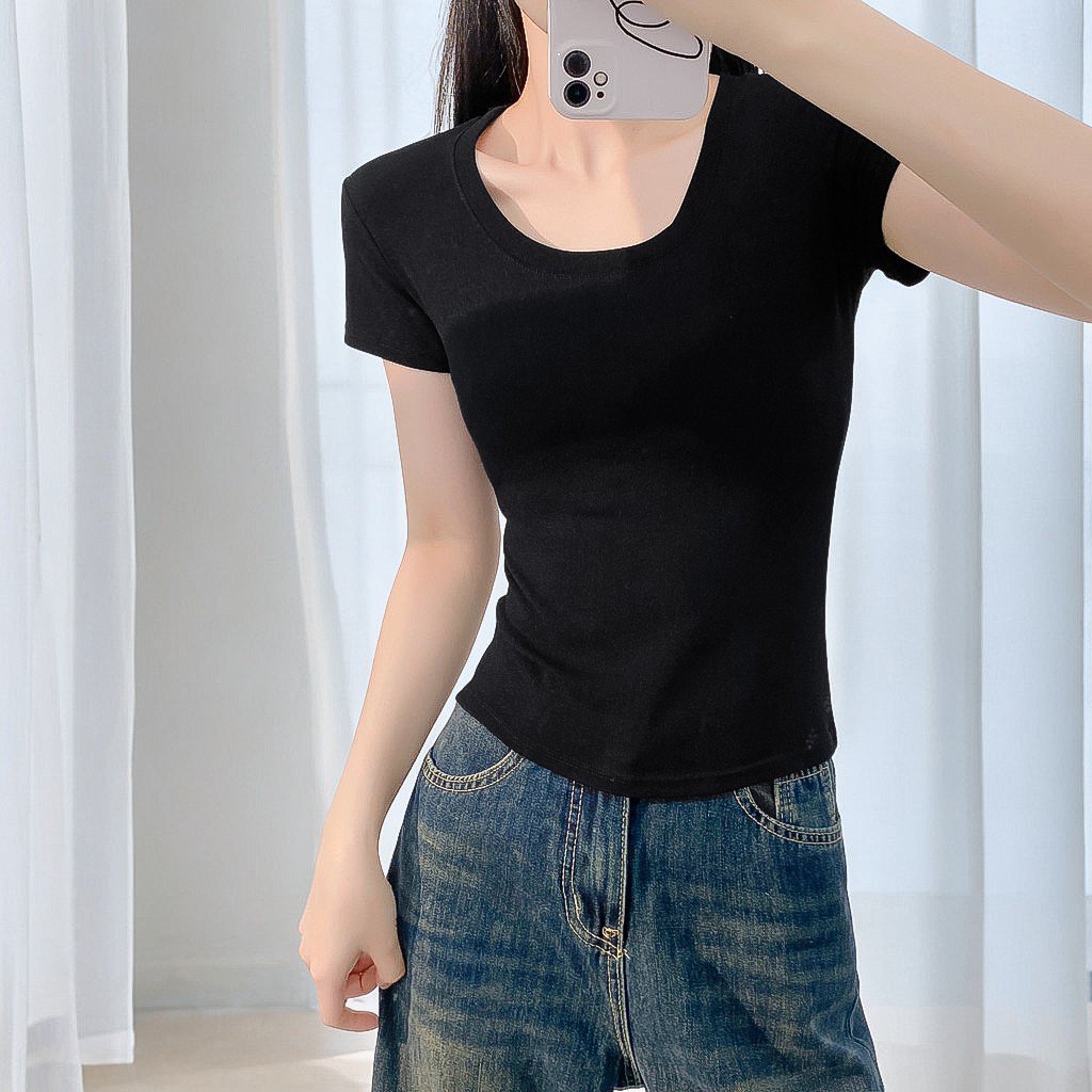 2025 새로운 반팔 티셔츠 여성용 짧은 꽉 끼는 감속기 칼라 작은 셔츠 여름 유행 반팔 흰색베이스 셔츠 탑스토어 가기