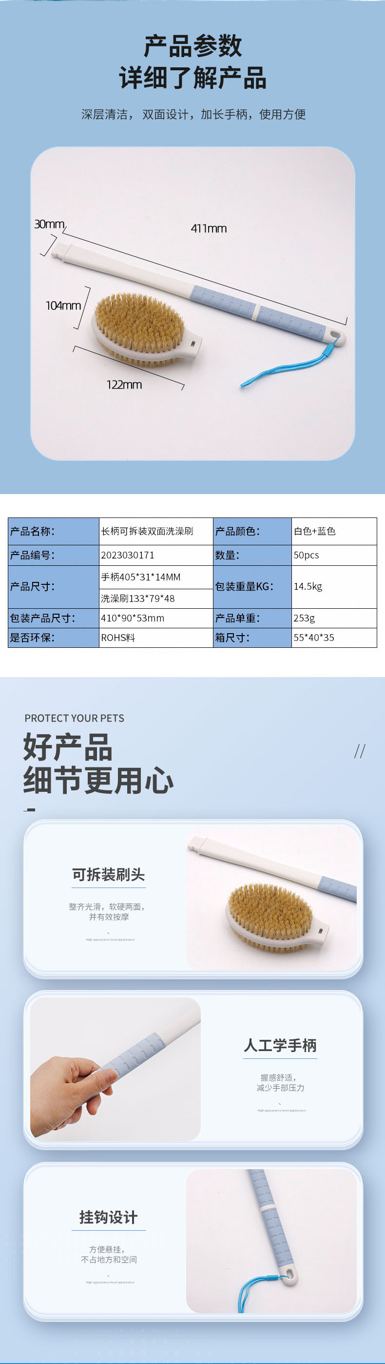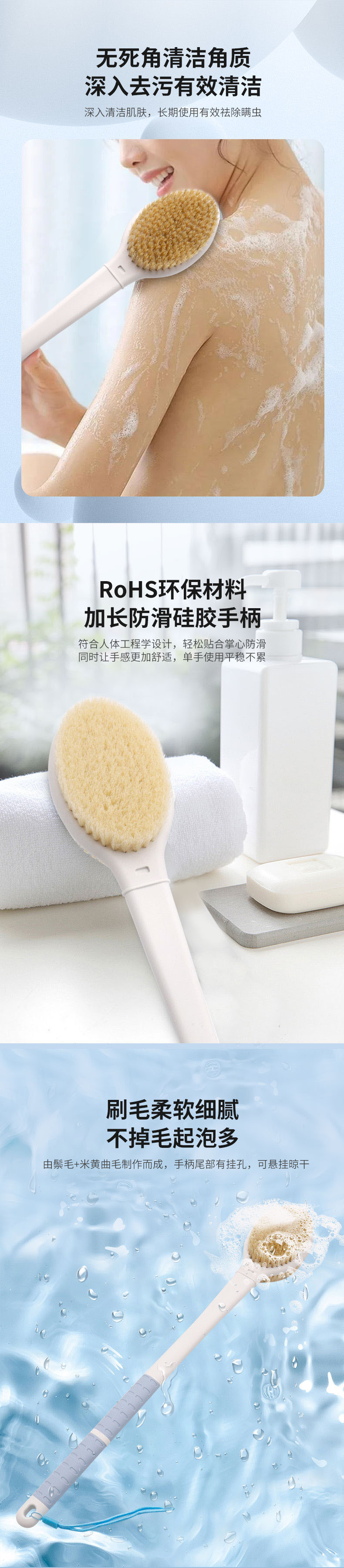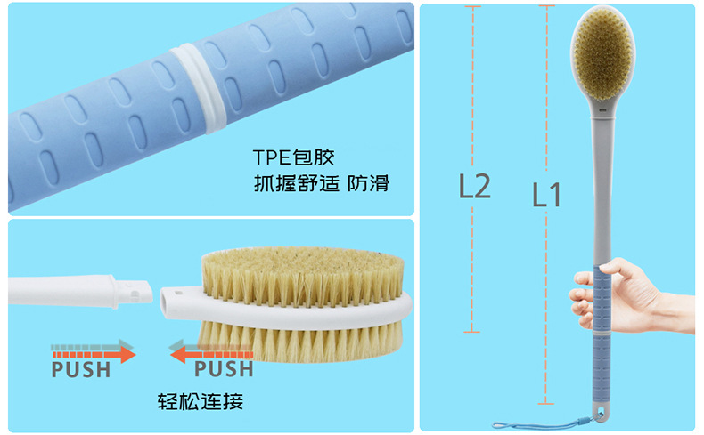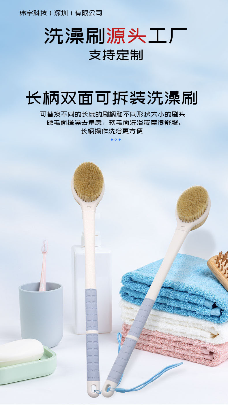 亚马逊热销洗澡刷搓澡沐浴刷可拆卸新款长柄52CM浴室沐浴刷工厂