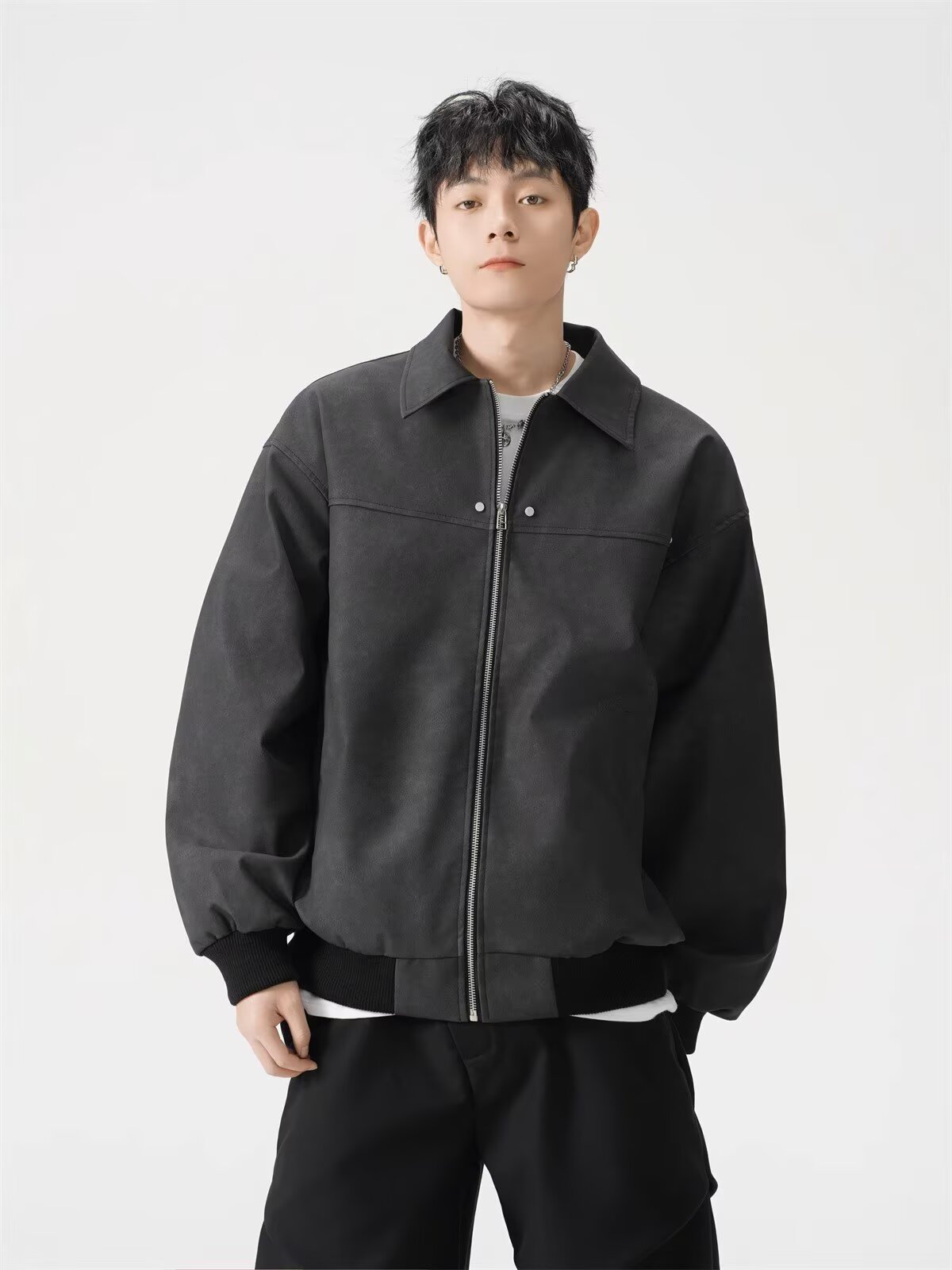 아메리칸 스타일 레트로 PU 가죽 자켓 남자 봄과 가을 느슨한 하이 스트리트 마일러 옷깃 야구 세트 커플 재킷스토어 가기