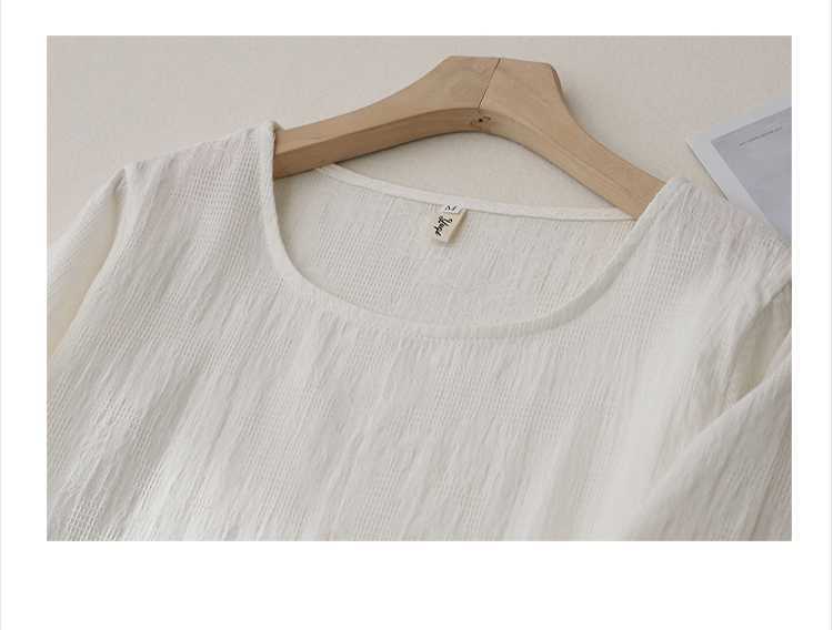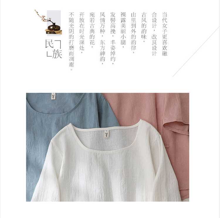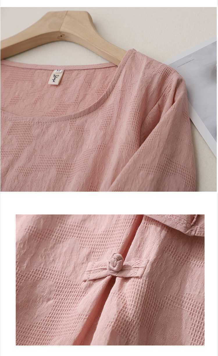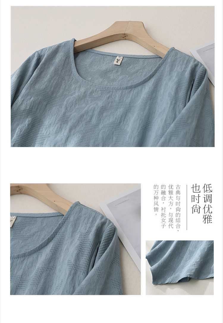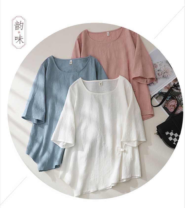 2025 새로운 예술 플러스 사이즈 코튼 리넨 버클 자카드 반팔 티셔츠 여성용 불규칙한 느슨한 슬림 탑스토어 가기