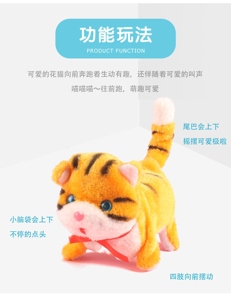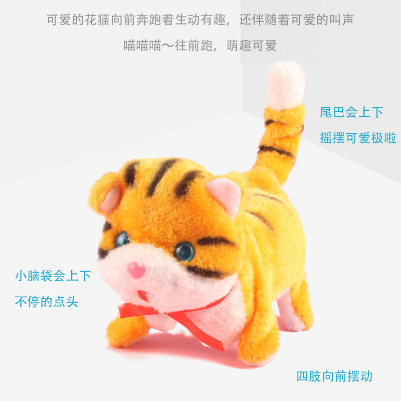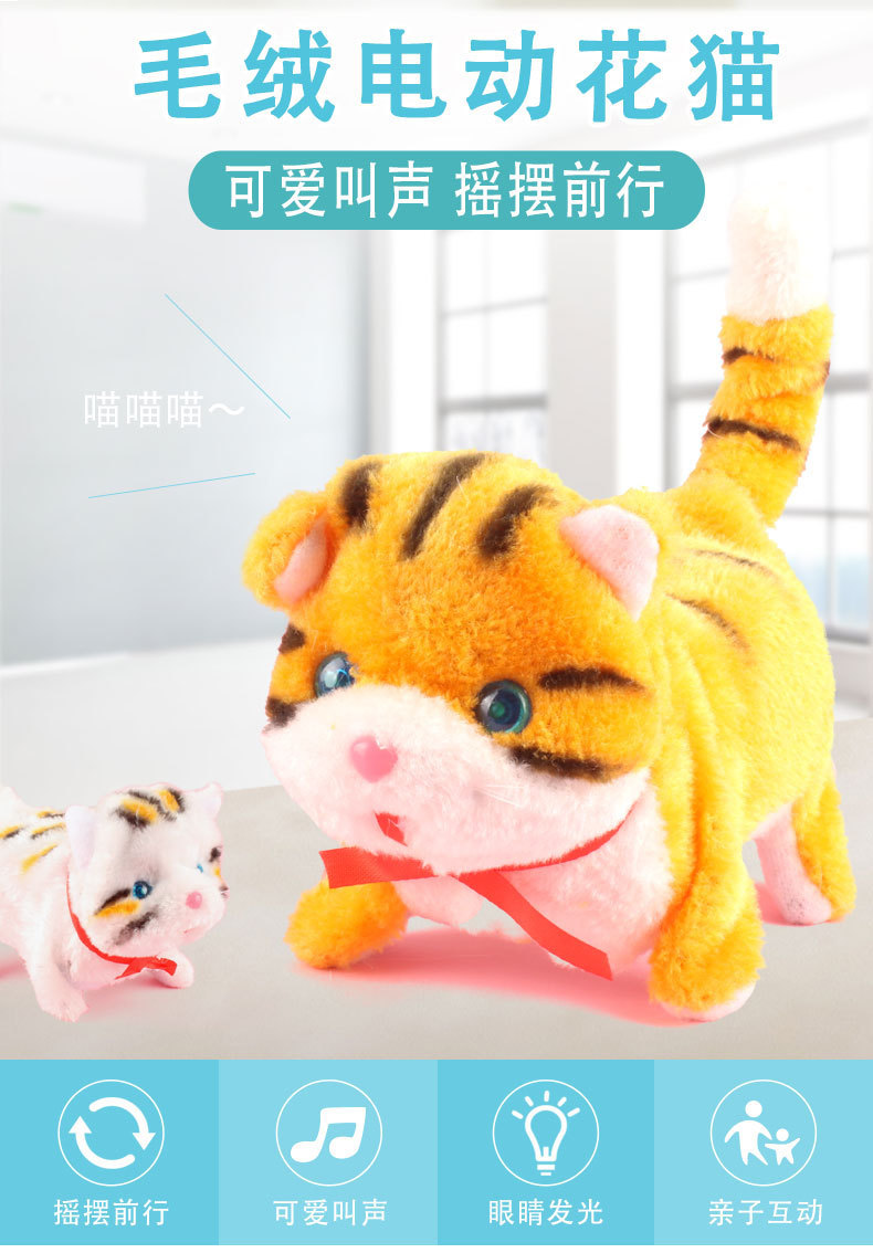 전기 봉제 Xiaohua 고양이는 눈 밝은 반점 고양이 앞으로 뒤로 고양이 마구간 어린이 작은 장난감 도매라고 부릅니다.스토어 가기