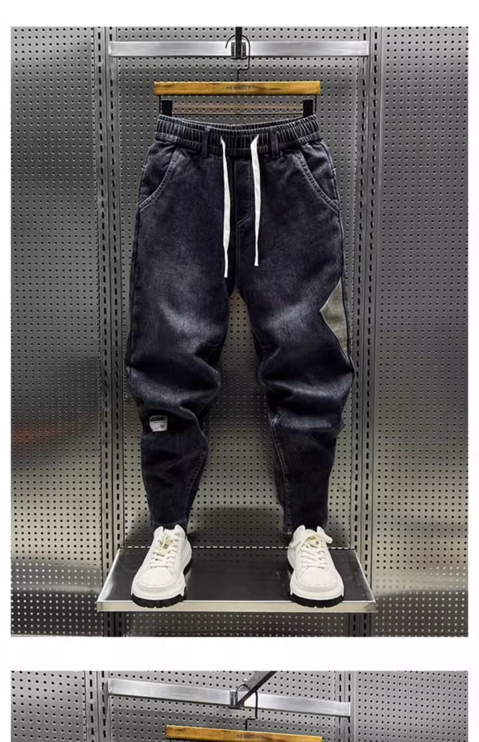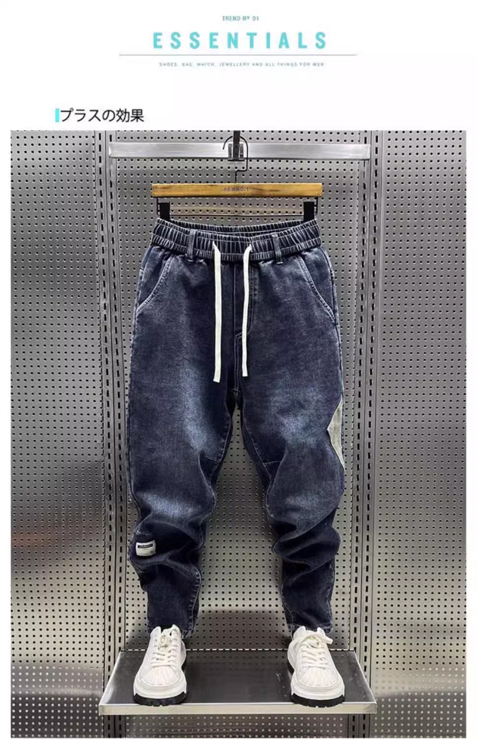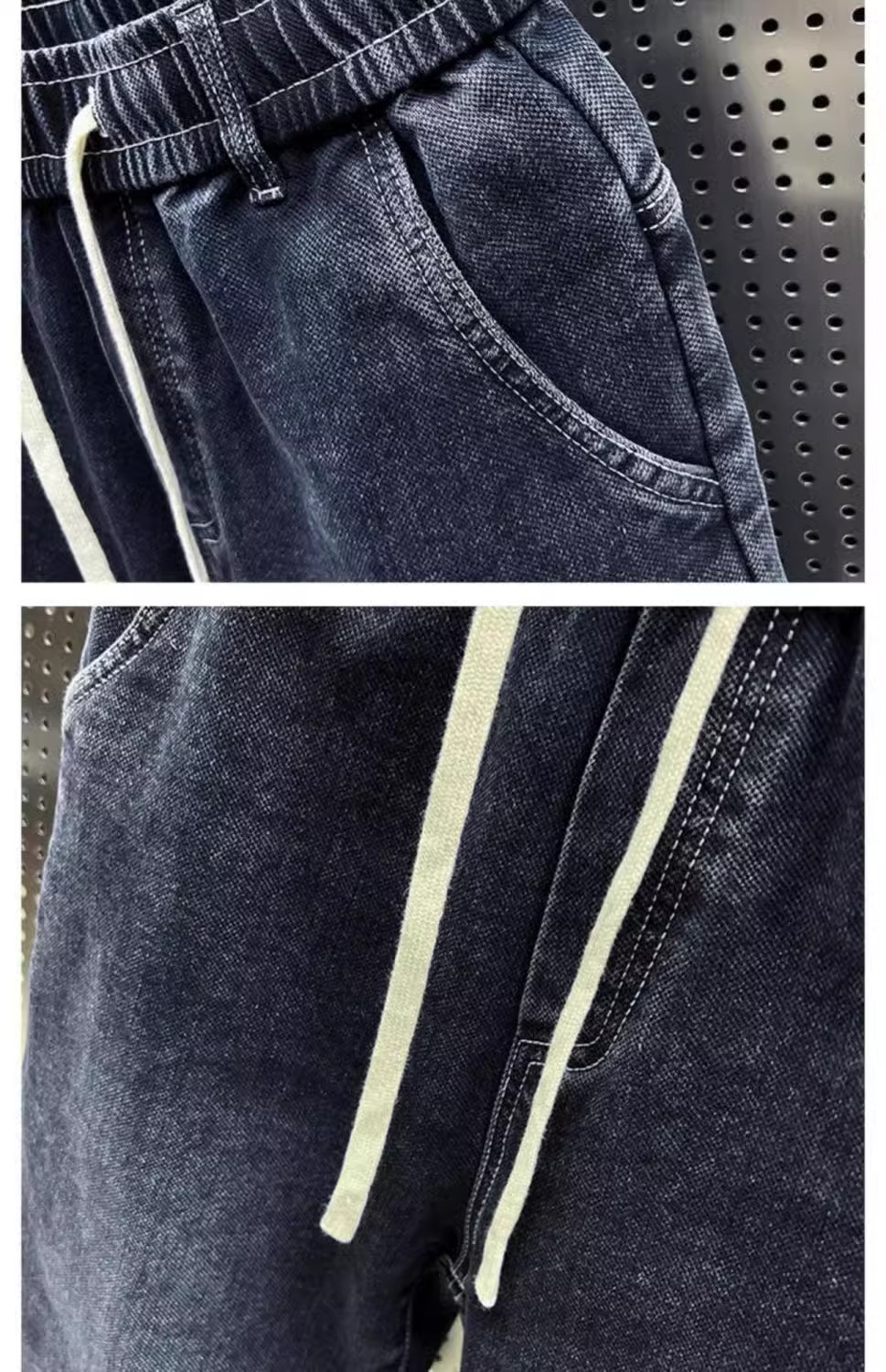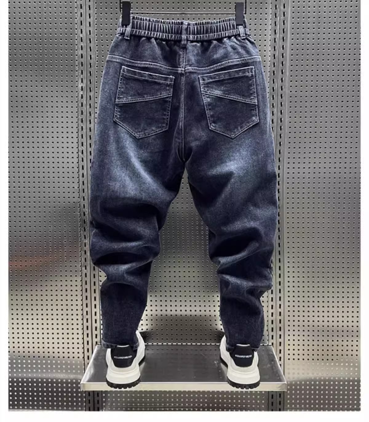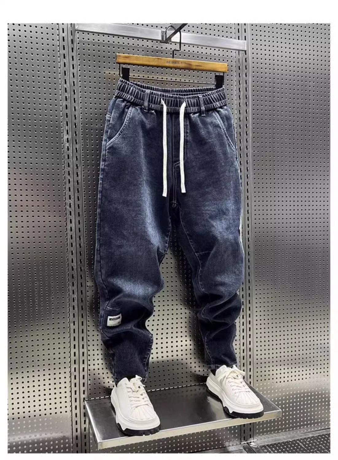 청바지 남성 트렌디 브랜드 탄성 허리 끈 스티칭 빈티지 구식 오버 사이즈 스트레치 슬리밍 하렘 바지스토어 가기