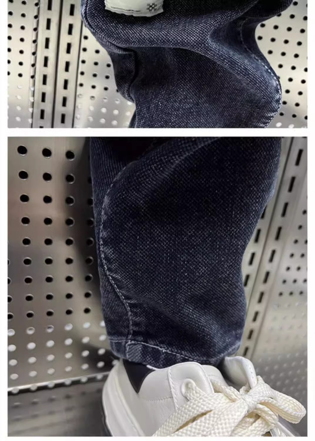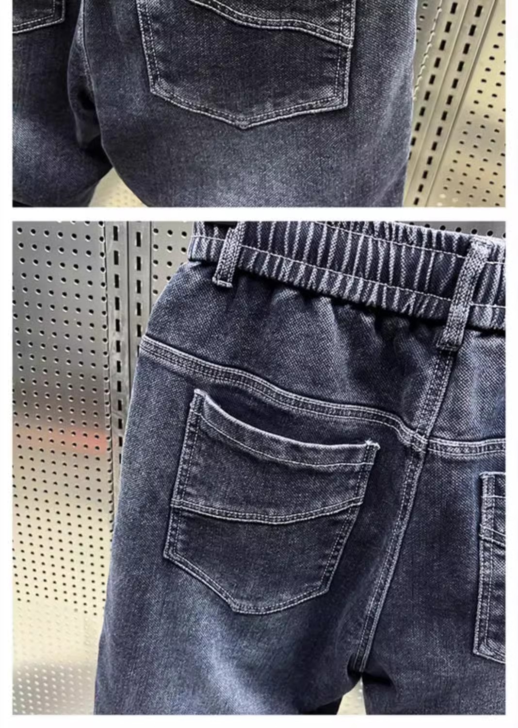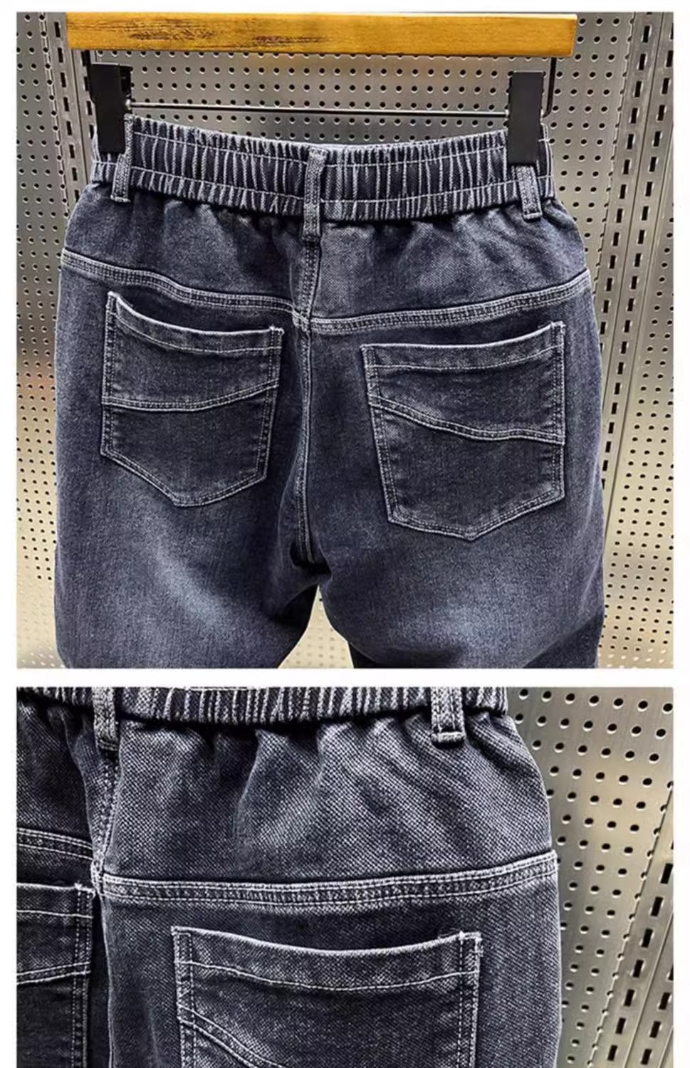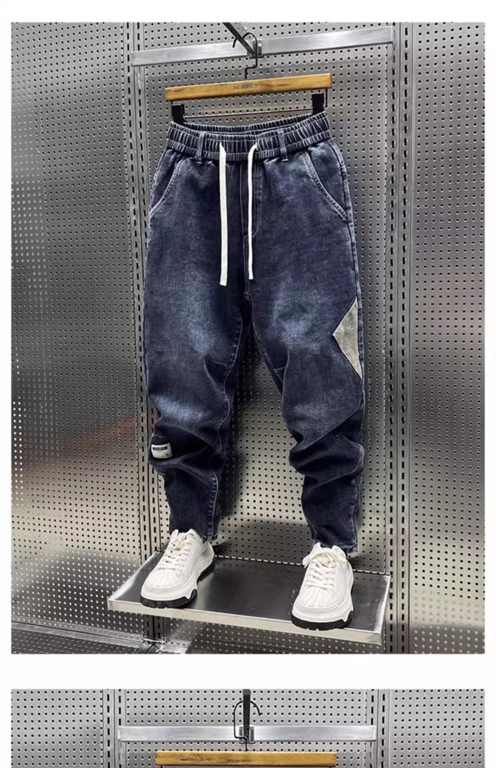 청바지 남성 트렌디 브랜드 탄성 허리 끈 스티칭 빈티지 구식 오버 사이즈 스트레치 슬리밍 하렘 바지스토어 가기