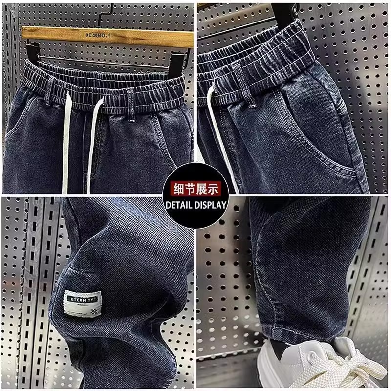 청바지 남성 트렌디 브랜드 탄성 허리 끈 스티칭 빈티지 구식 오버 사이즈 스트레치 슬리밍 하렘 바지