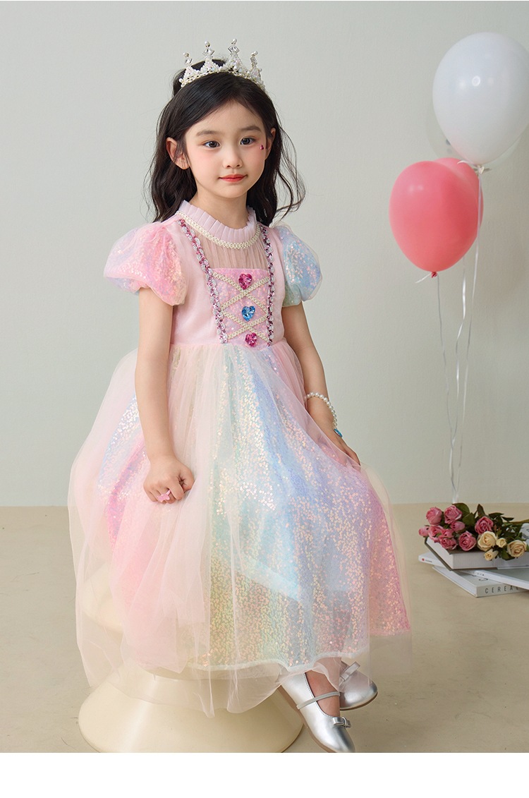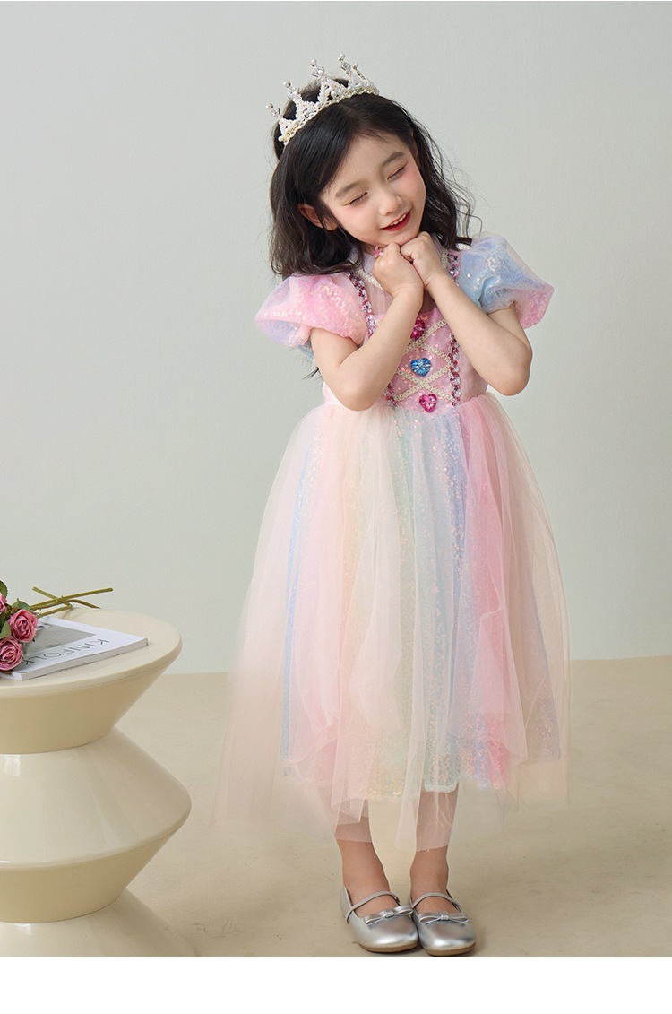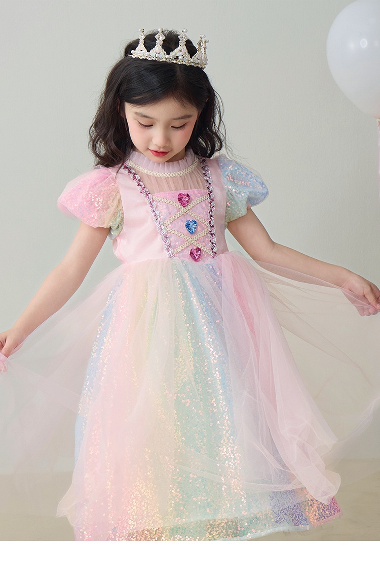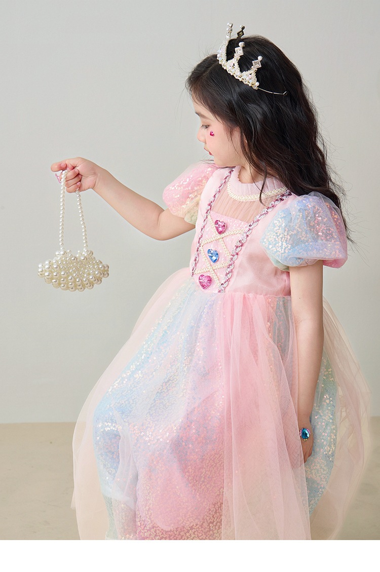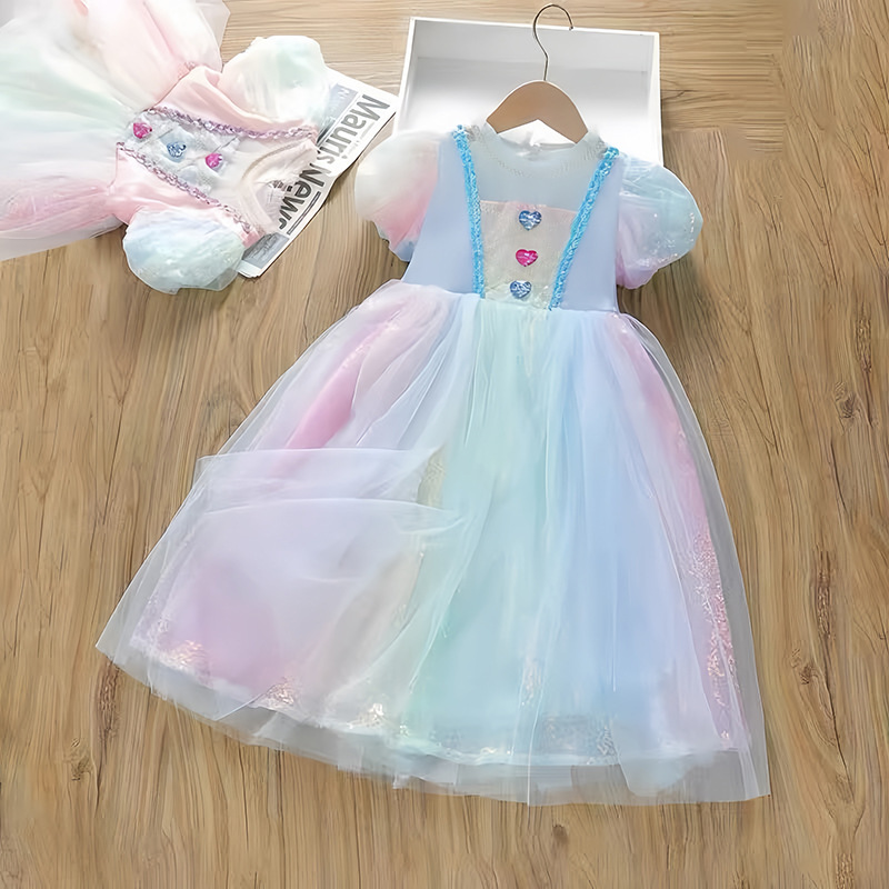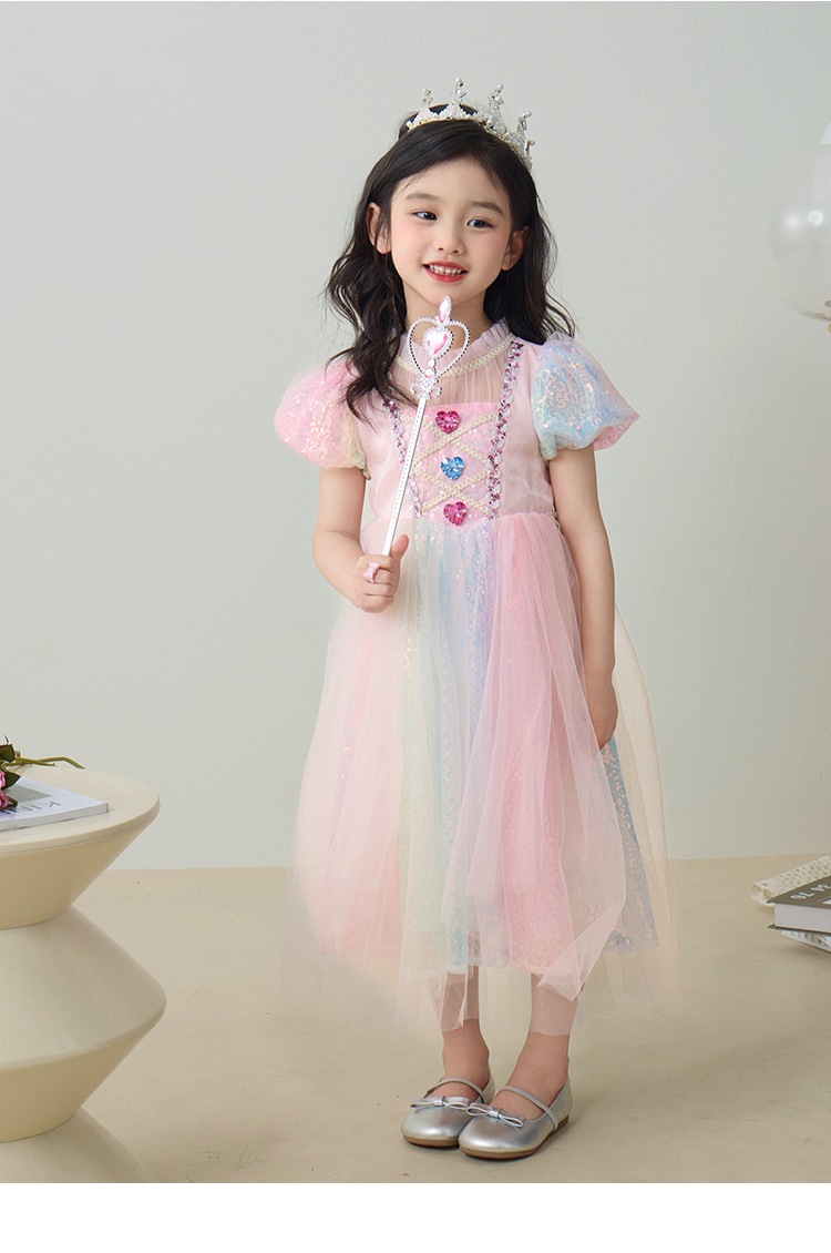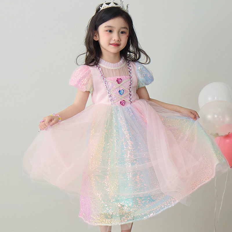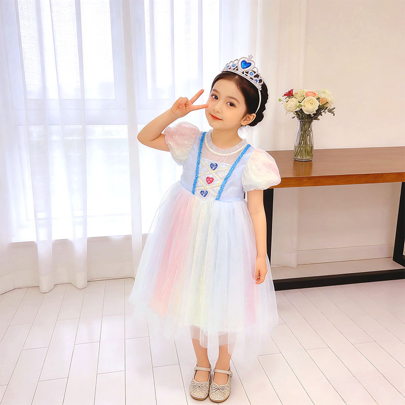 소녀 공주 엘사 원피스 여름 원피스 색상 시퀀스 외국식 어린이 생일 원피스 어린이 원피스 원피스스토어 가기