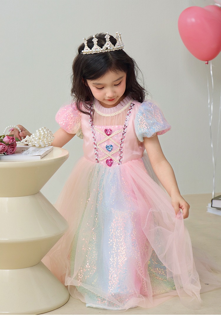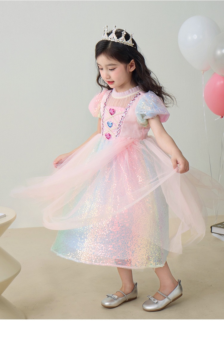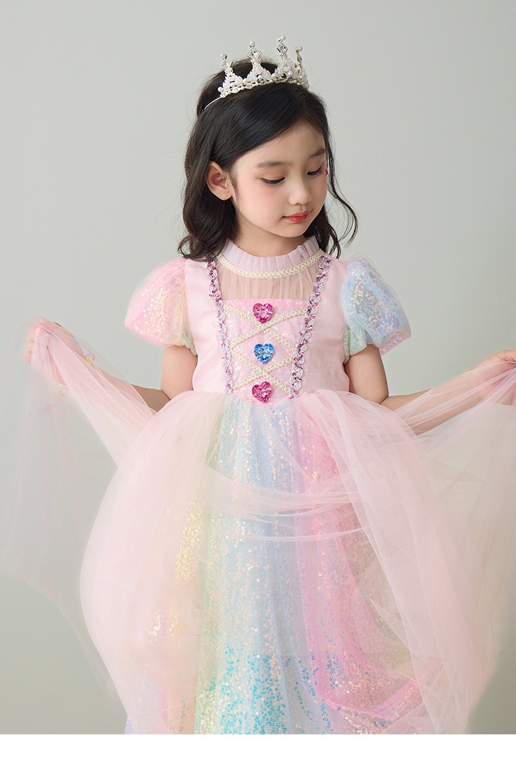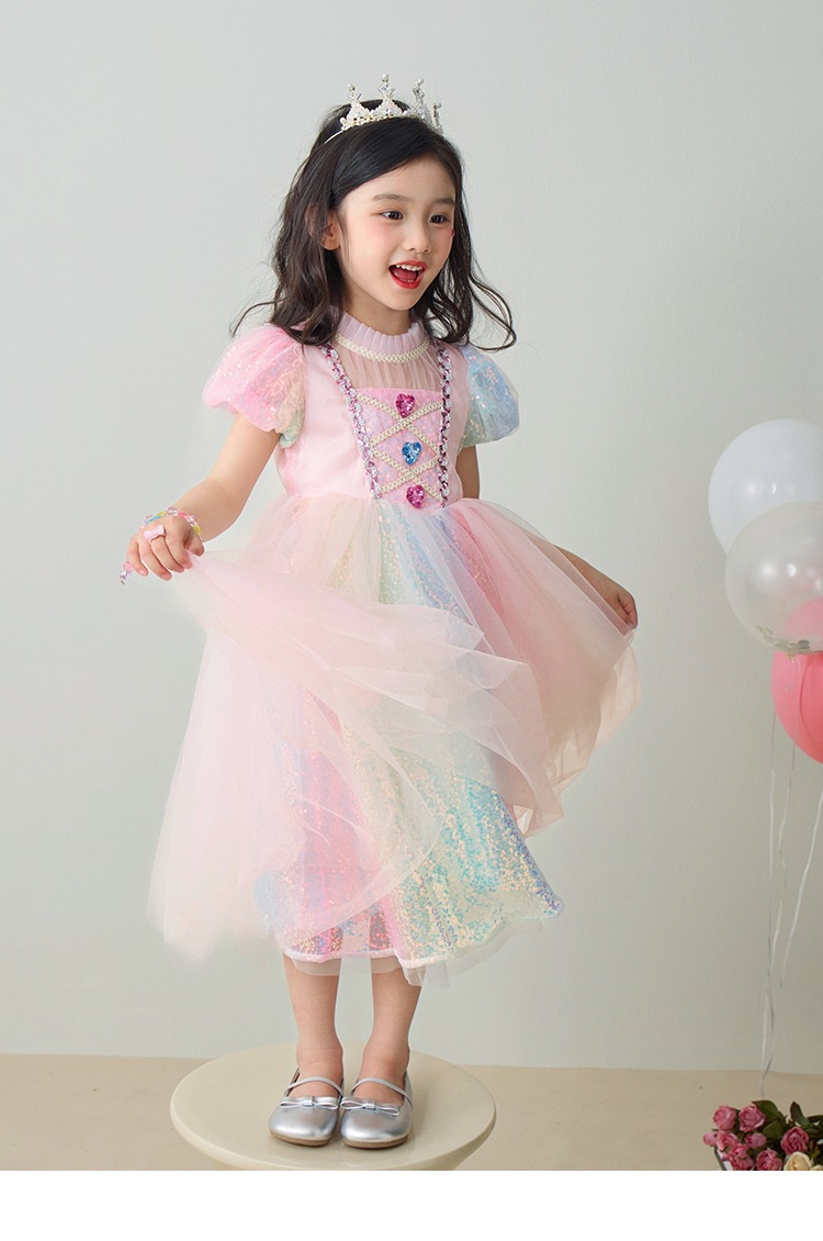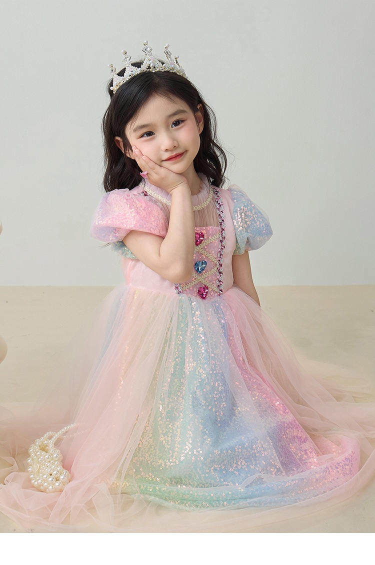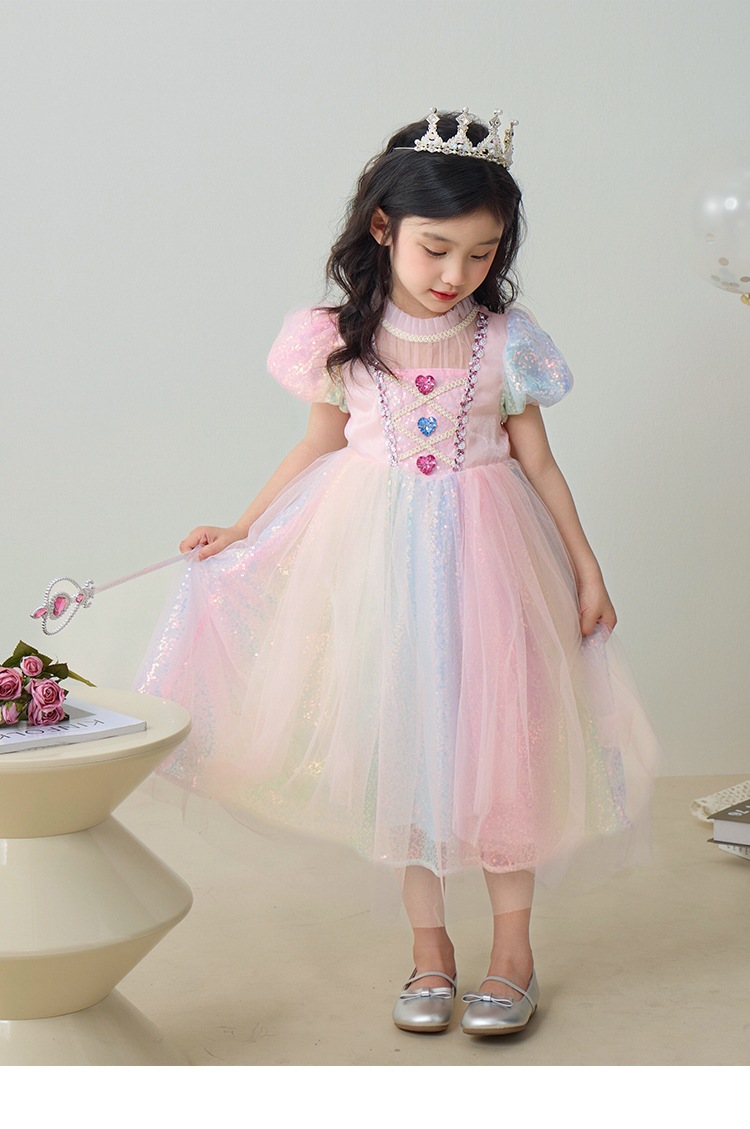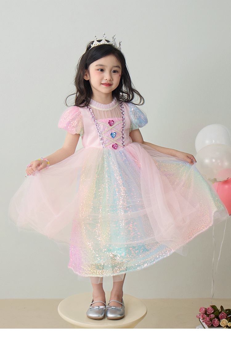 소녀 공주 엘사 원피스 여름 원피스 색상 시퀀스 외국식 어린이 생일 원피스 어린이 원피스 원피스스토어 가기