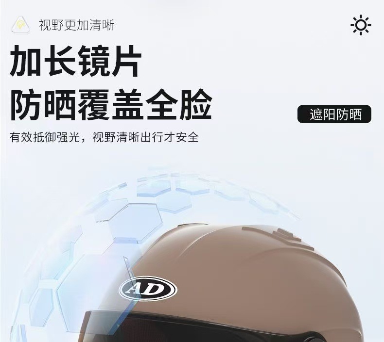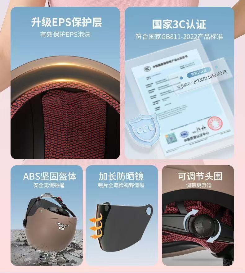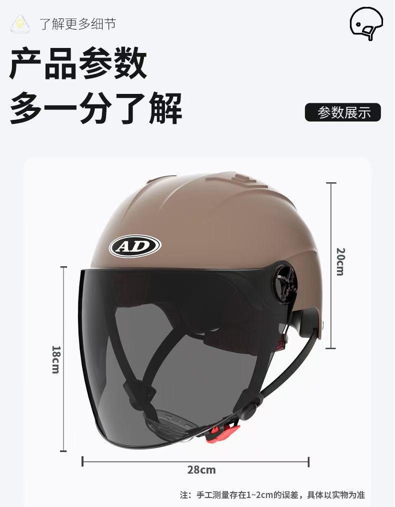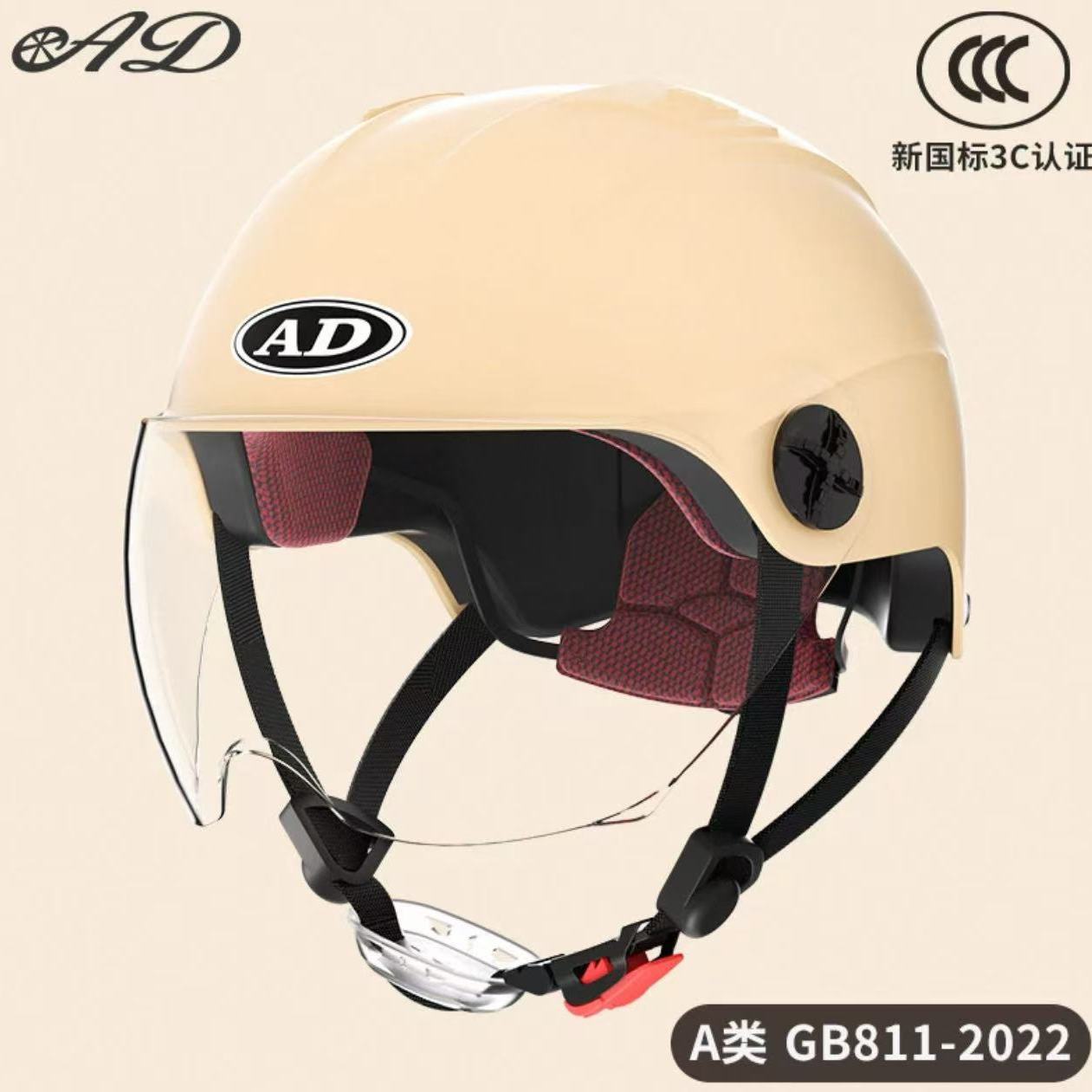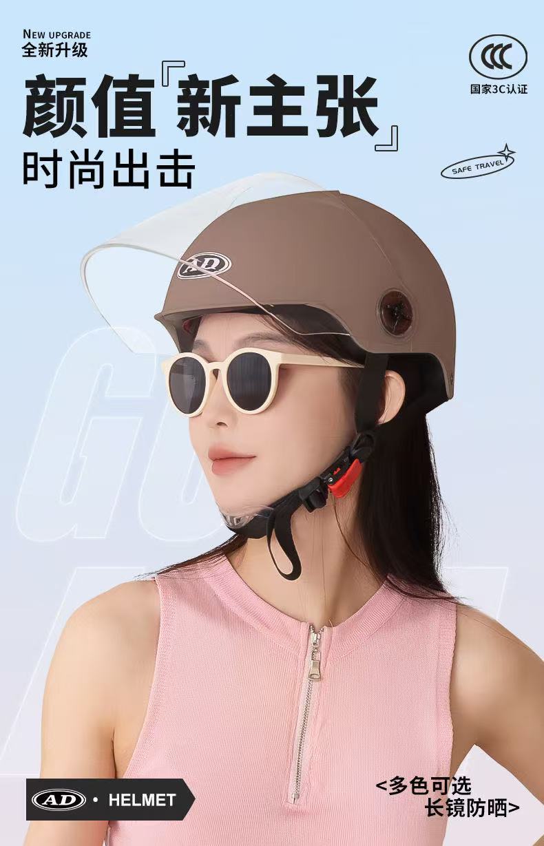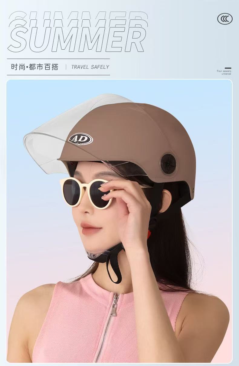 AD 전기 오토바이 헬멧 남녀 여름용 3C 인증 하프 헬멧 전기차 안전모 자전거 타기용 자외선 차단