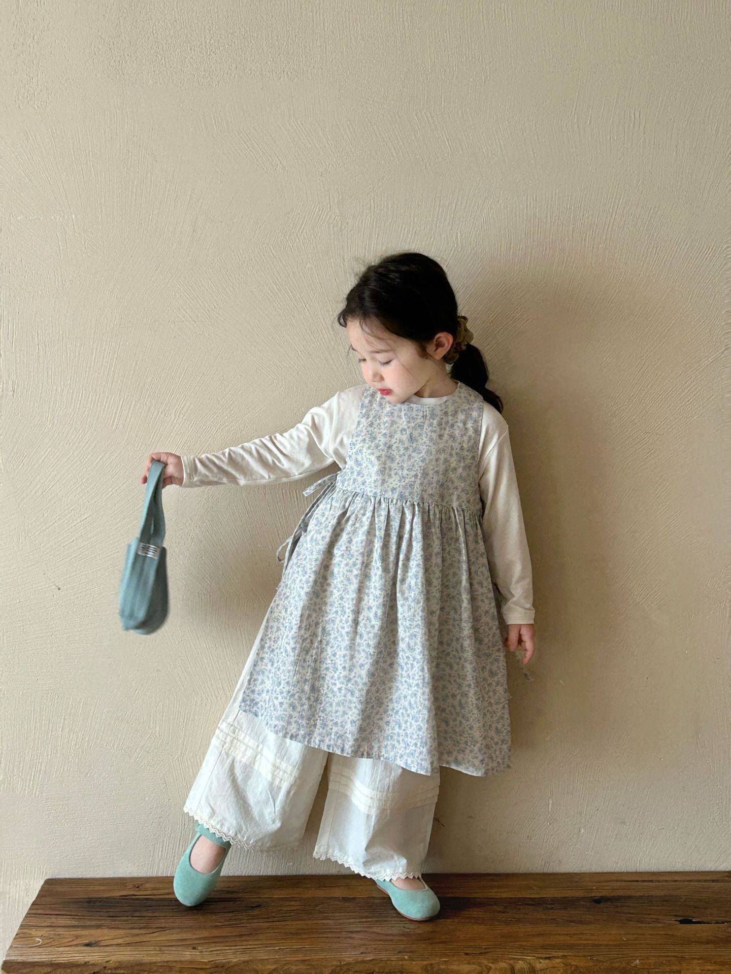 봄 2025 년 새 아동복 한국 스타일 아동복 소녀의 신선한 스타일 꽃 면봉 스커트 오버랩 YYYDS스토어 가기