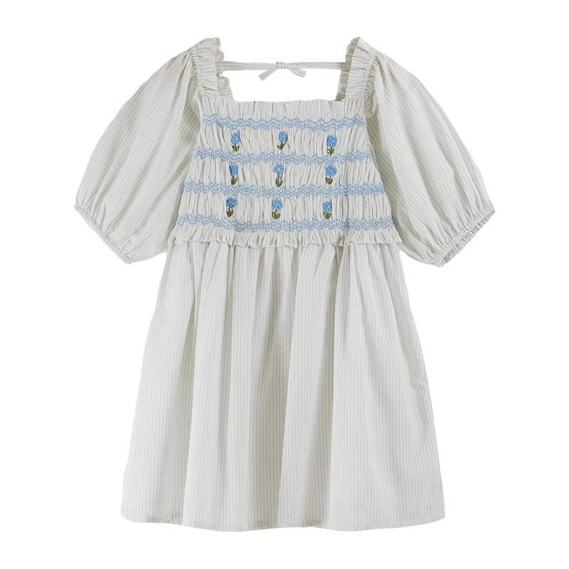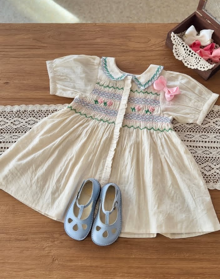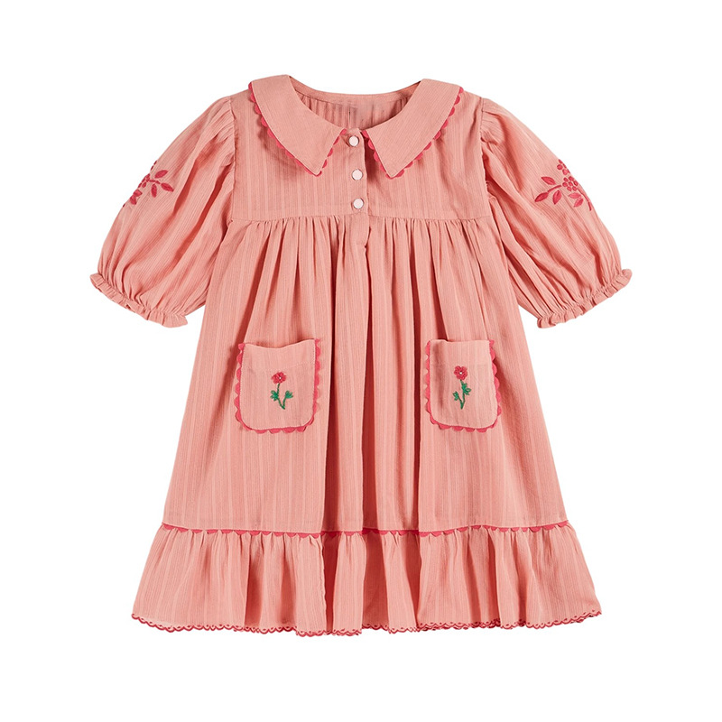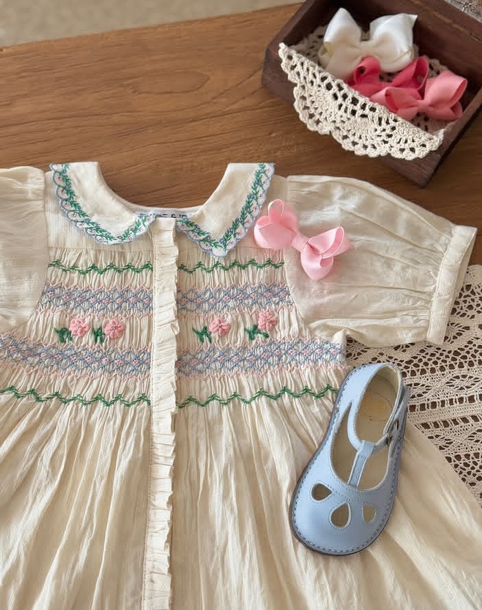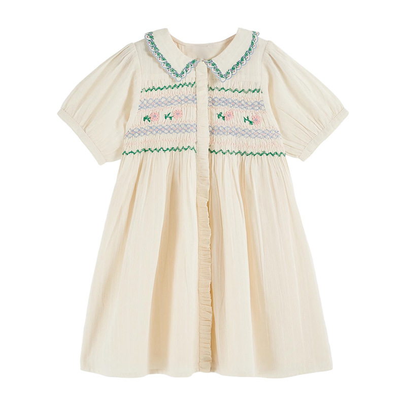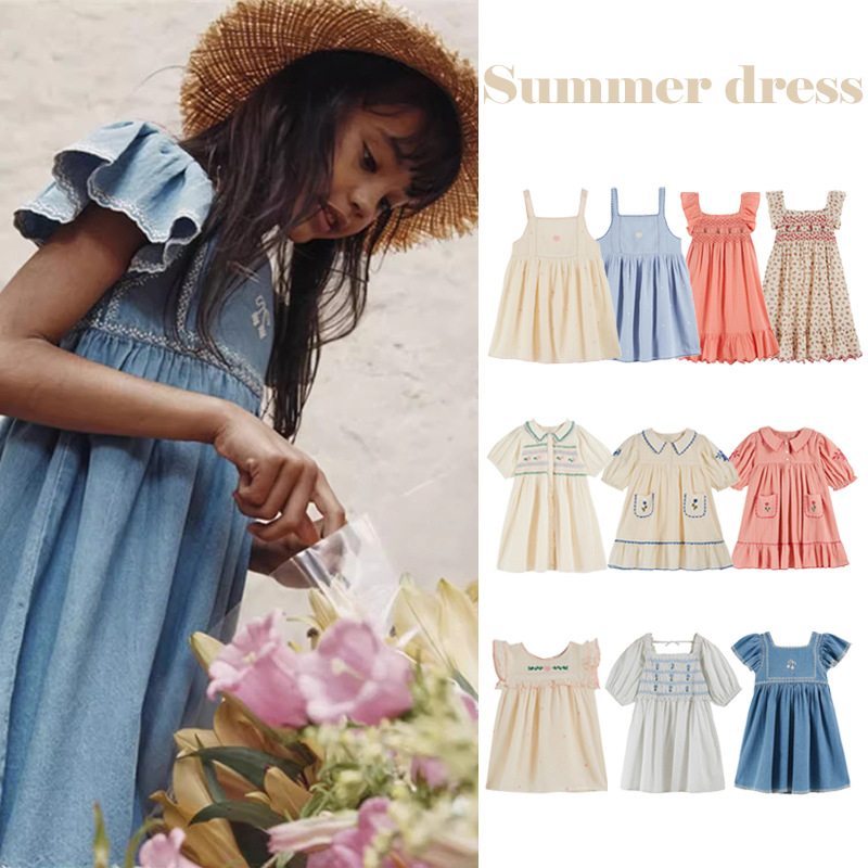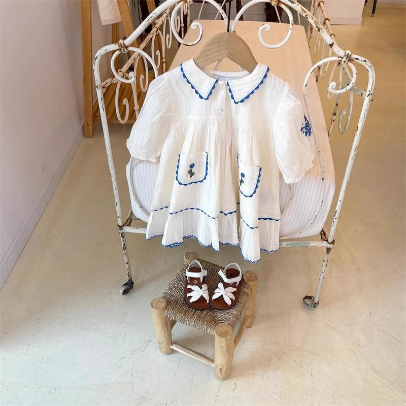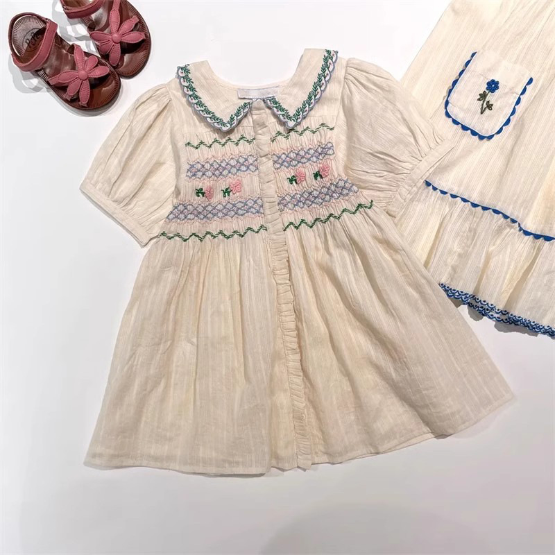 어린이 원피스 2025 여름 EM 소녀 목가적 인 스타일 Gaoding 중공업 자수 꽃 옷깃 공주 원피스스토어 가기