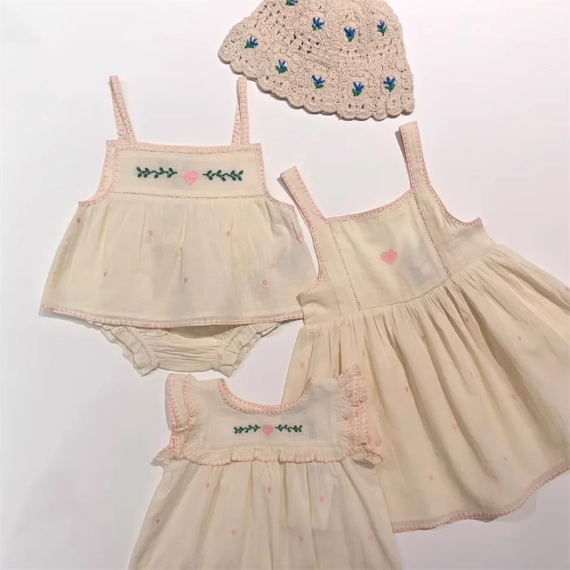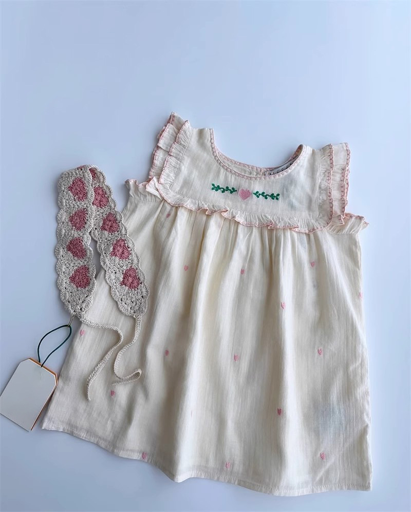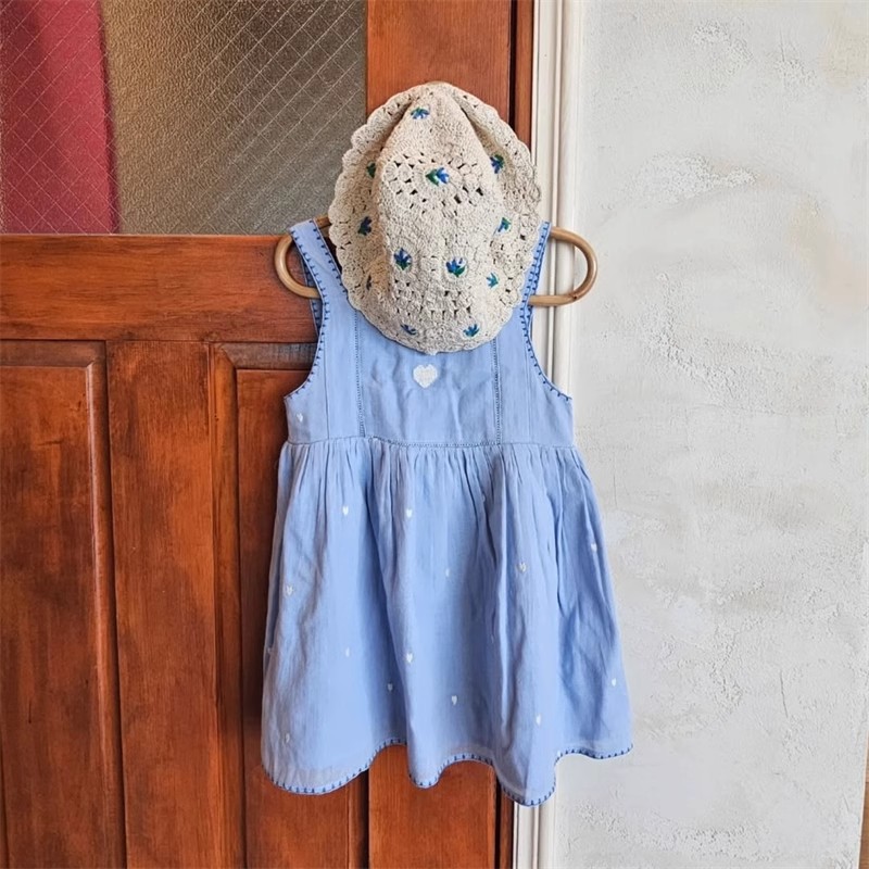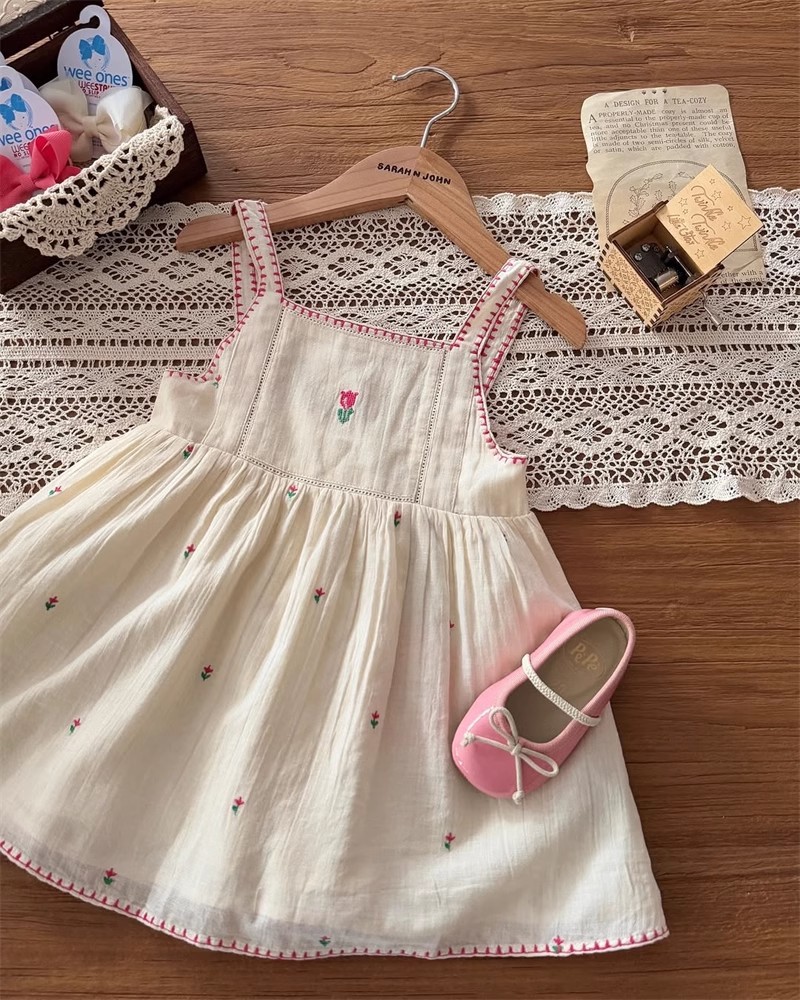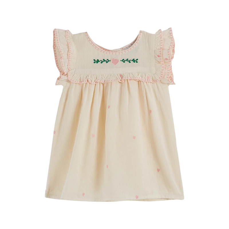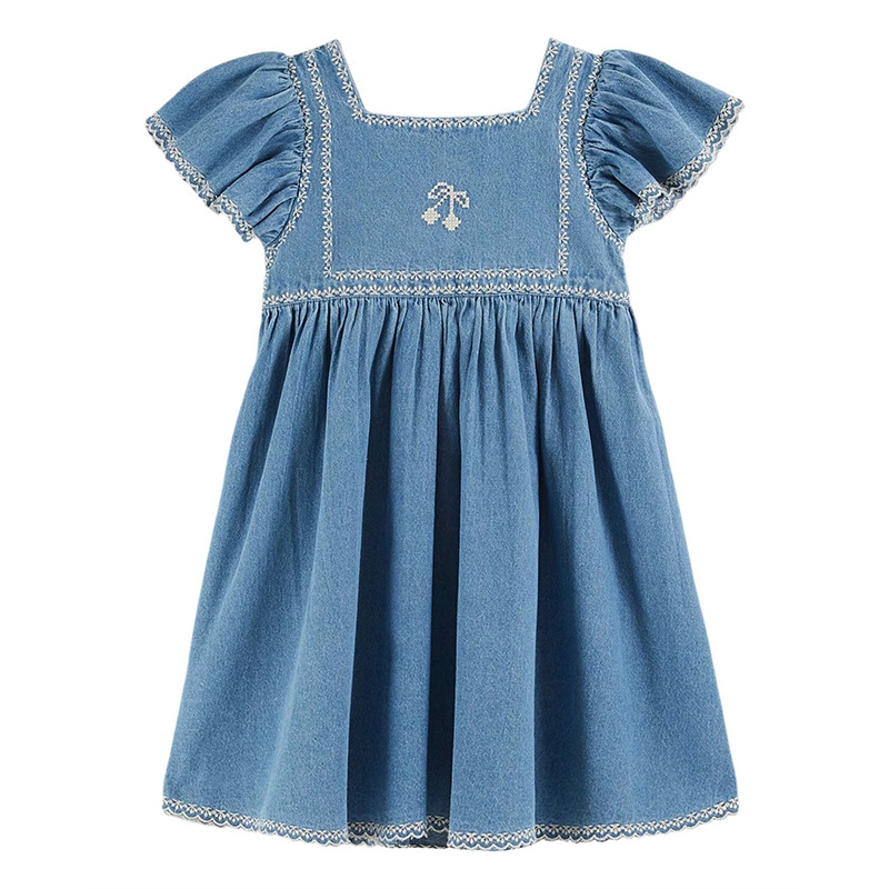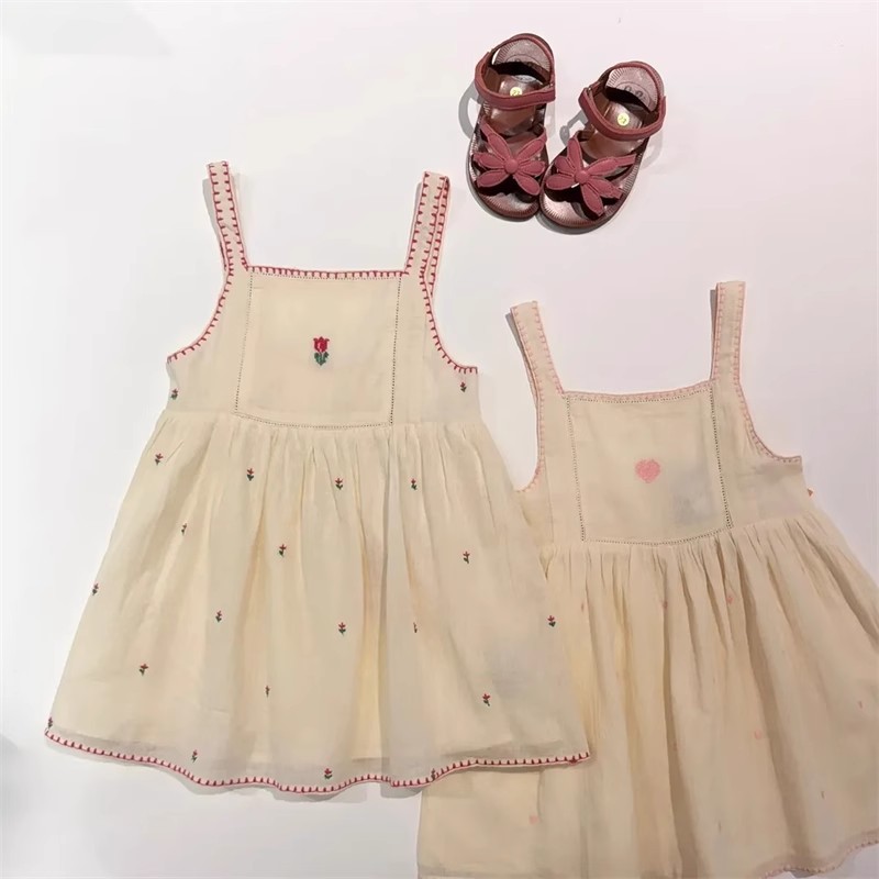 어린이 원피스 2025 여름 EM 소녀 목가적 인 스타일 Gaoding 중공업 자수 꽃 옷깃 공주 원피스스토어 가기