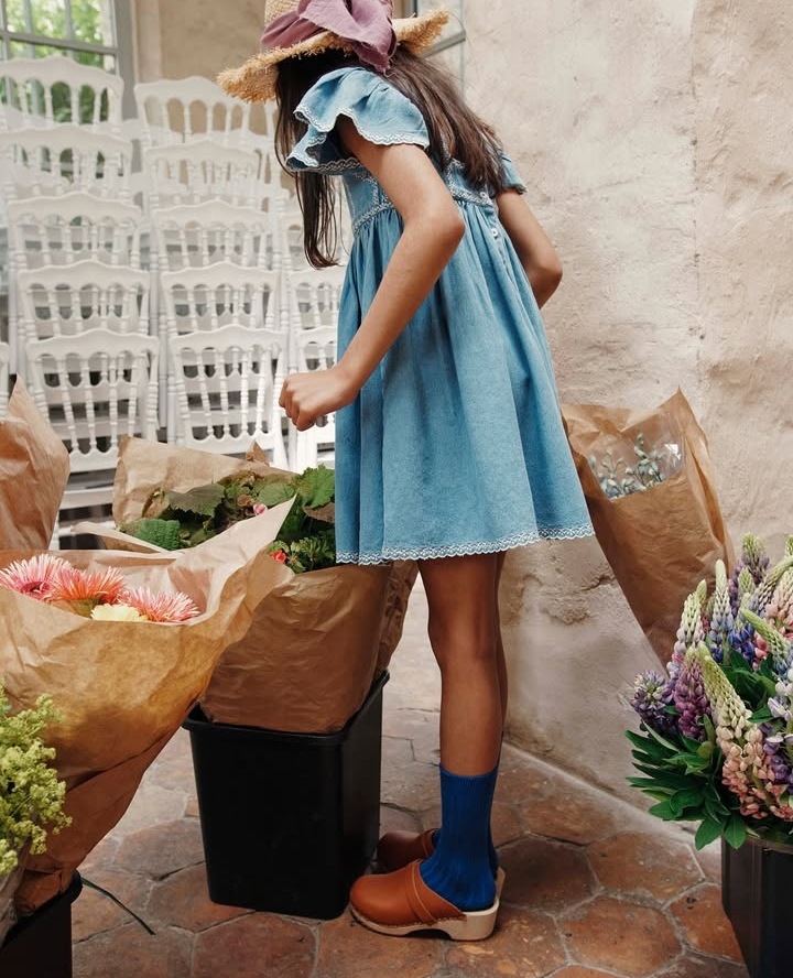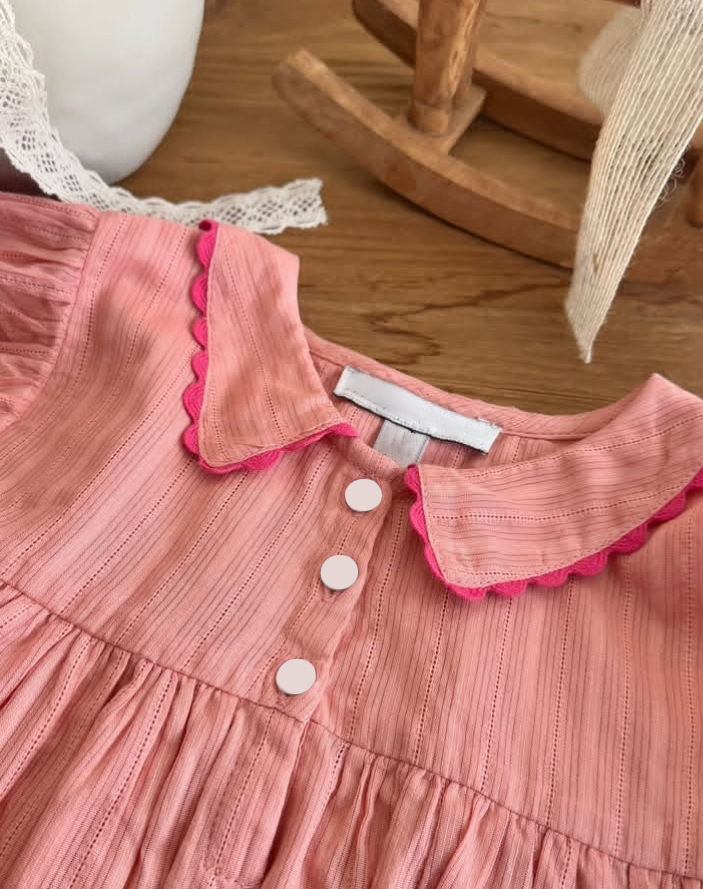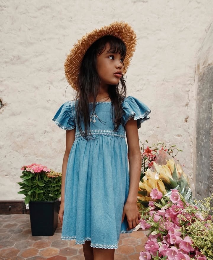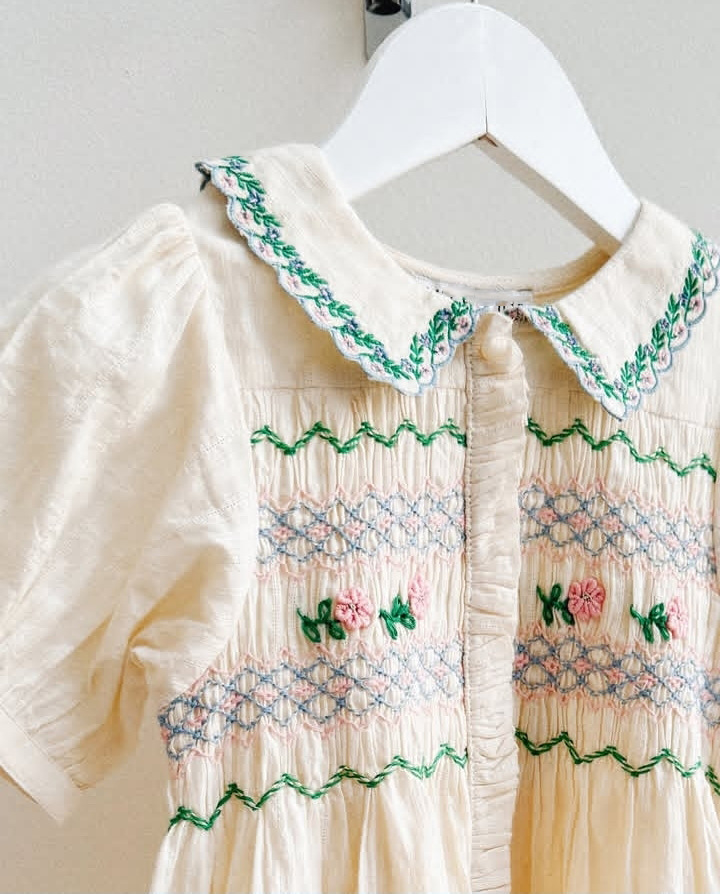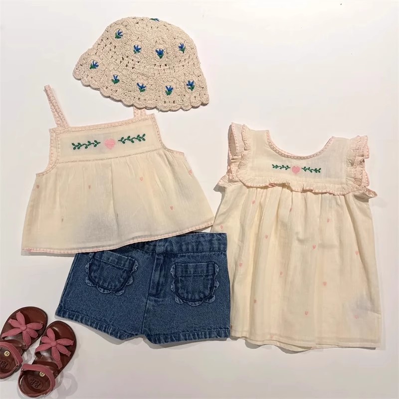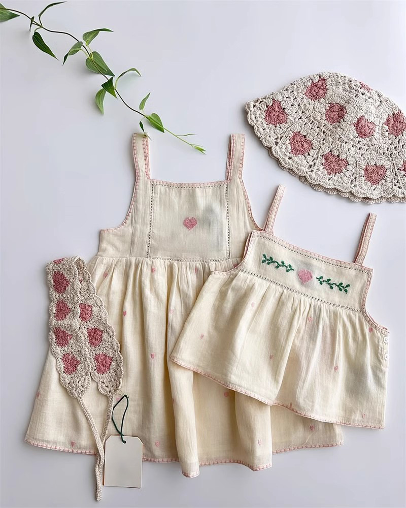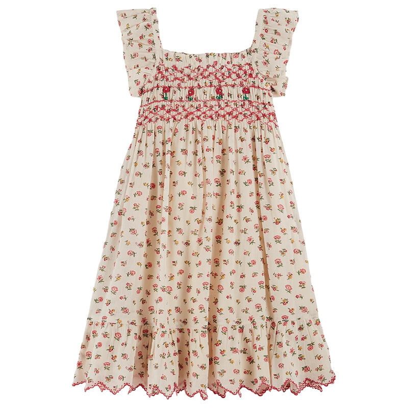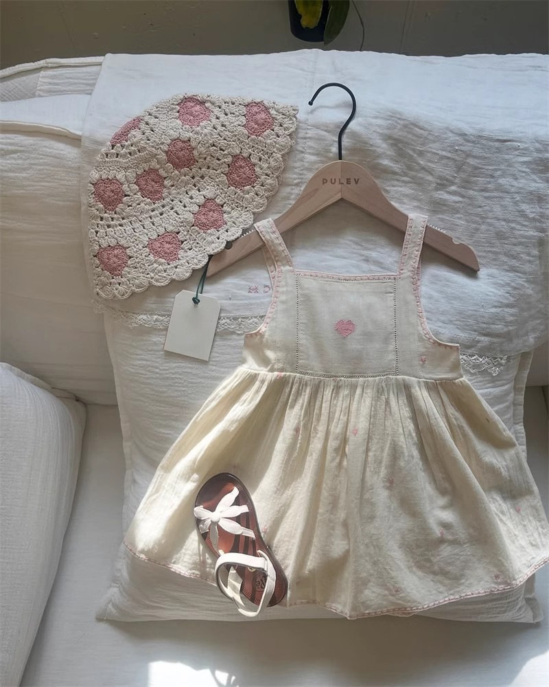 어린이 원피스 2025 여름 EM 소녀 목가적 인 스타일 Gaoding 중공업 자수 꽃 옷깃 공주 원피스스토어 가기