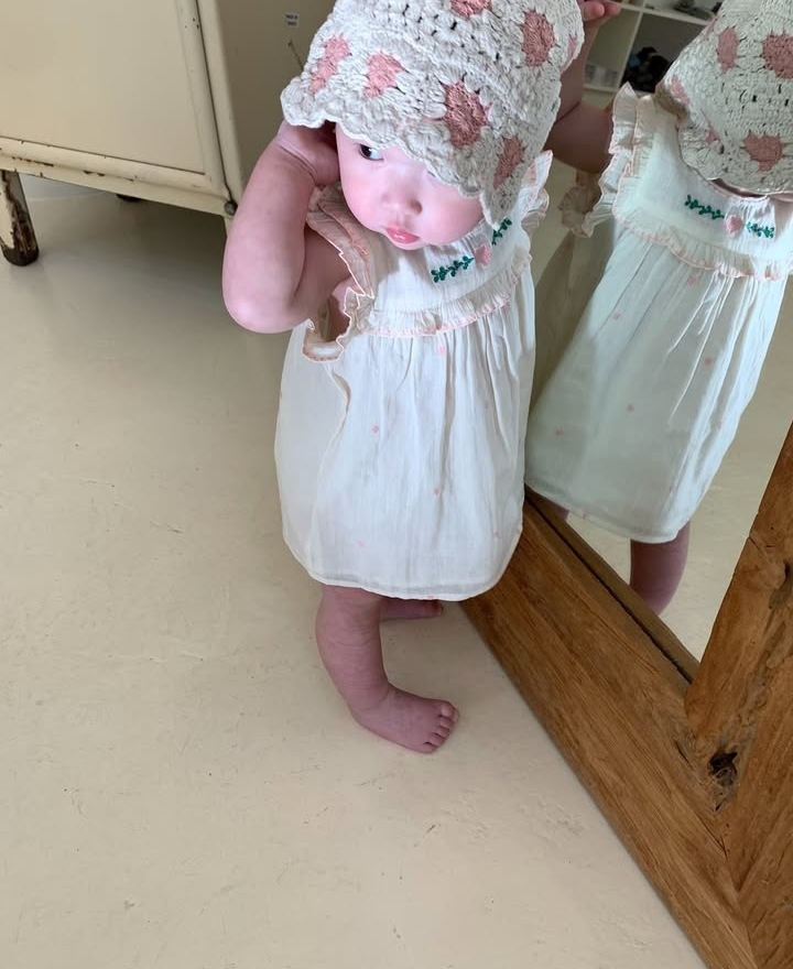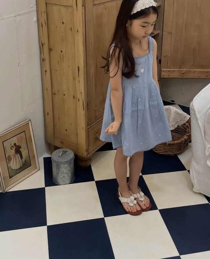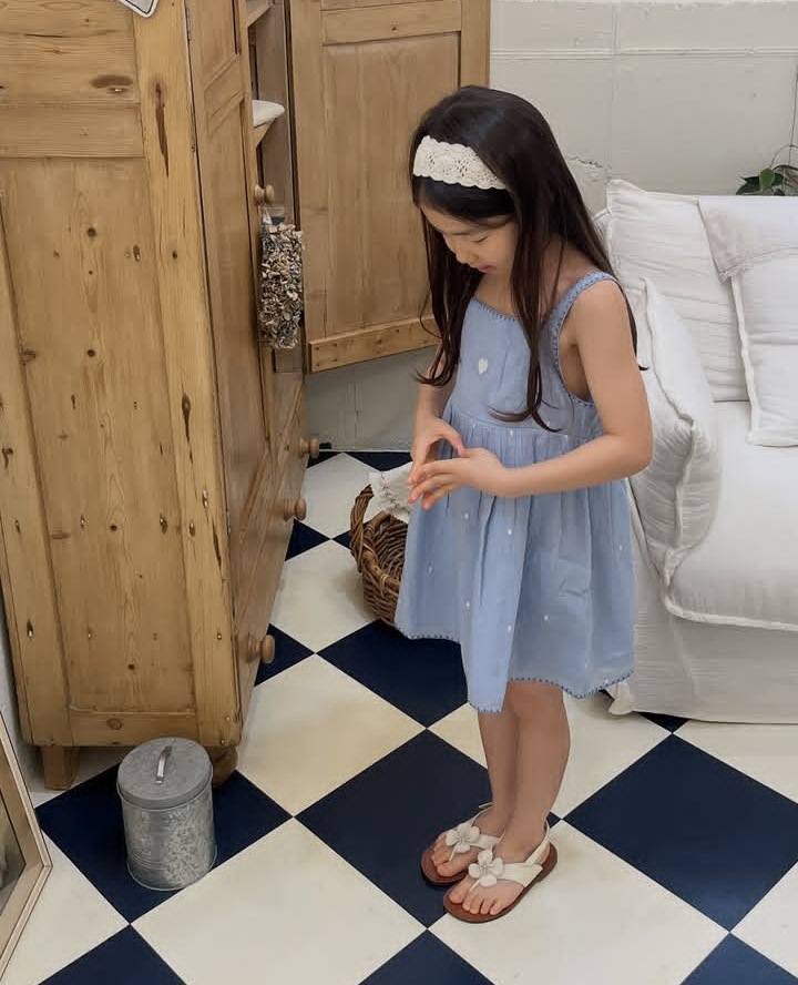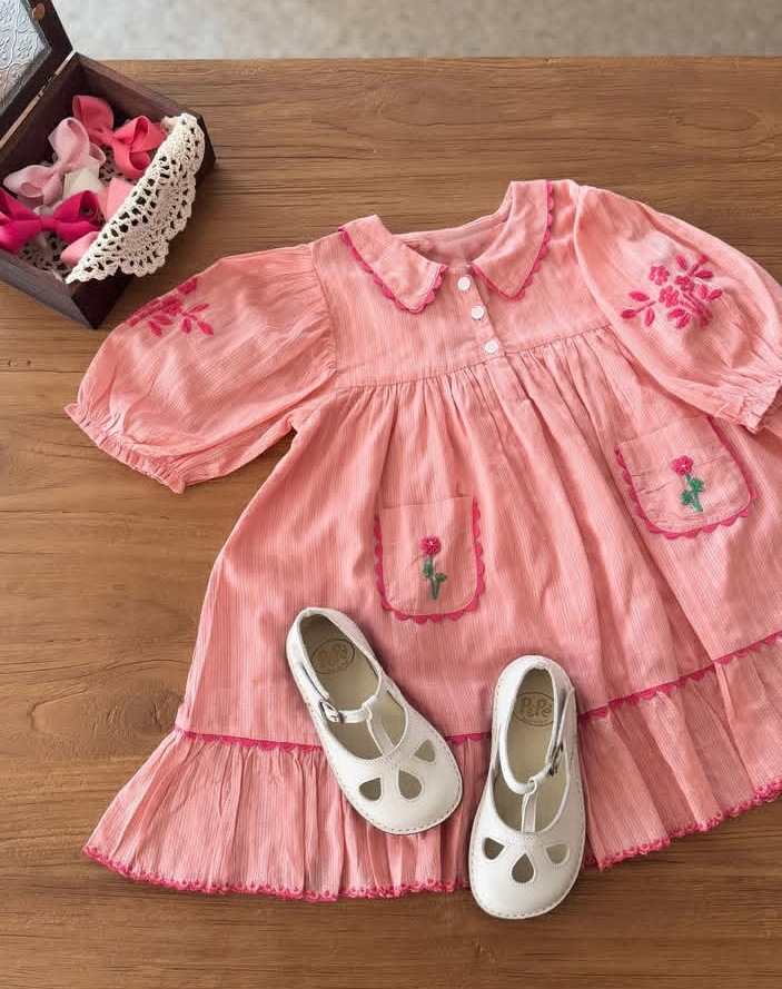 • 핑크 꽃 자수 드레스 [재고]