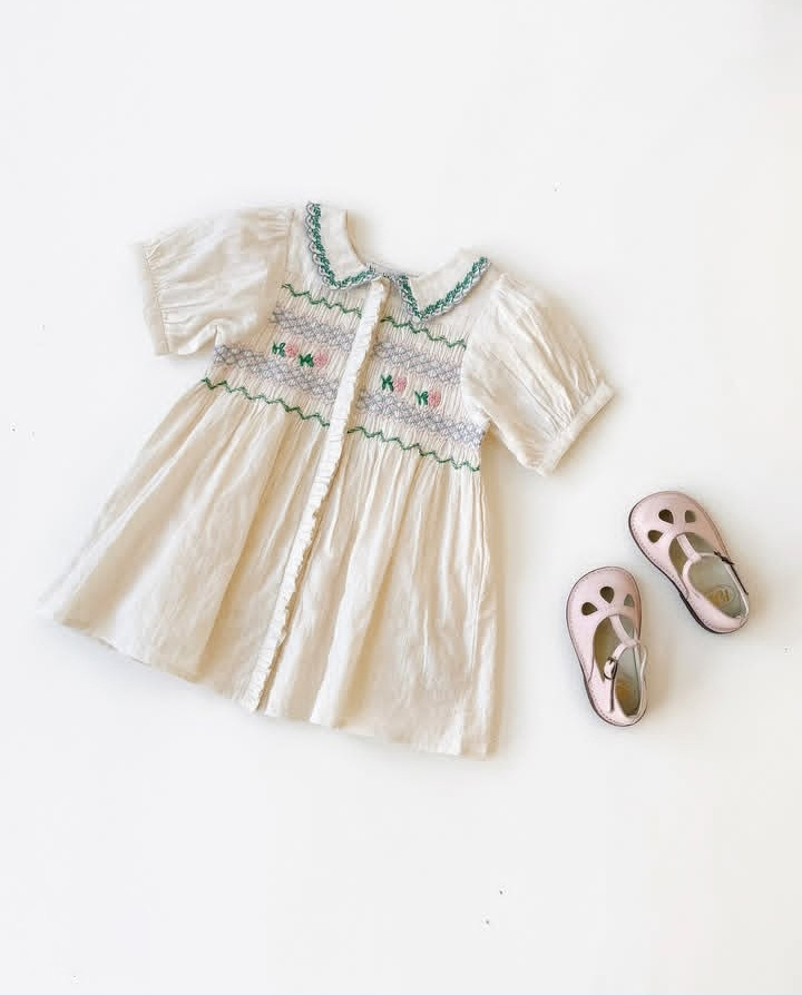 • 오프화이트 플라워 자수 드레스 [재고]