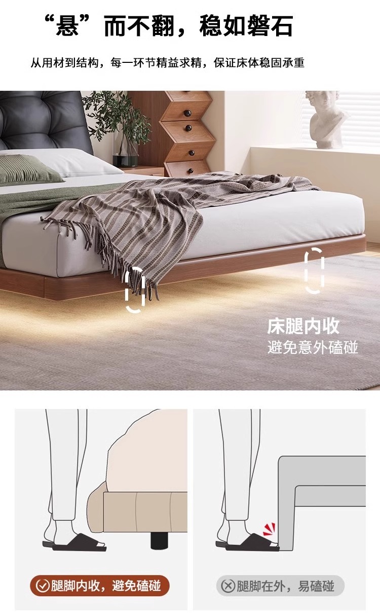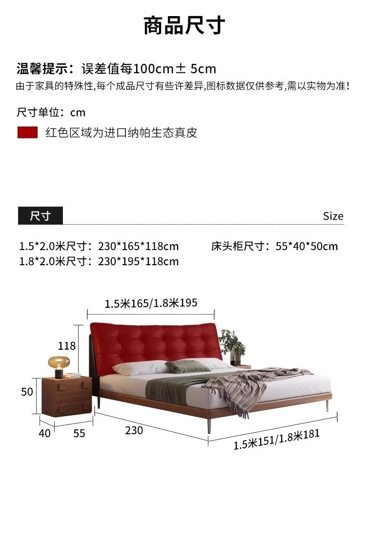 • 나파 가죽 침대 + 캐비닛 1개 + 코코넛 야자 매트리스