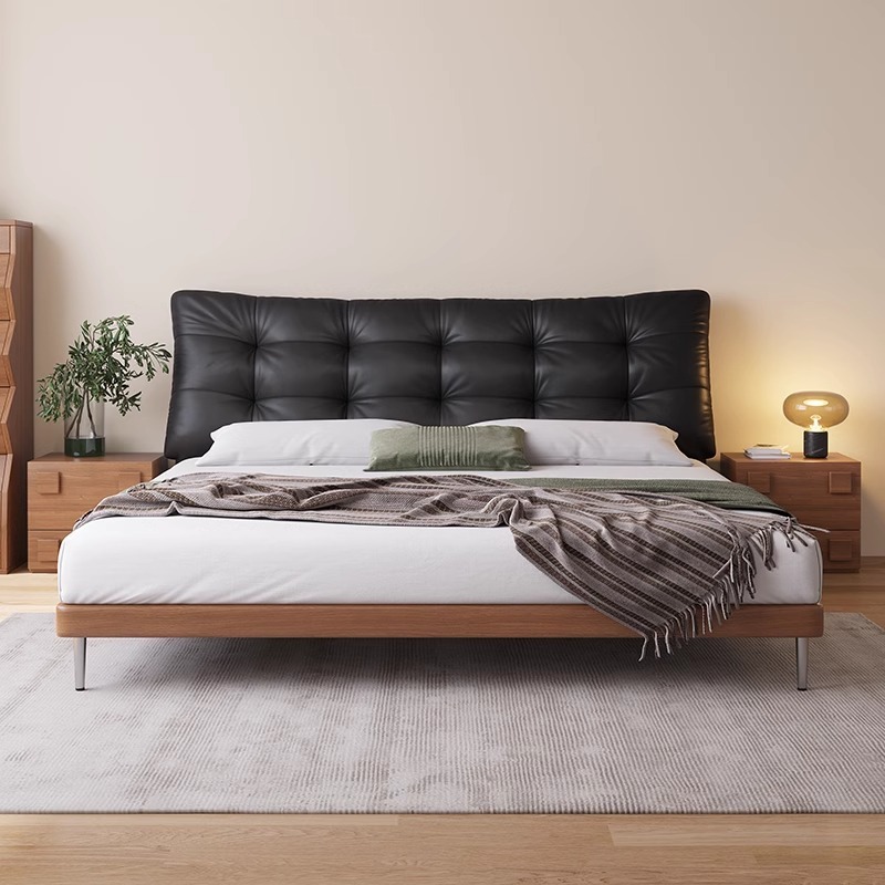 큰 검은 곰 중간 고대 이탈리아 스타일 미니멀리스트 머리 층 소 가죽 크림 스타일 더블 마스터 침실 진짜 가죽 침대 단단한 나무