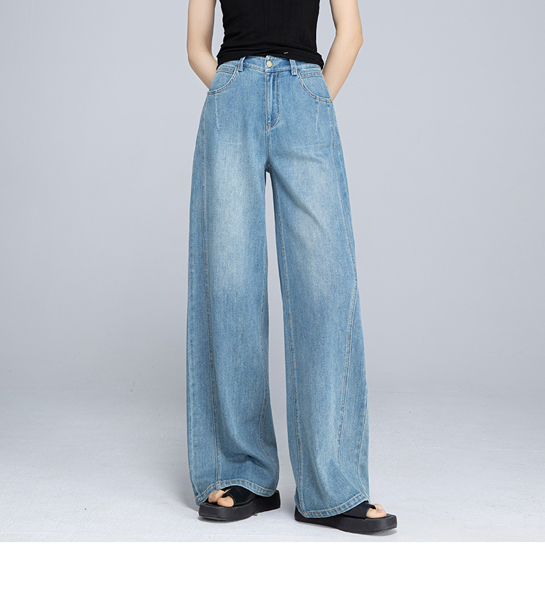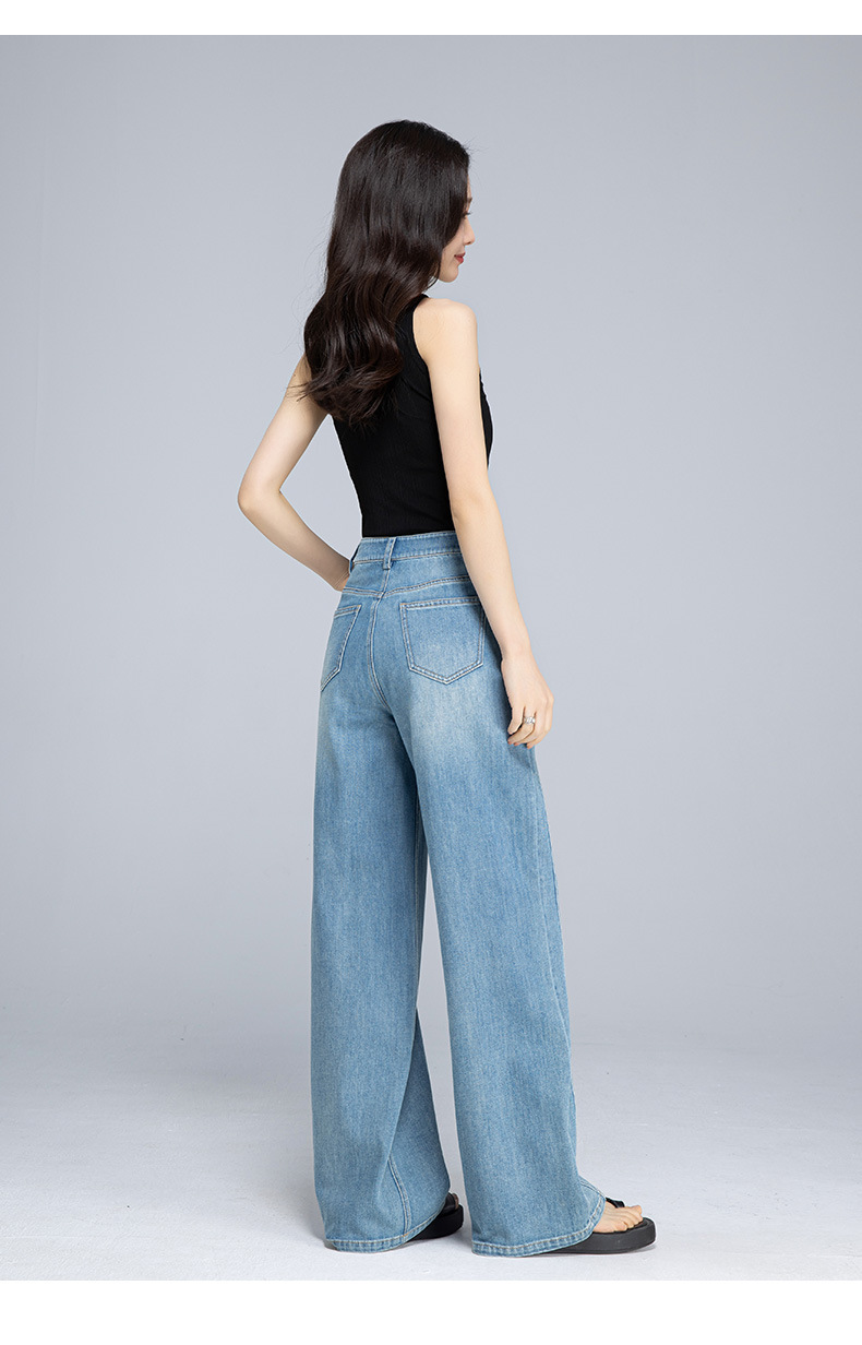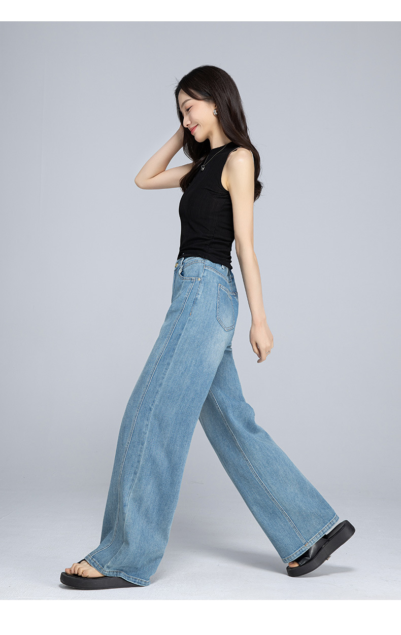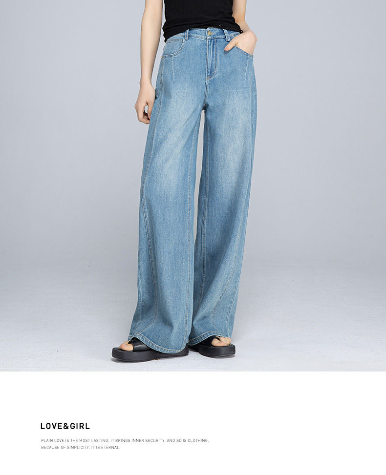 Xinge 레트로 라이트 컬러 디자인 센스 와이드 레그 청바지 여성의 봄과 여름 새로운 높은 허리 스트레이트 튜브 도핑 바지스토어 가기