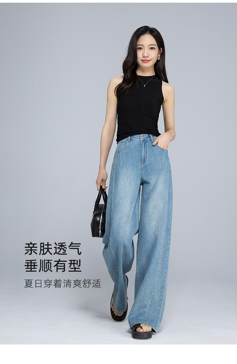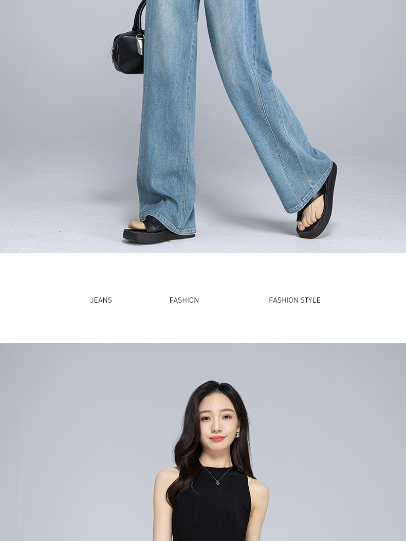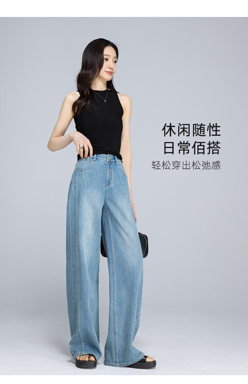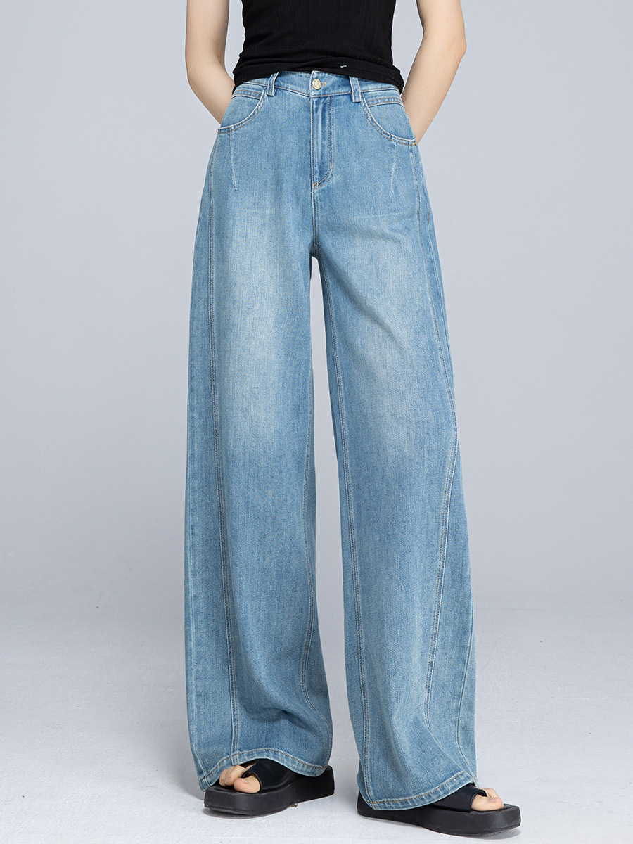 Xinge 레트로 라이트 컬러 디자인 센스 와이드 레그 청바지 여성의 봄과 여름 새로운 높은 허리 스트레이트 튜브 도핑 바지스토어 가기