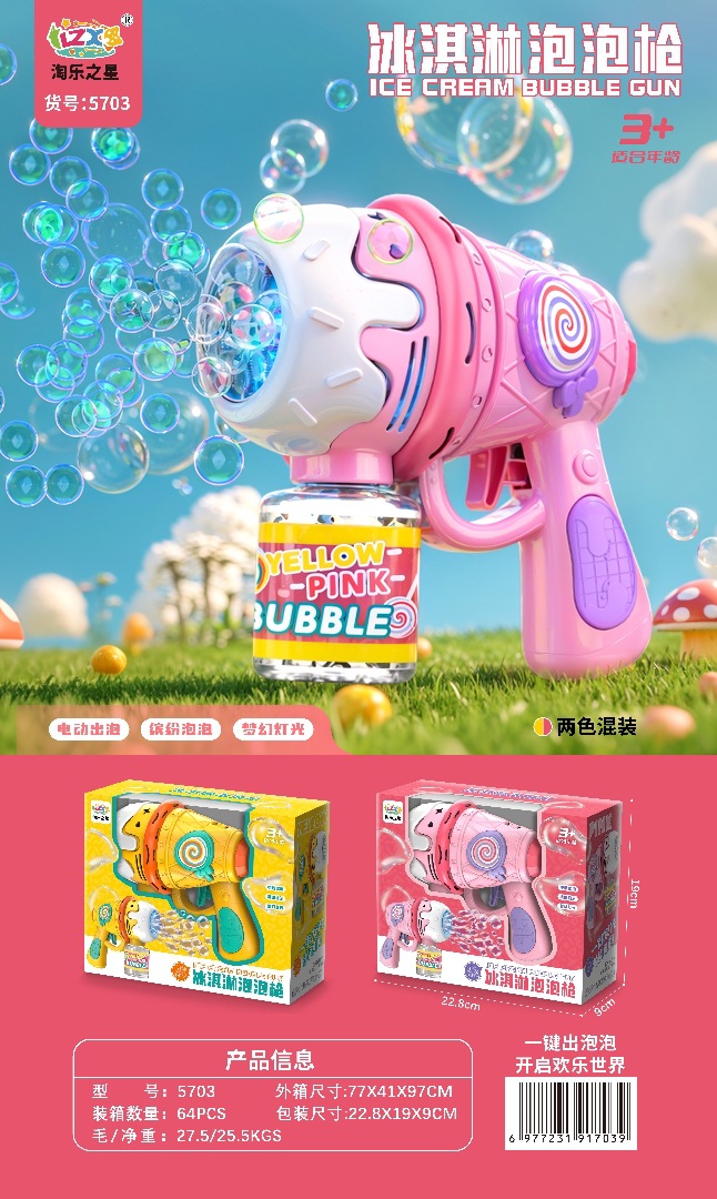 • 5703 아이스크림 전기 버블건 (혼합색상 랜덤)