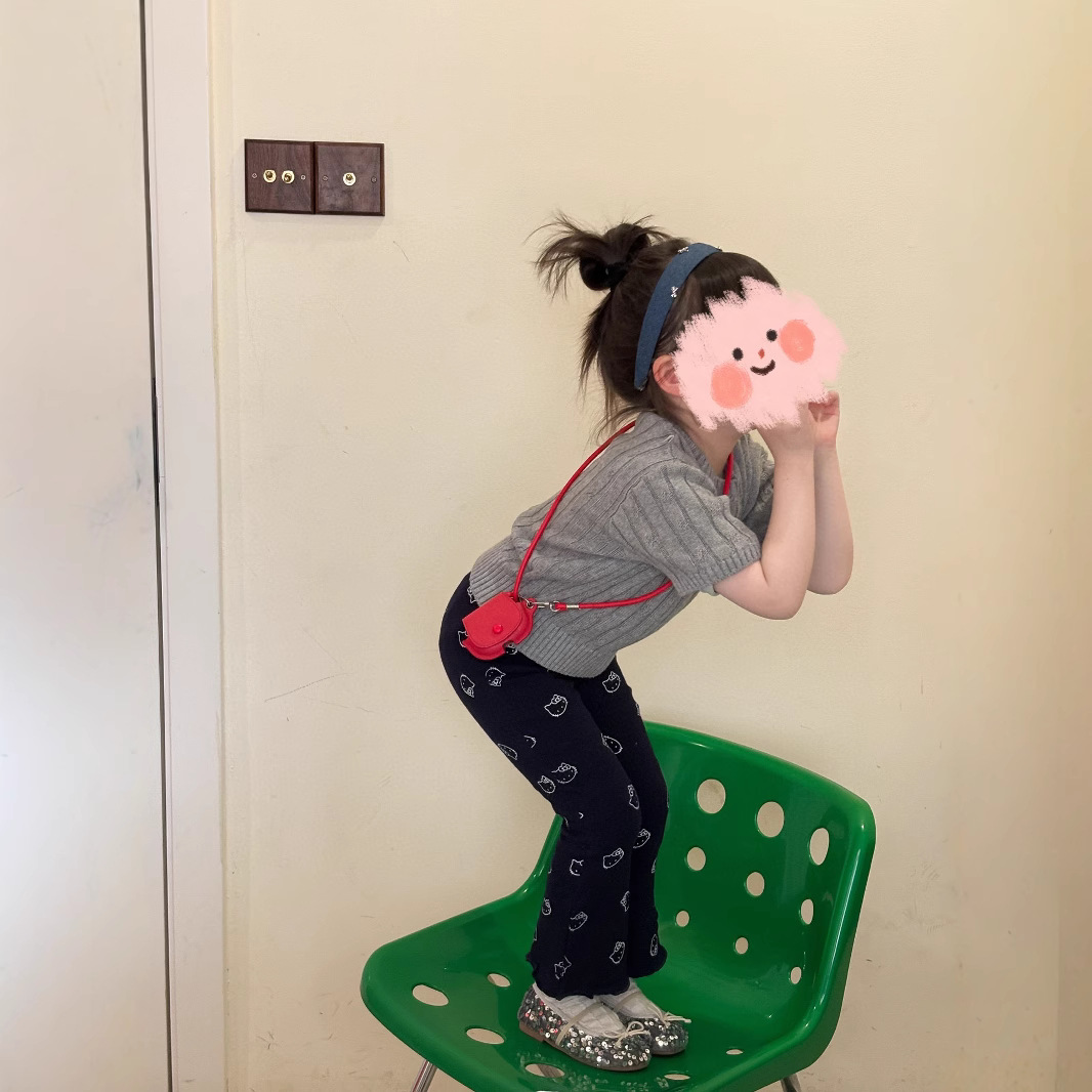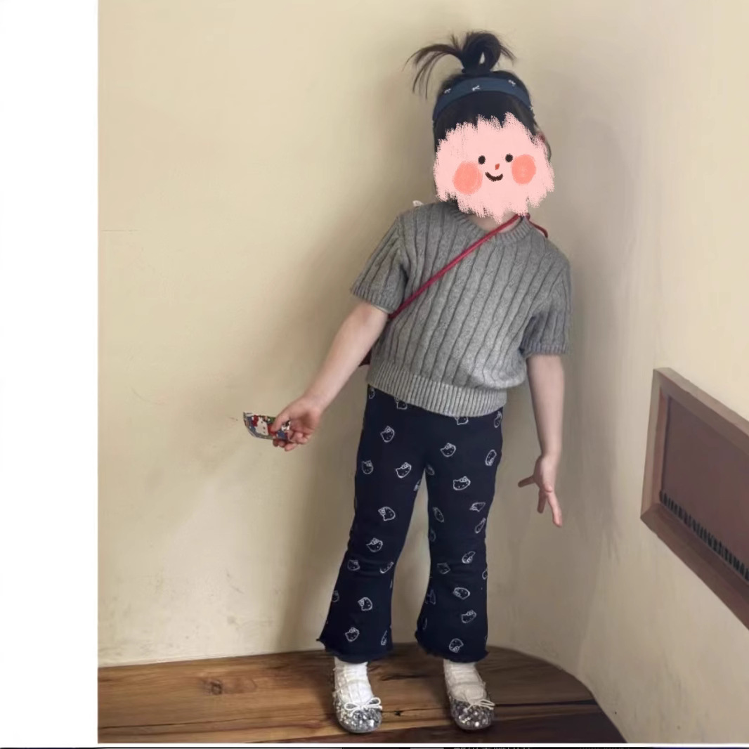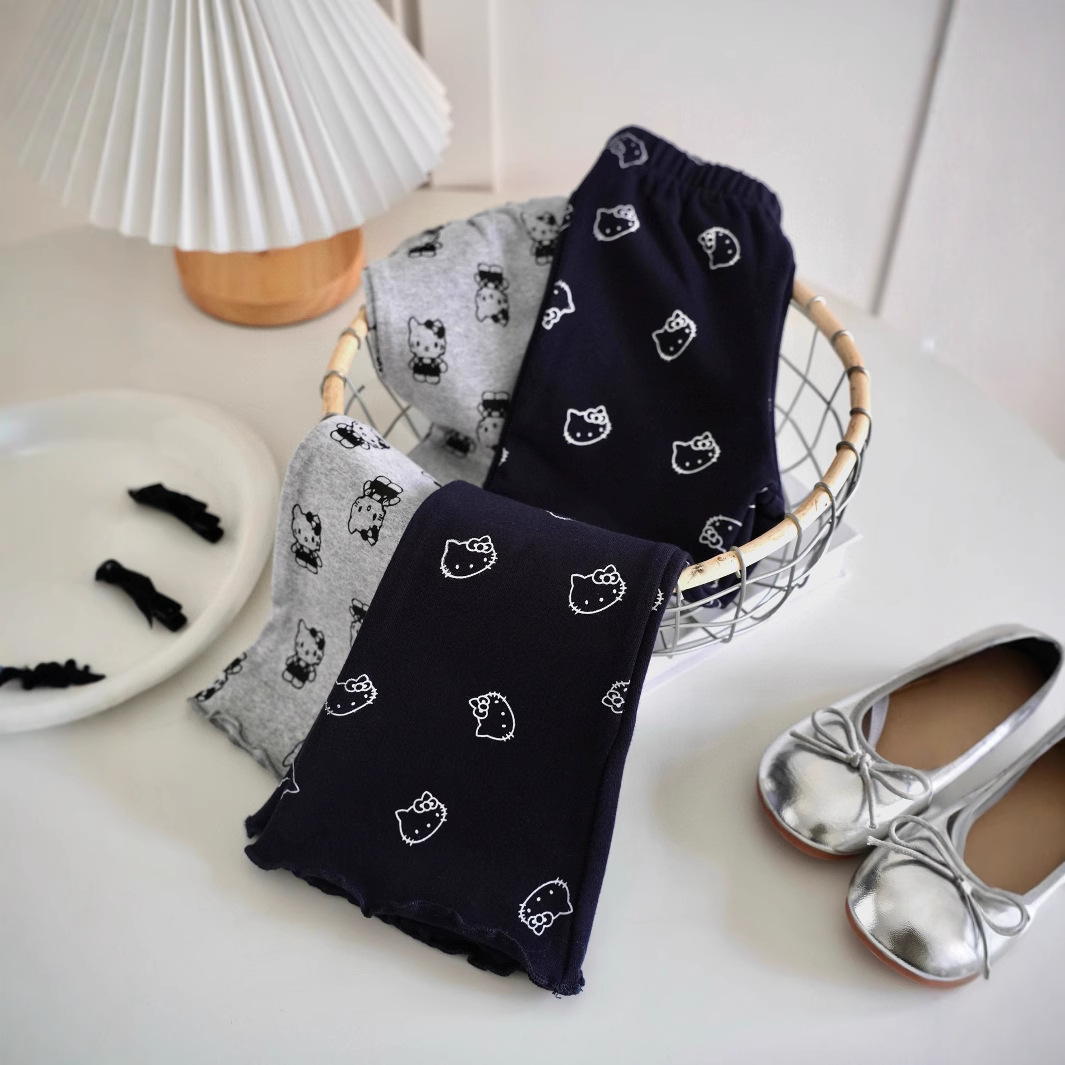 봄과 가을 2025 새로운 유행 한국 소녀 니트 스웨터 높은 허리 슬림 핏 키티 고양이 프린트 마이크로 팬츠스토어 가기