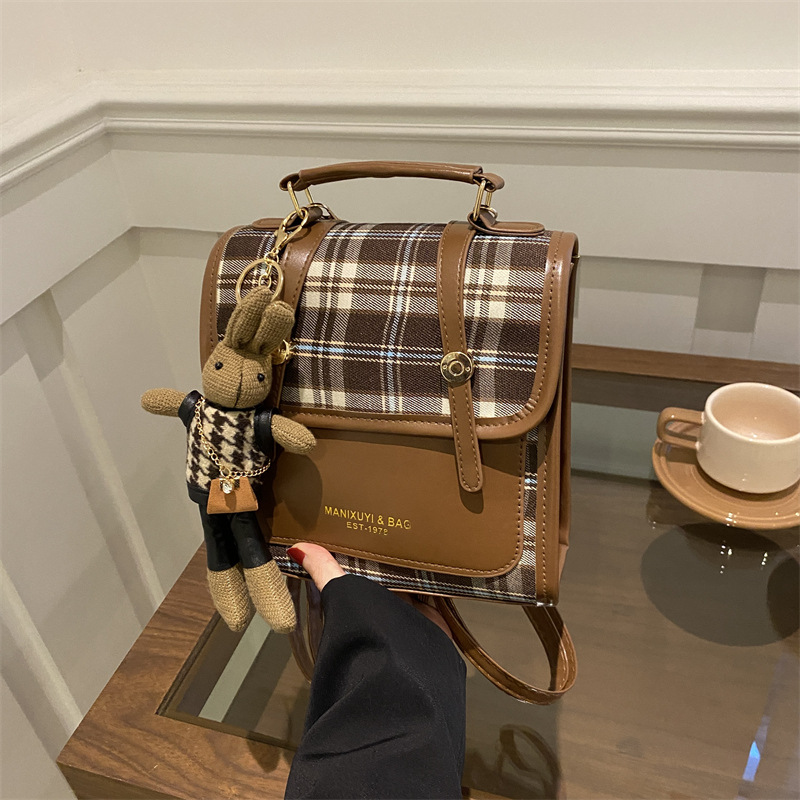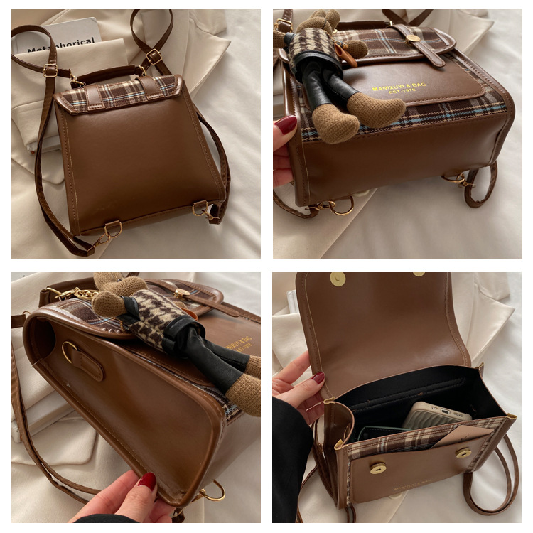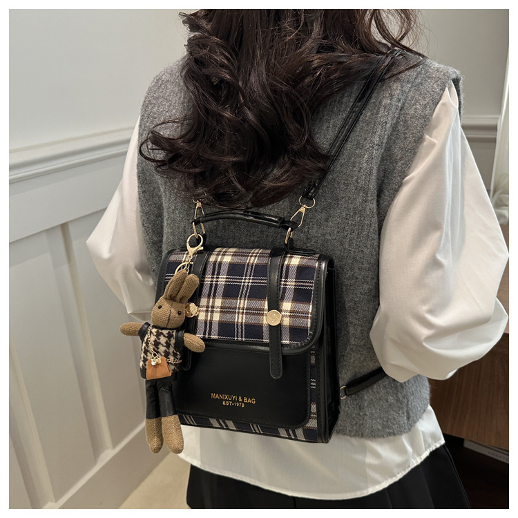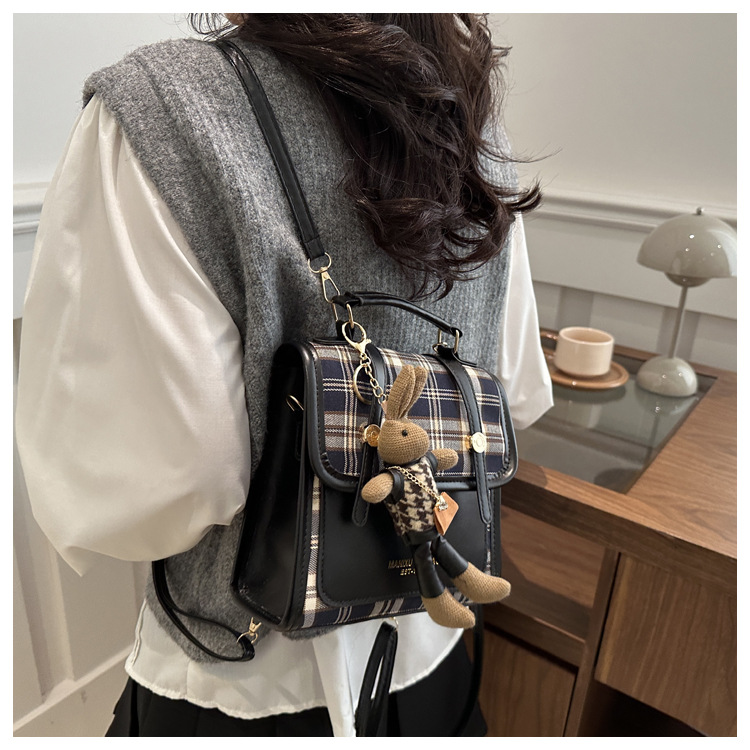 빈티지 콘트라스트 컬러 패션 학생 가방 2024 새로운 패션 캐주얼 배낭 틈새 하이 엔드 텍스처 올 매치 여성용 가방스토어 가기