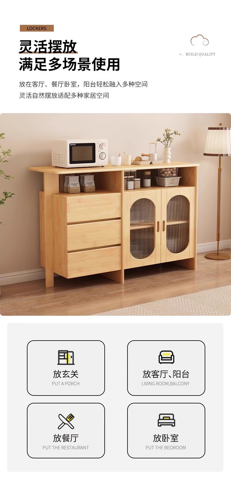 현대 간단한 단단한 나무 측면 거실 벽 차 캐비닛 저장 선반 가정용 주방 보관 캐비닛스토어 가기