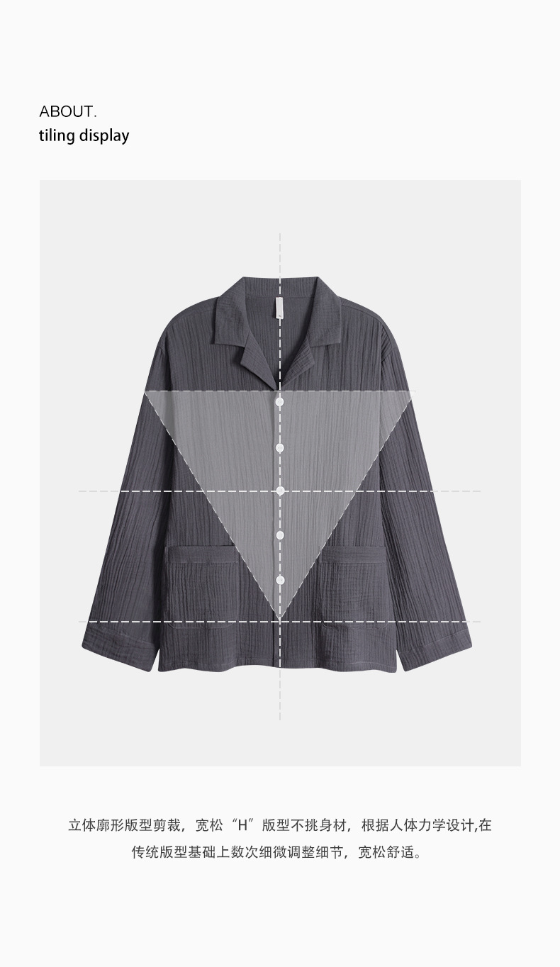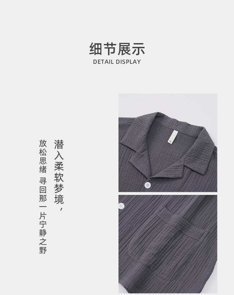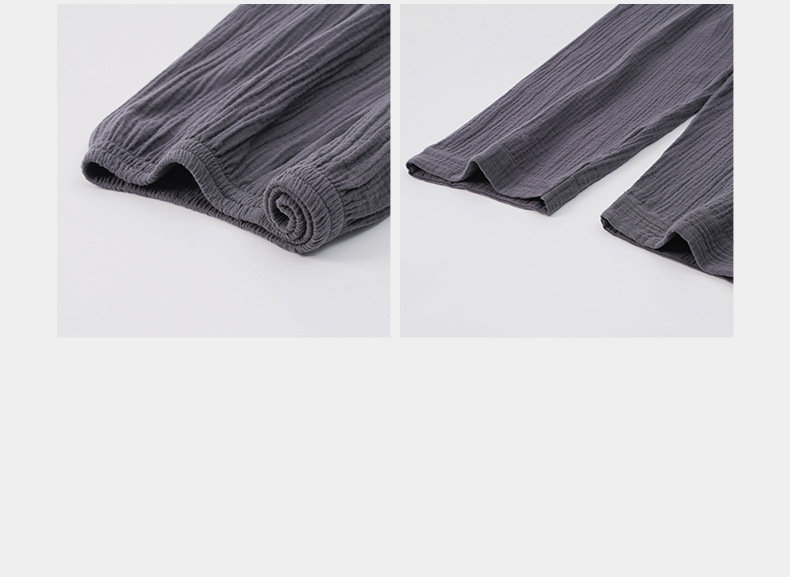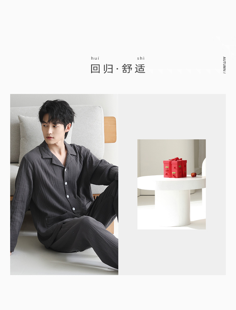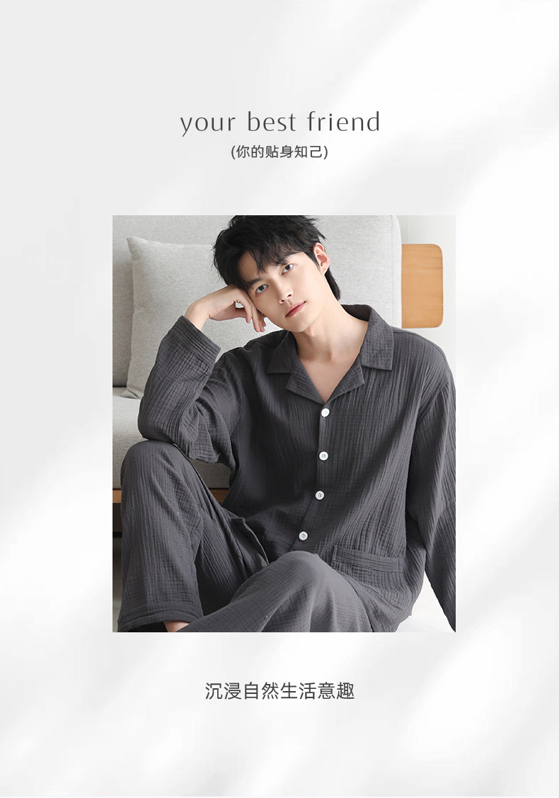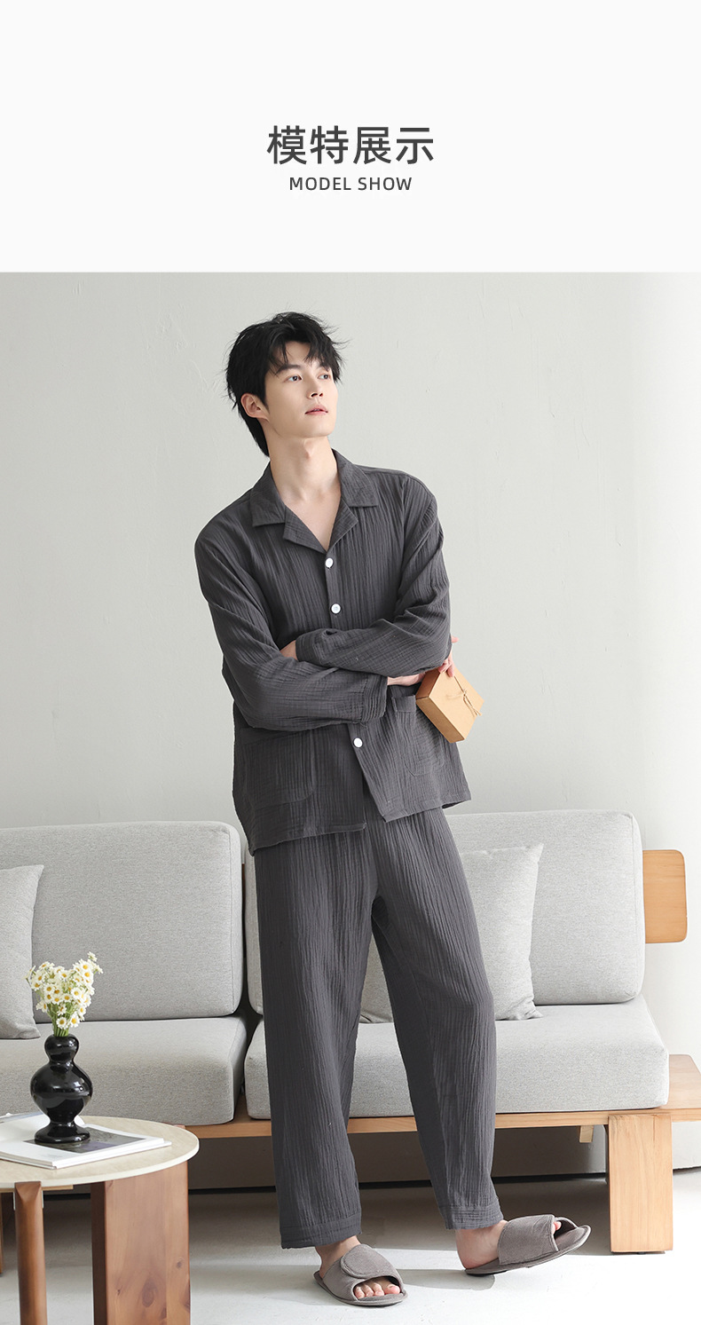 잠옷 남자의 봄과 가을 짠 코튼 거즈 캐주얼 긴 소매 아웃웨어 코튼 옷깃 홈 의류 세트스토어 가기